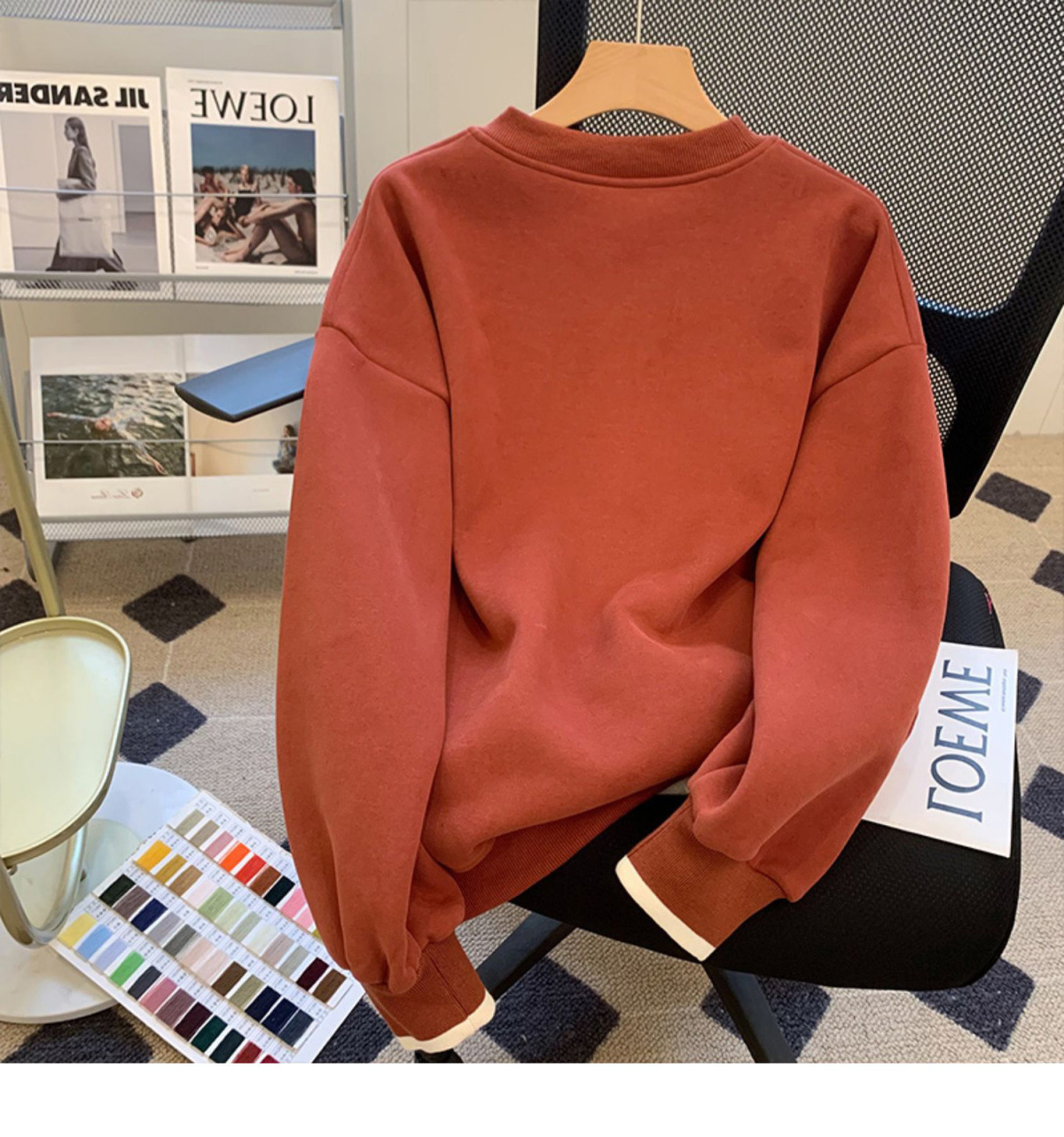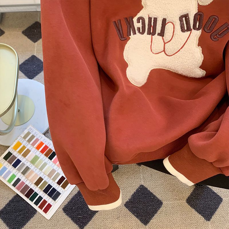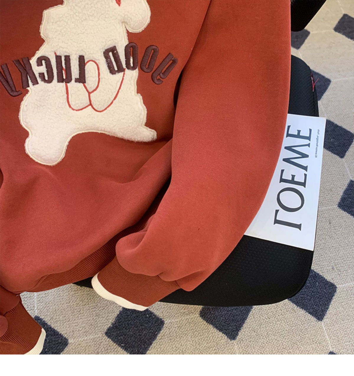 아메리칸 스타일 레트로 토끼 자수 라운드 넥 스웨트 셔츠 여성의 2024 가을 얇은 유행 브랜드 디자인 감각 느슨한 탑 유행 새로운스토어 가기