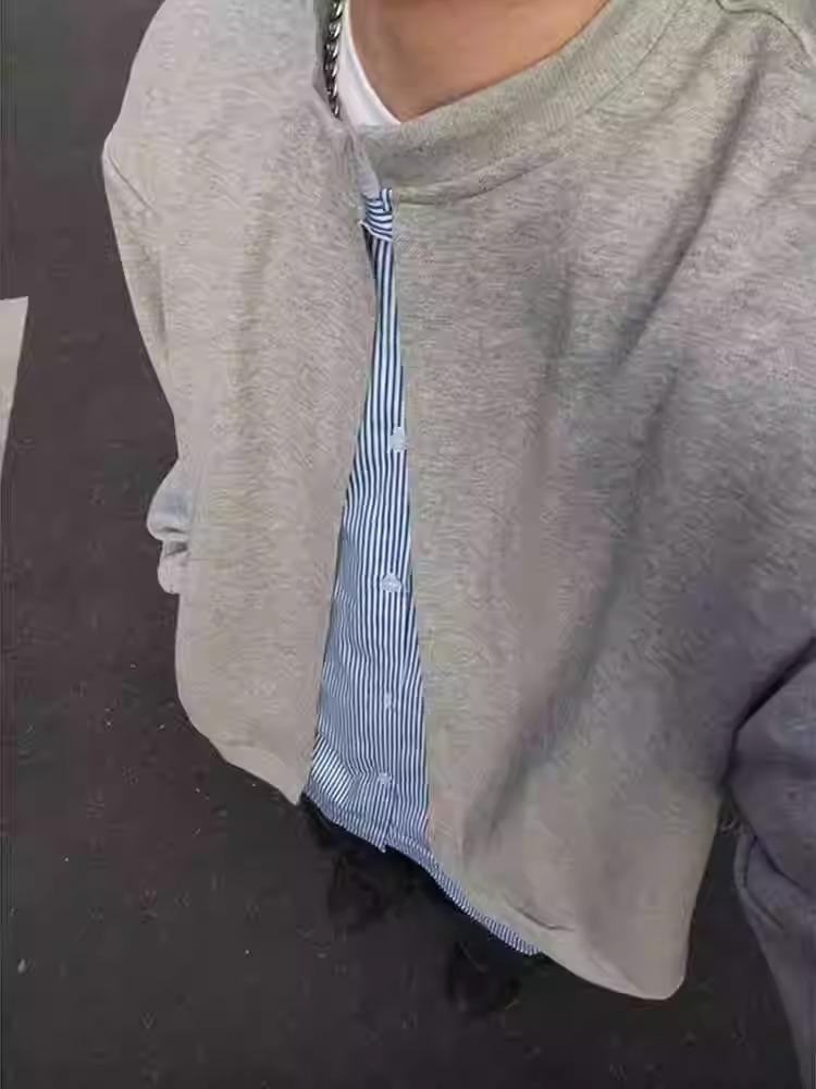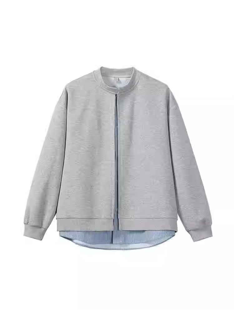 미국 스타일의 트렌디 브랜드 가짜 2 피스 스웨터 봄 가을 한국 스타일 올 매치 틈새 캐주얼 스티칭 긴팔 탑