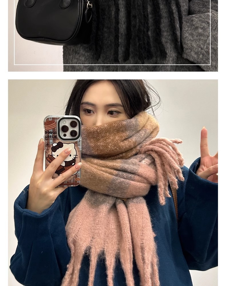 여성용 겨울 스카프, 가로 줄무늬 모헤어, 한국 스타일, 다용도, 학생용, 고급스러운 느낌, 두꺼운 보온 스카프, 2025년 신상 트렌드