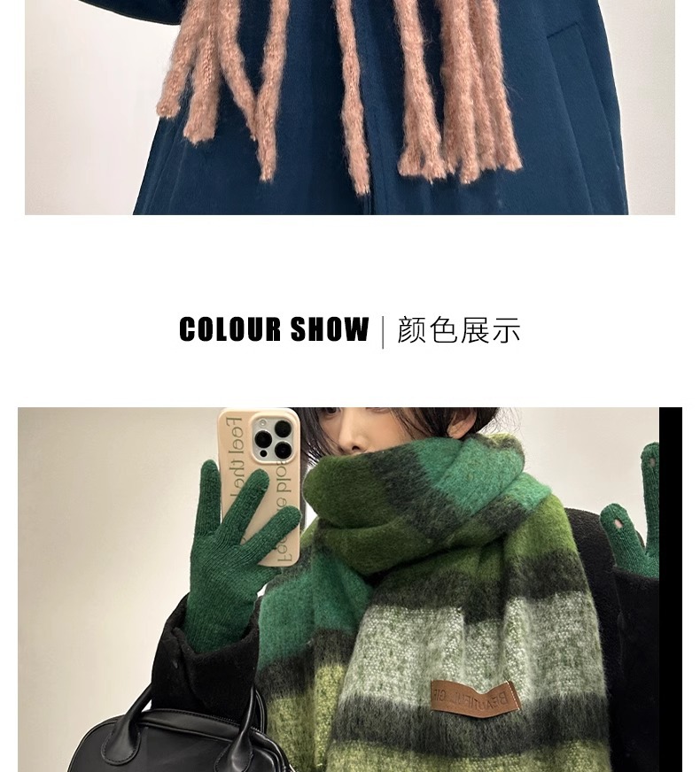 여성용 겨울 스카프, 가로 줄무늬 모헤어, 한국 스타일, 다용도, 학생용, 고급스러운 느낌, 두꺼운 보온 스카프, 2025년 신상 트렌드스토어 가기