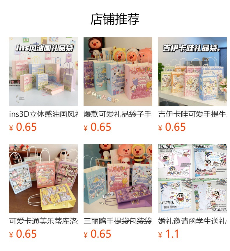 새로운 귀여운 만화 크라프트 종이 가방 선물 가방 창의적인 선물 가방 핸드백 기념품 가방 화장품