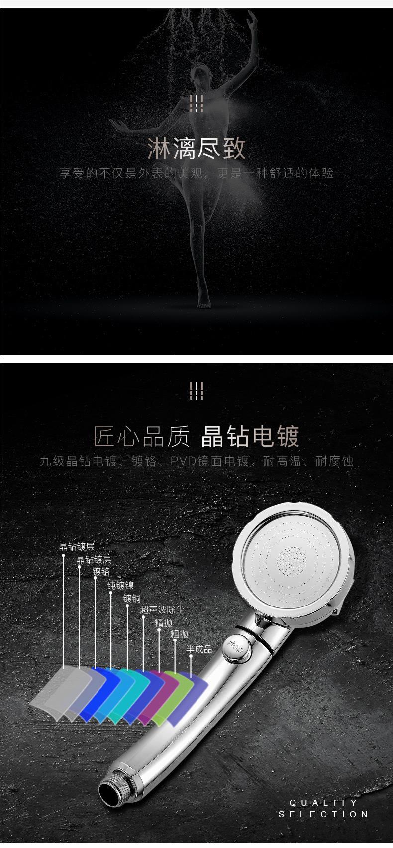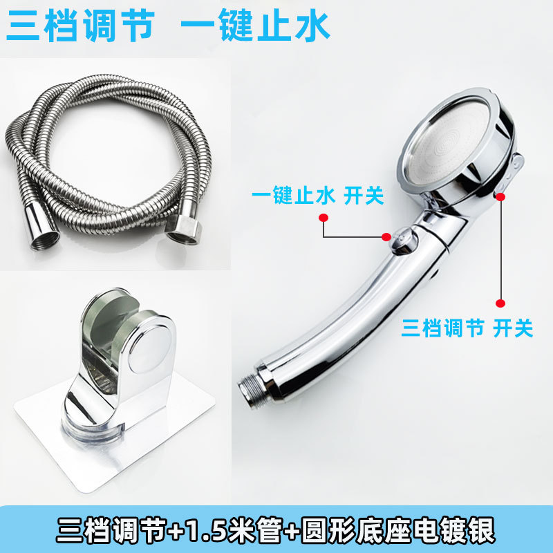 • ♡♡♡♡♡3단 속도 조절 + 1.5m 호스: 전기도금된 은색♡♡♡♡♡