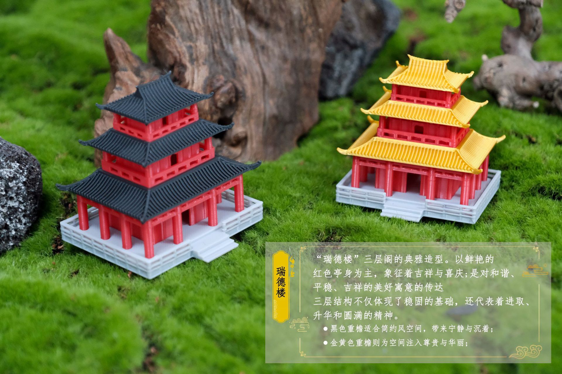 Ruixige 고대 중국 건축 모델 마이크로 풍경 수조 장식품 모래 테이블 풍경 집 골동품 장식