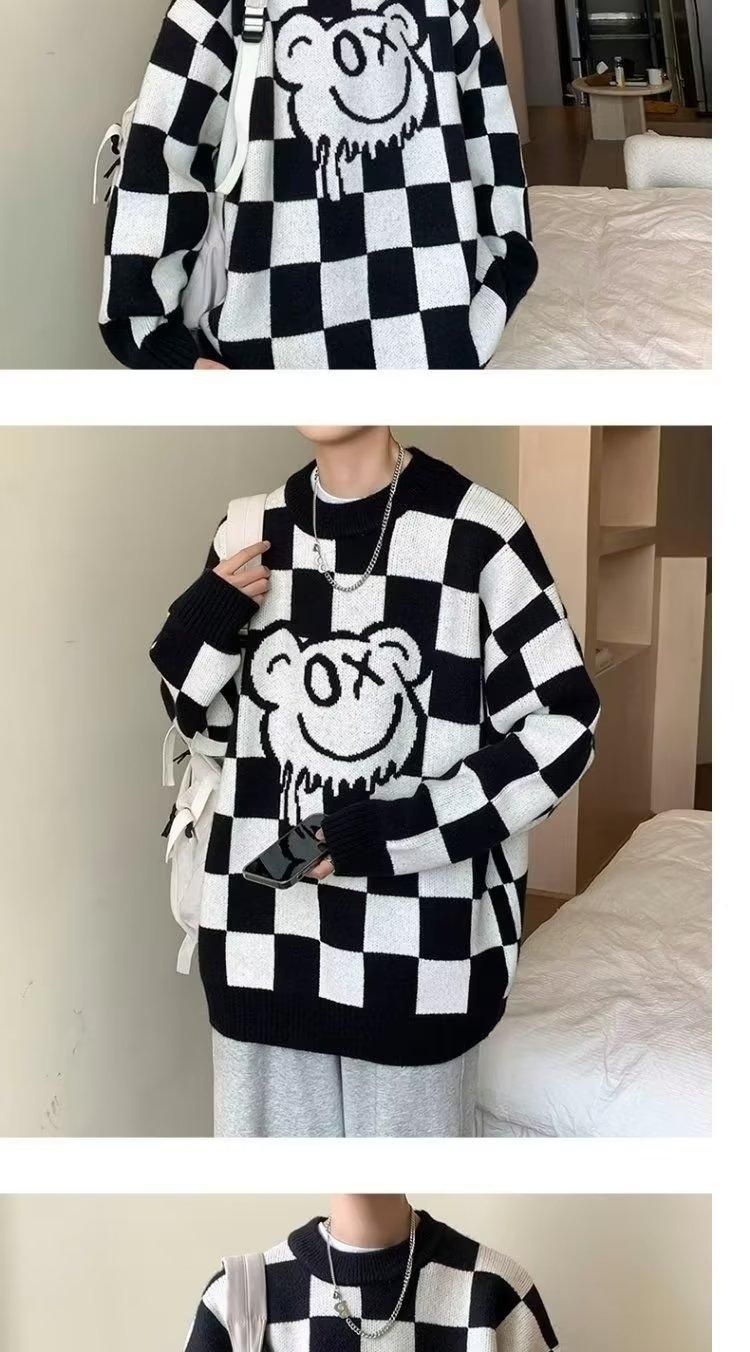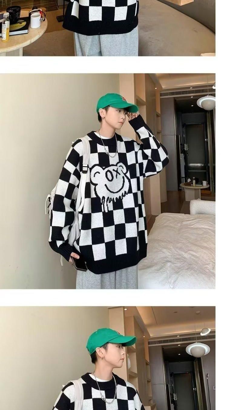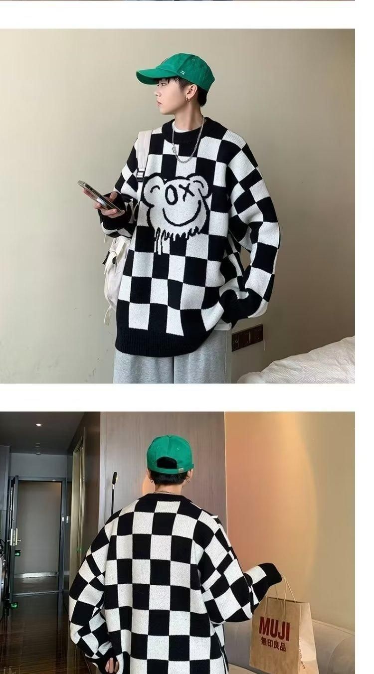 체커 보드 크루 넥 스웨터 남자 가을 겨울 루즈 게으른 스타일 올 매치 스웨터 재킷 독특한 패션 풀오버 웨이동스토어 가기