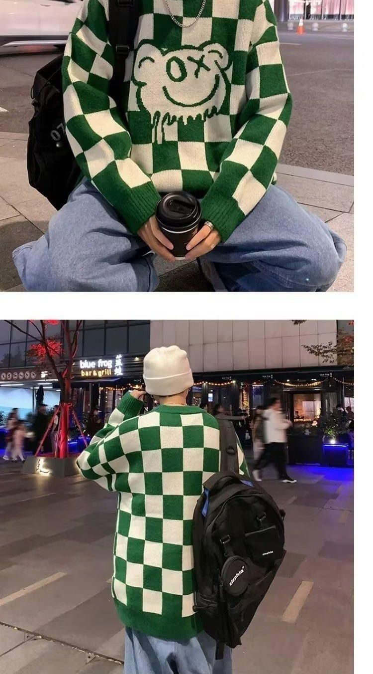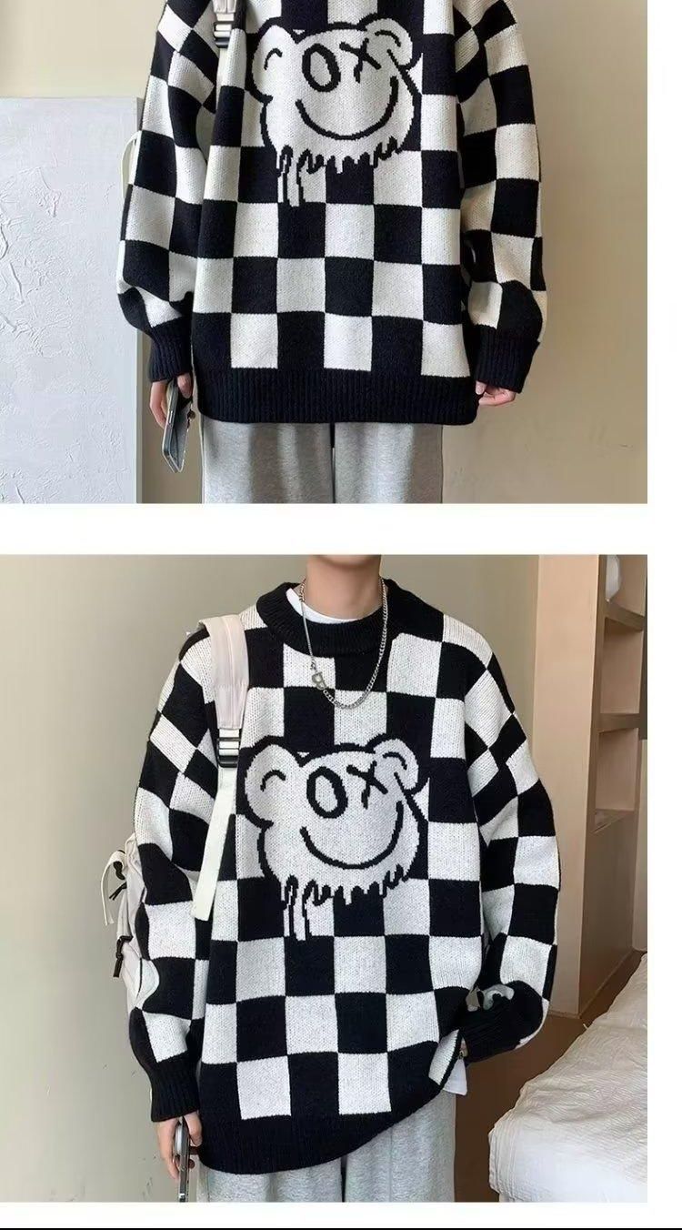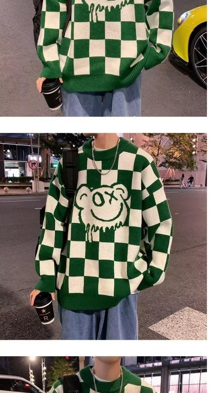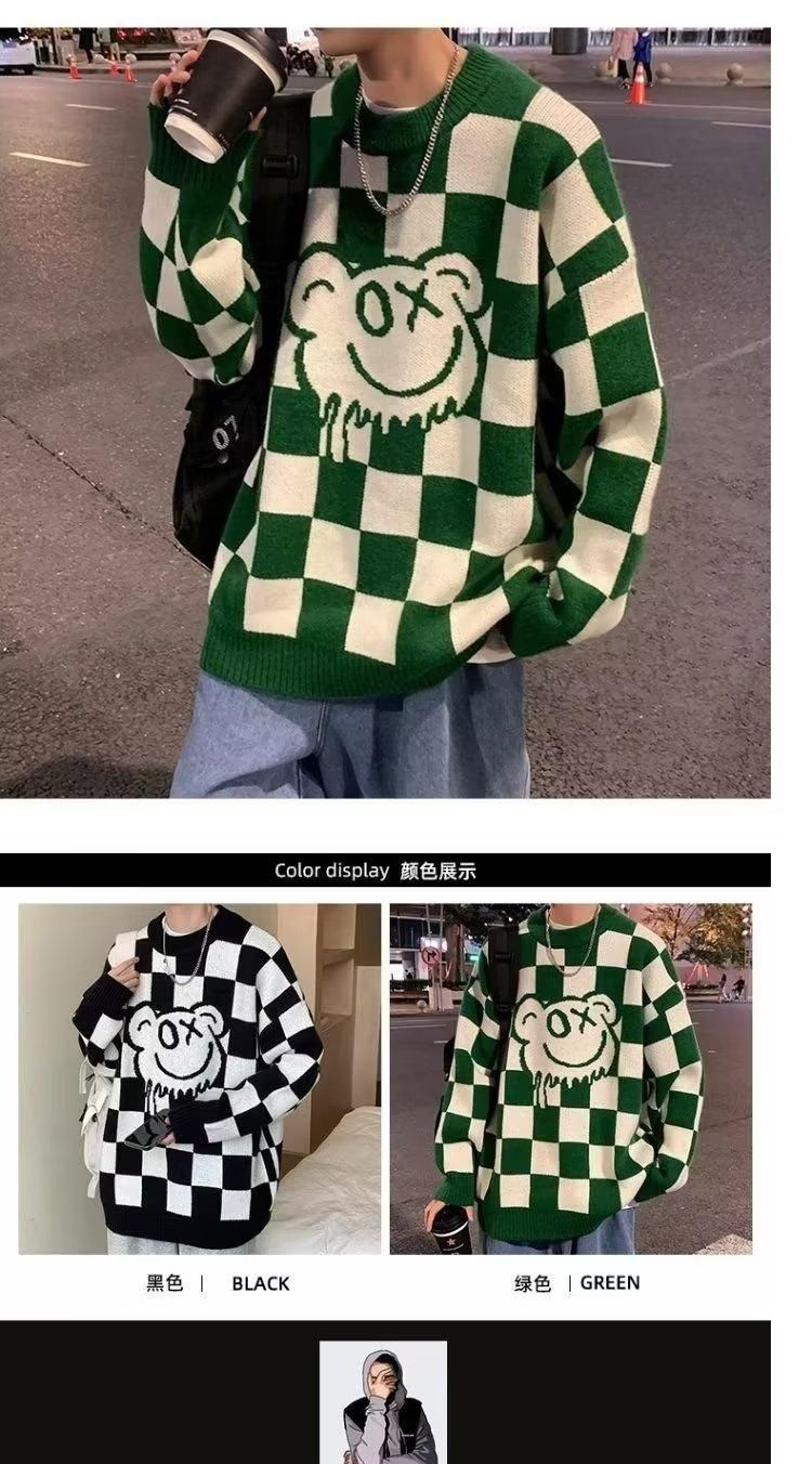 체커 보드 크루 넥 스웨터 남자 가을 겨울 루즈 게으른 스타일 올 매치 스웨터 재킷 독특한 패션 풀오버 웨이동스토어 가기