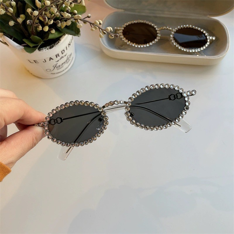 아기 선글라스 유행 타원형 다이아몬드로 장식 된 빈티지 선글라스 소년과 소녀 같은 스타일 어린이 선글라스 샤넬 스타일스토어 가기