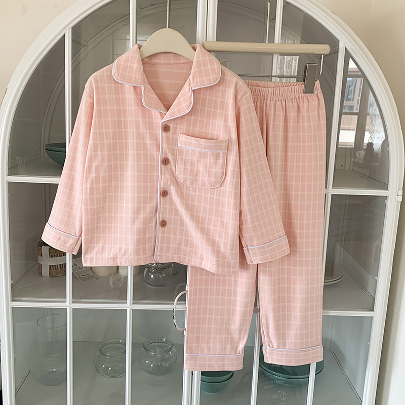 어린이 홈 의류 세트 가을 새 소년과 소녀 격자 무늬 긴 소매 바지 아기의 벨벳 느슨한 파자마