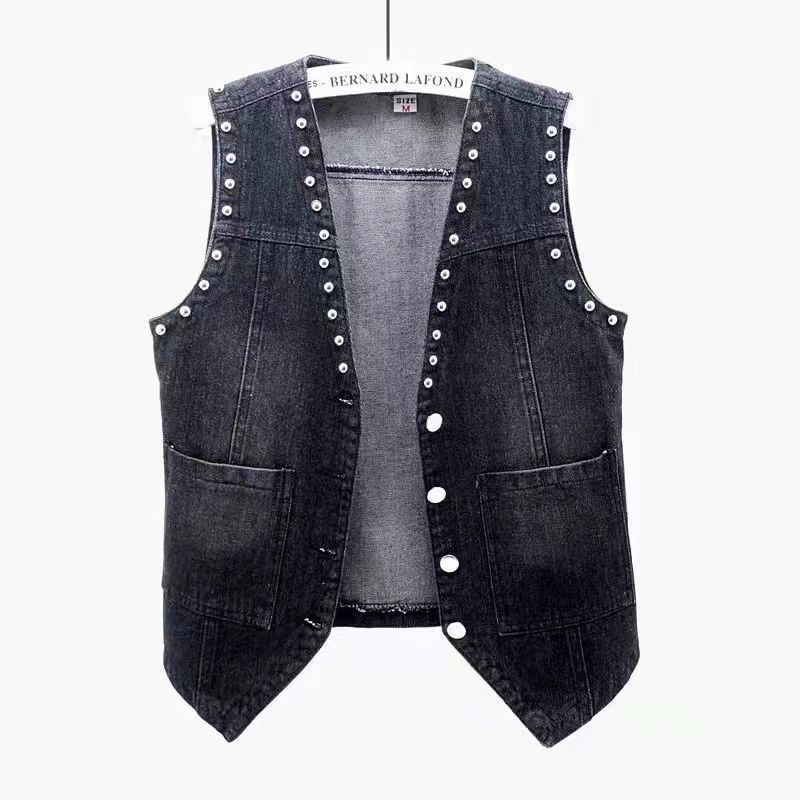 봄 2023 새로운 한국 스타일 레이스 구슬 데님 조끼 여성용 짧은 민소매 조끼 탑 웨이스트 코트 트렌디스토어 가기