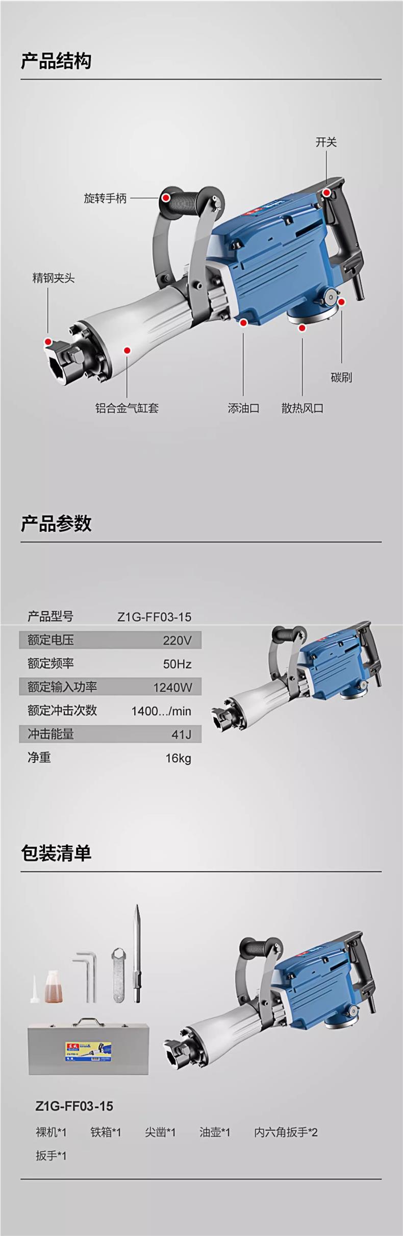 Dongcheng 단일 사용 대형 전기 선택 65 산업 등급 해머 초안 콘크리트 고출력 엔지니어링 등급 철거 동청 도구스토어 가기