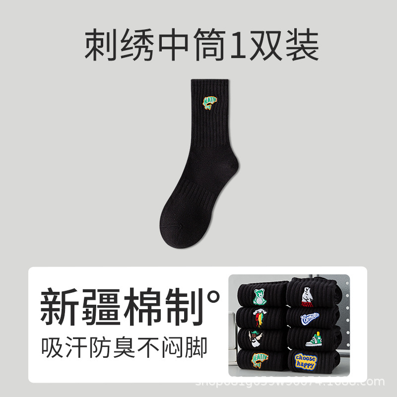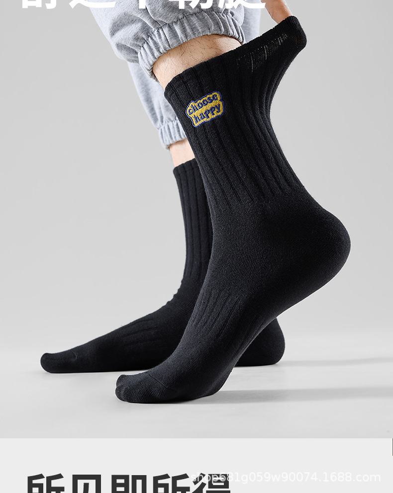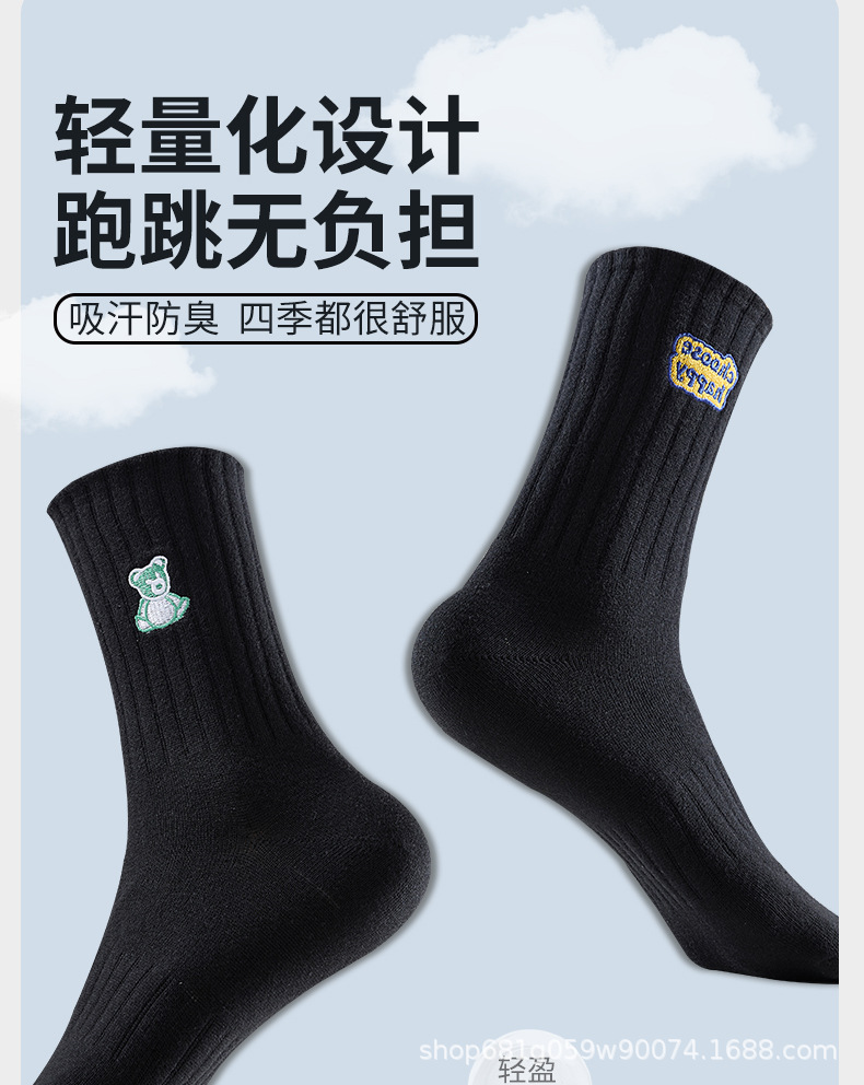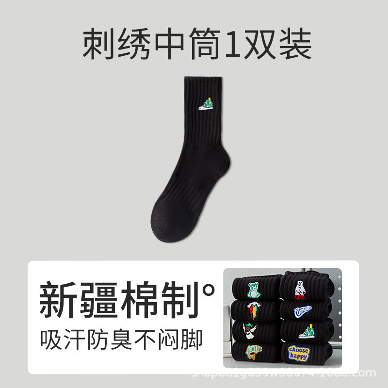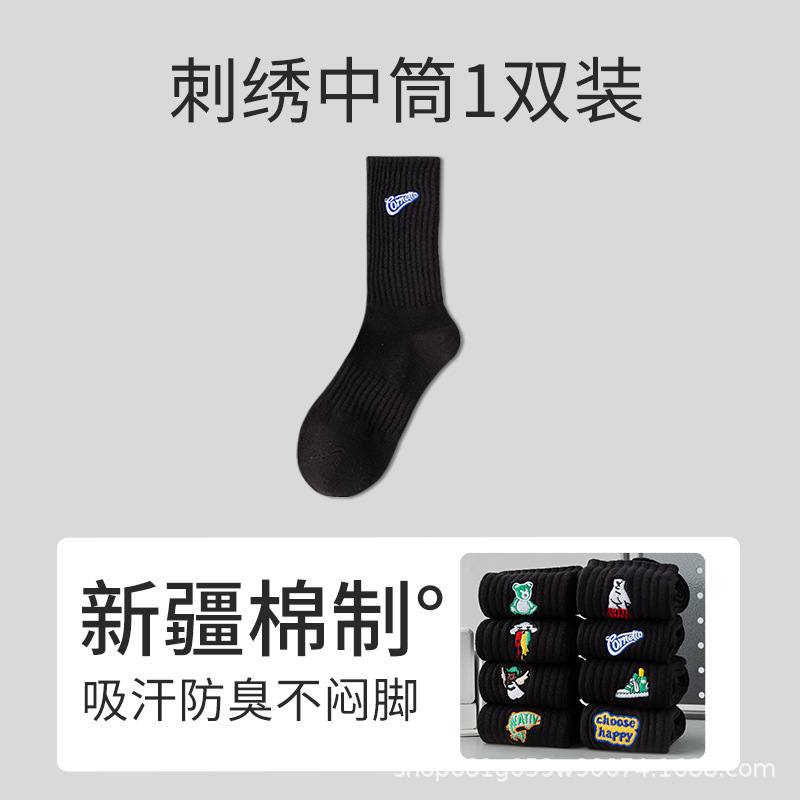 남성용 양말 순면 땀 흡수 및 탈취 여름 얇은 면 블랙 중간 길이 스포츠 단색 비즈니스 롱삭스 사계절용스토어 가기