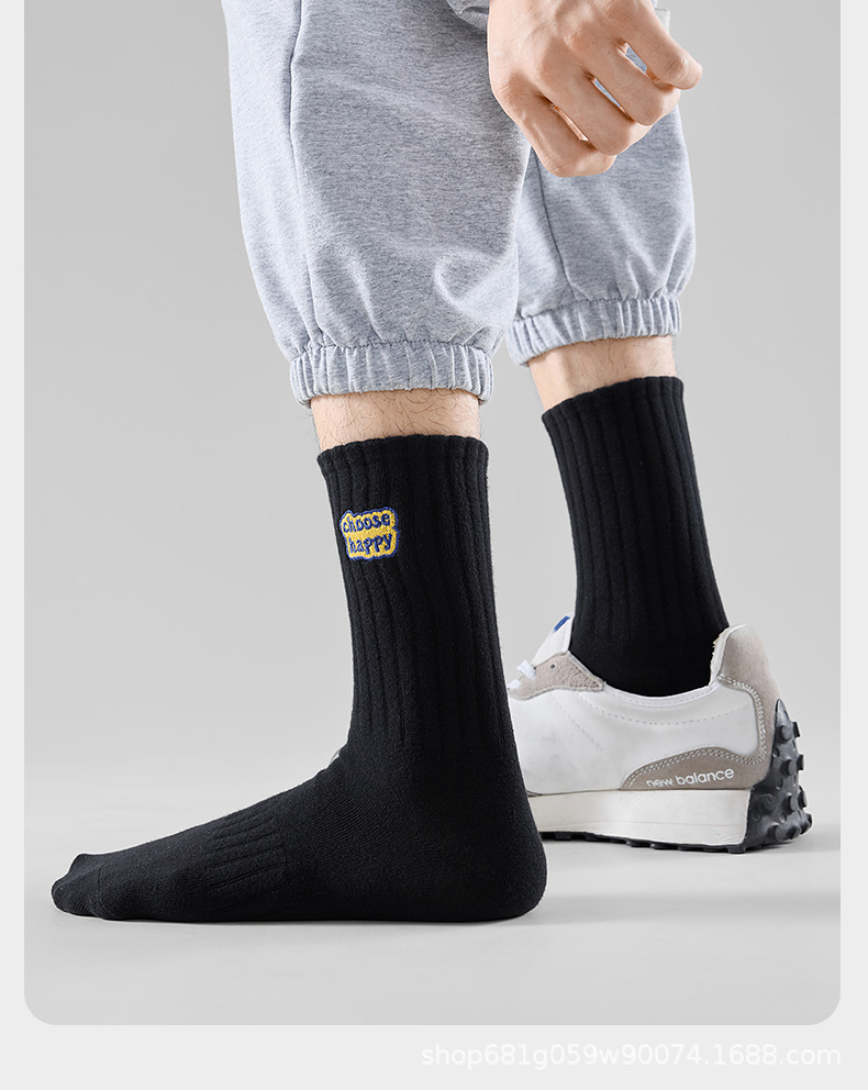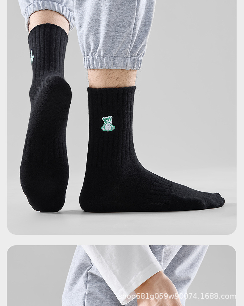 남성용 양말 순면 땀 흡수 및 탈취 여름 얇은 면 블랙 중간 길이 스포츠 단색 비즈니스 롱삭스 사계절용