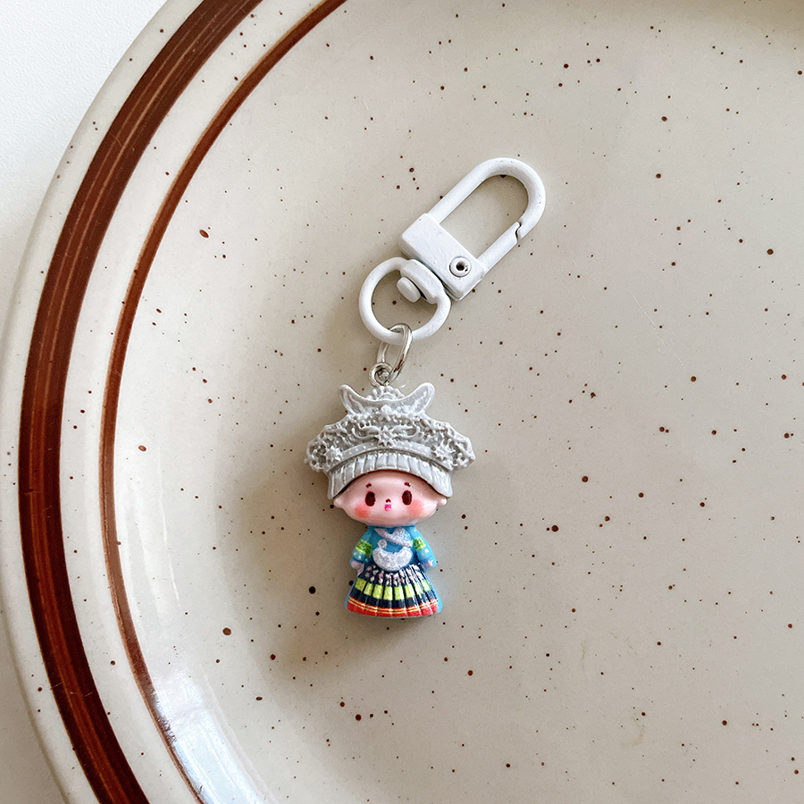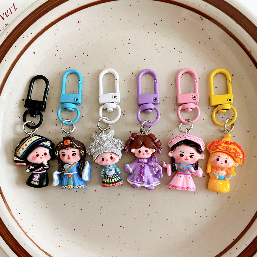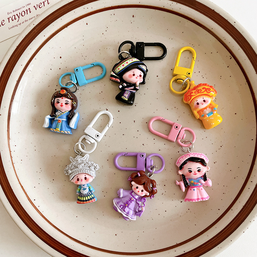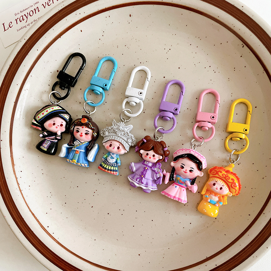 귀여운 민족 스타일 소녀 키 체인 펜던트 만화 학생 배낭 교수형 액세서리 국가 조수 여행 선물스토어 가기