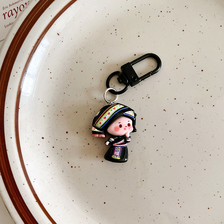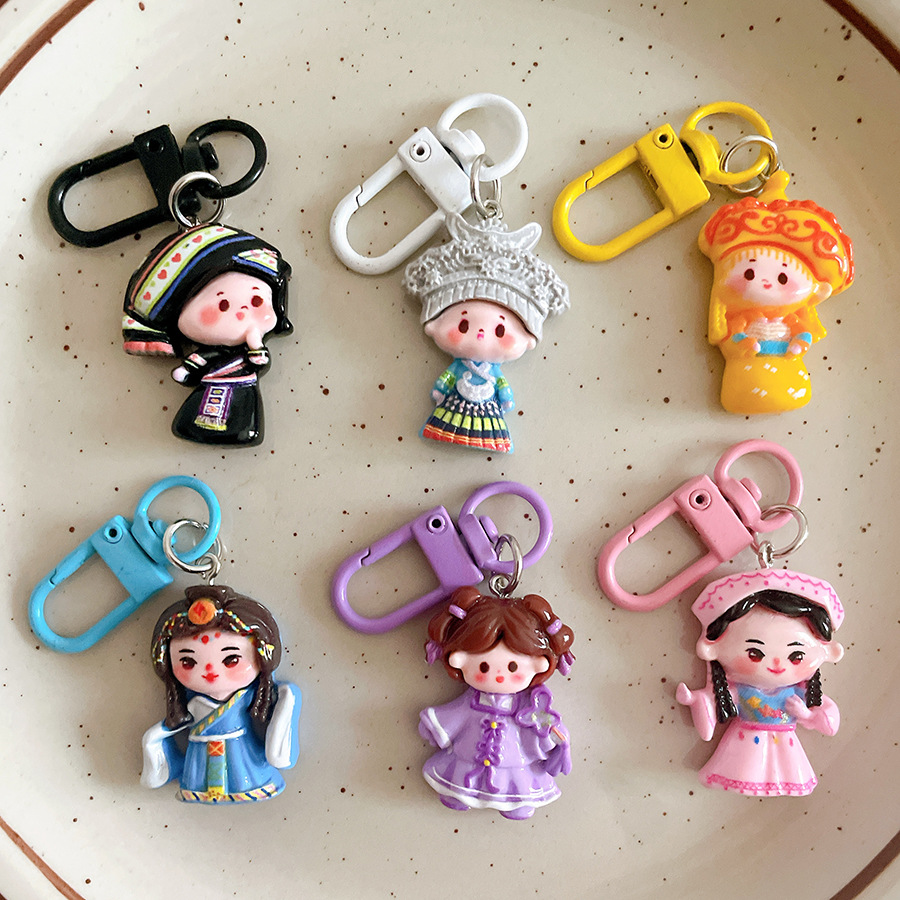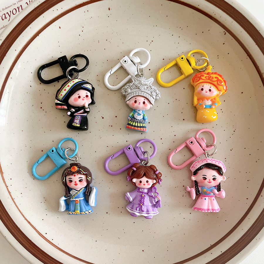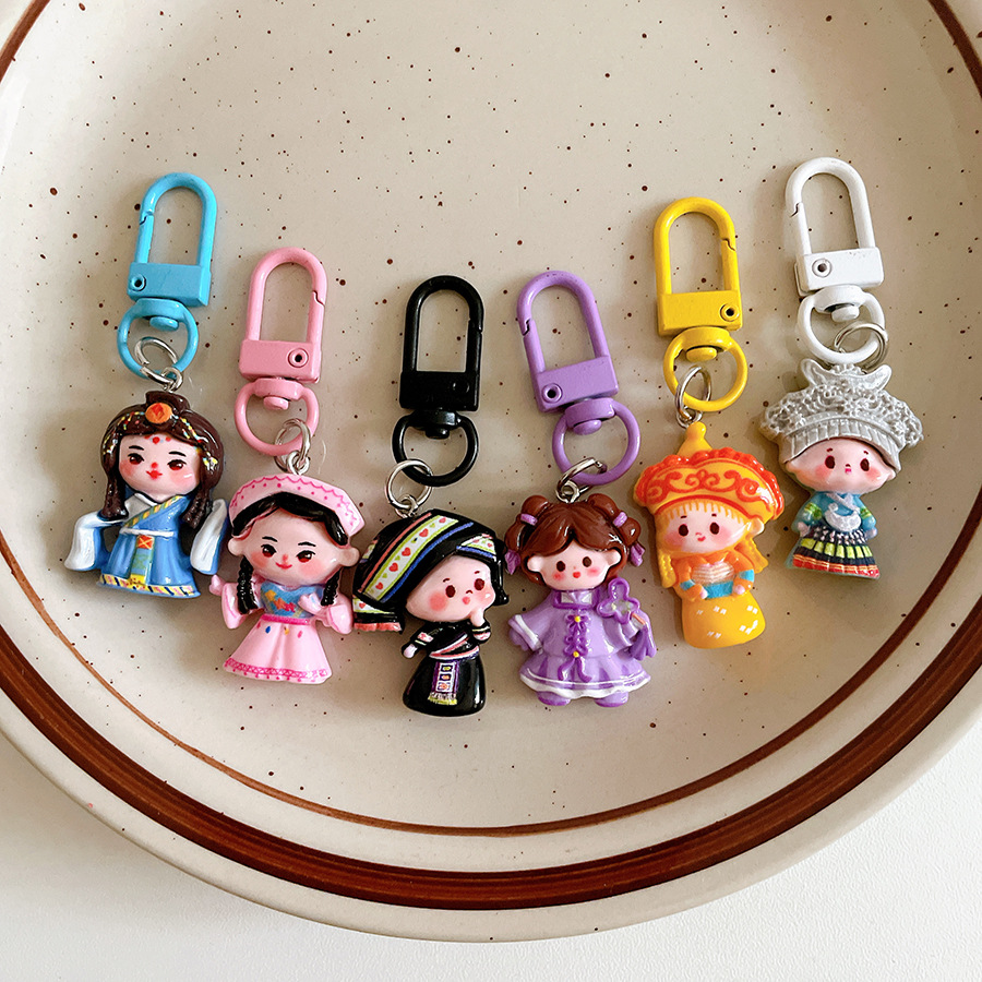 귀여운 민족 스타일 소녀 키 체인 펜던트 만화 학생 배낭 교수형 액세서리 국가 조수 여행 선물스토어 가기