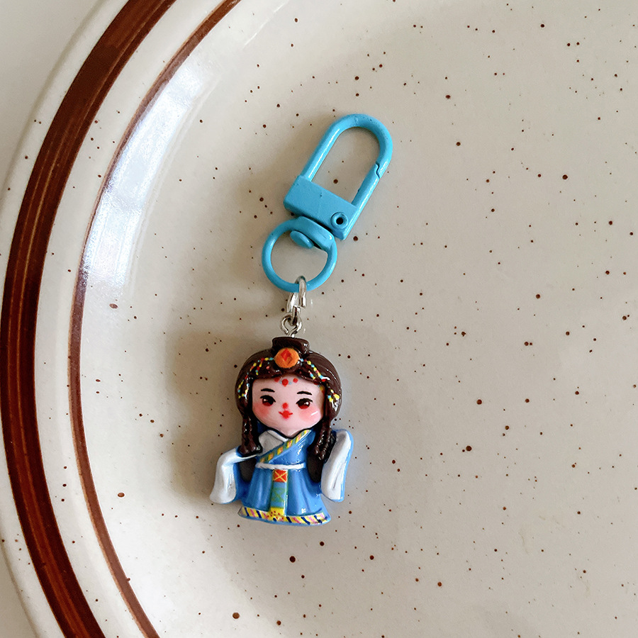 • 민족 스타일 소녀 - 파란색 열쇠고리