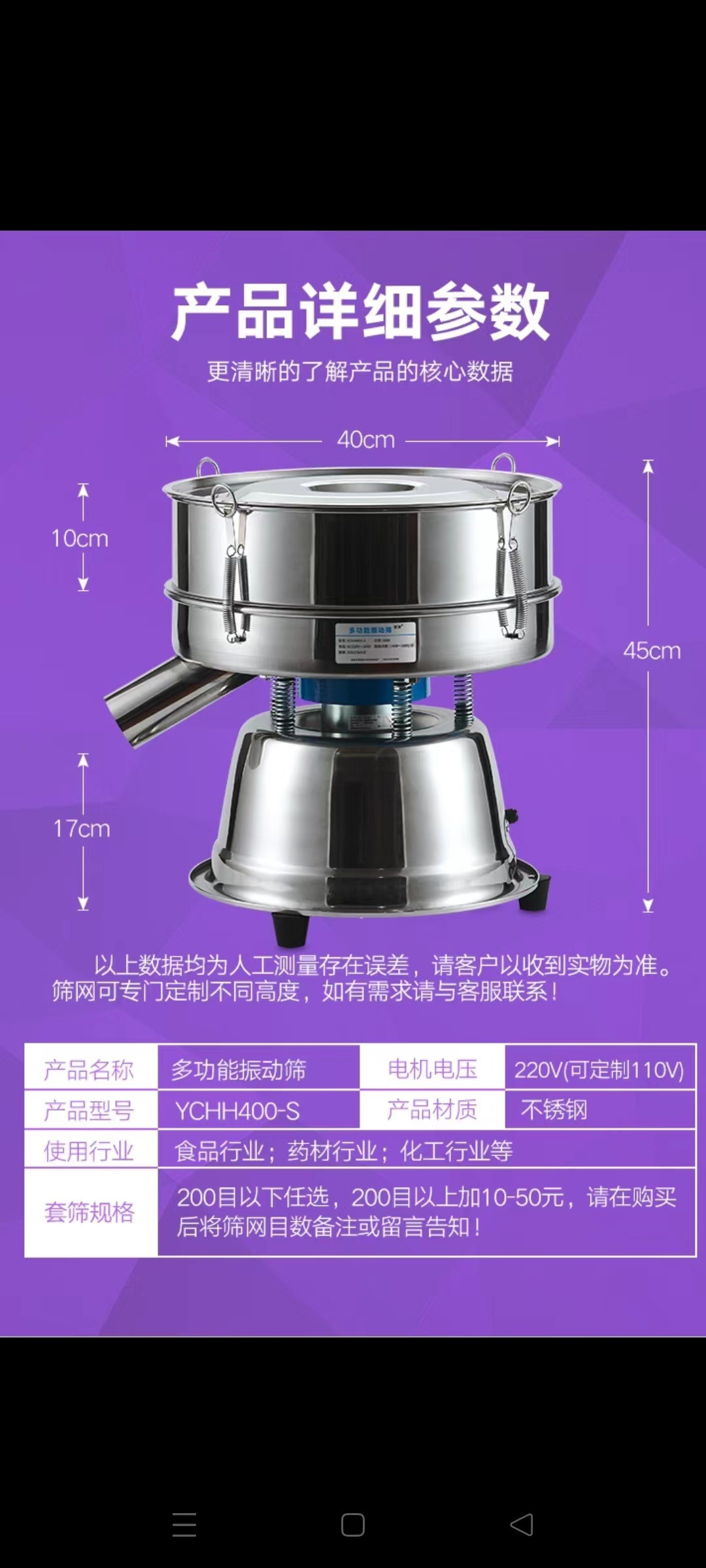 • 직경 40cm (기계) 스크린 4개 및 커버 1개 포함