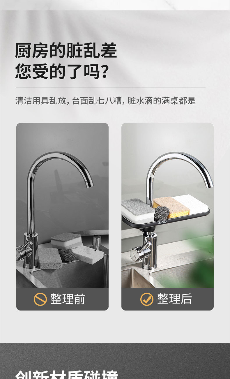 싱크대 수도꼭지 수납 선반, 기구 보관 및 정리용 특수 무타공 배수 다기능 캐비닛스토어 가기