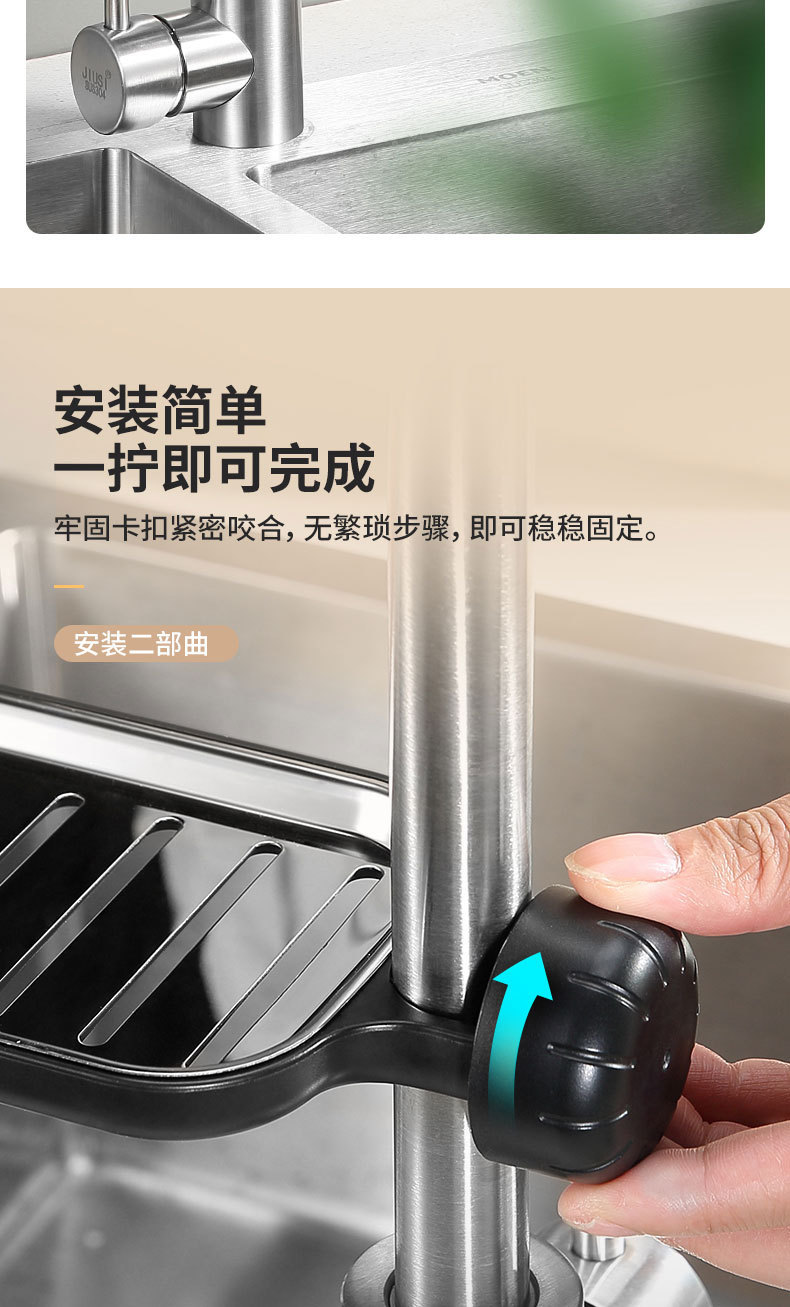 싱크대 수도꼭지 수납 선반, 기구 보관 및 정리용 특수 무타공 배수 다기능 캐비닛