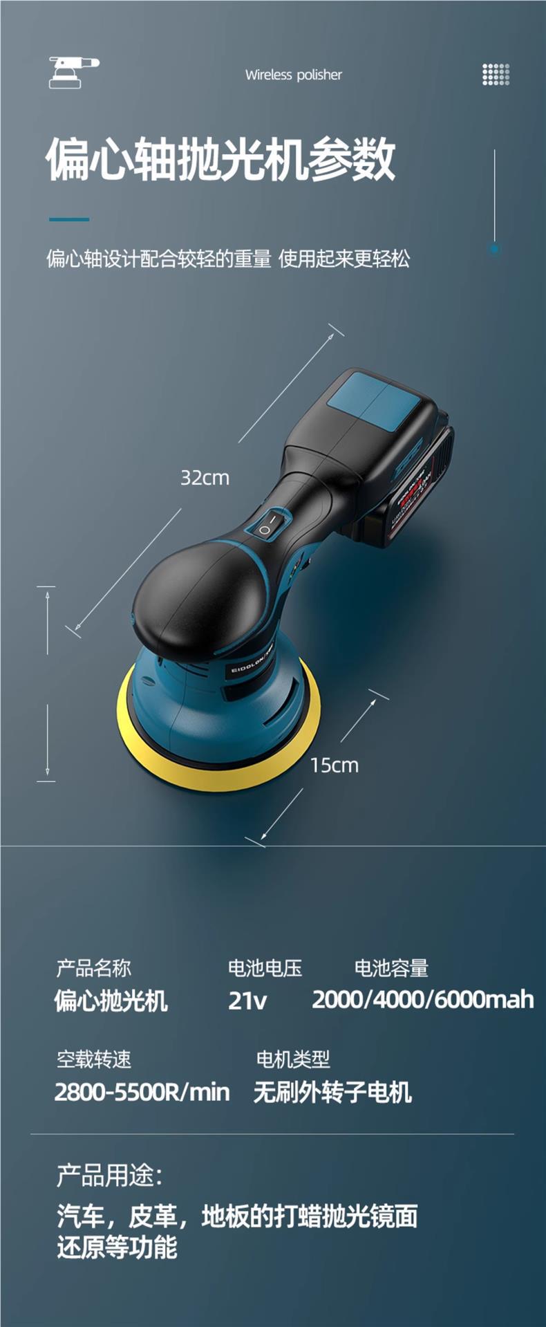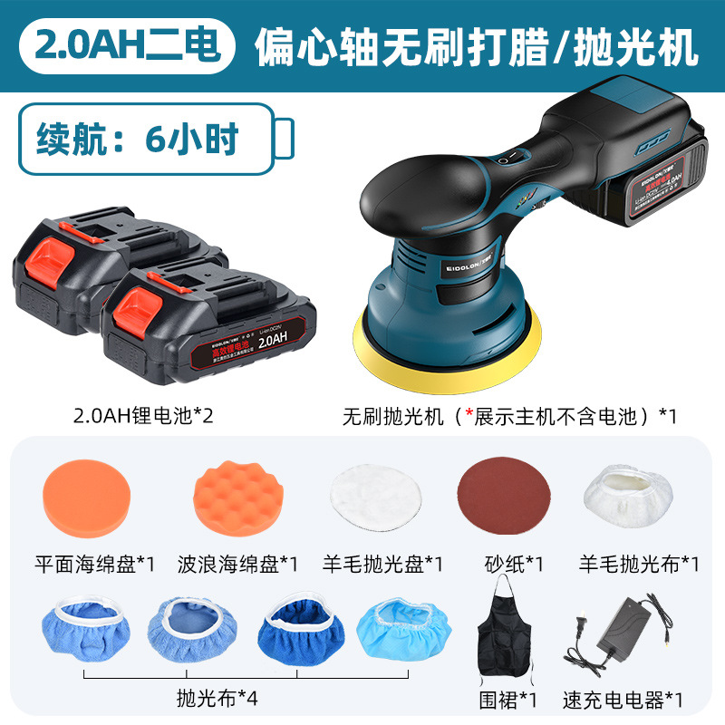 • 리튬 배터리 편심 왁싱 및 연마기 - 2.0AH 패키지 1 [배터리 수명 3시간]