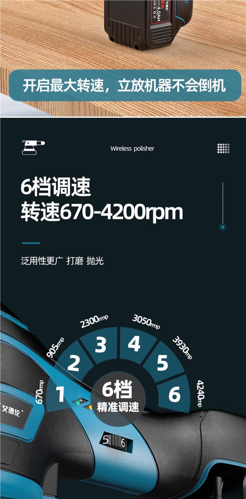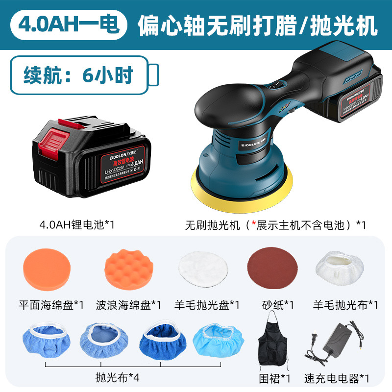 • 리튬 배터리 편심 왁싱 및 연마기-6.0AH 패키지 1 [배터리 수명 9시간]