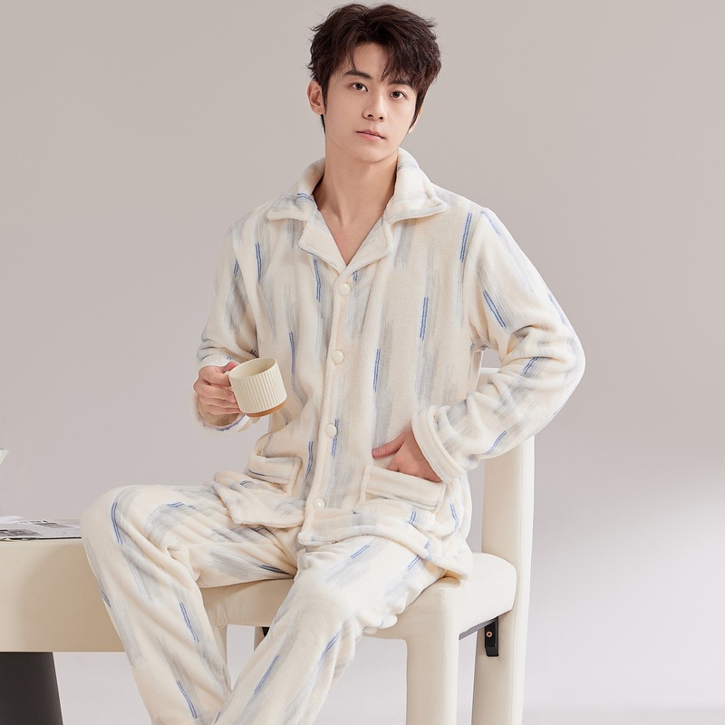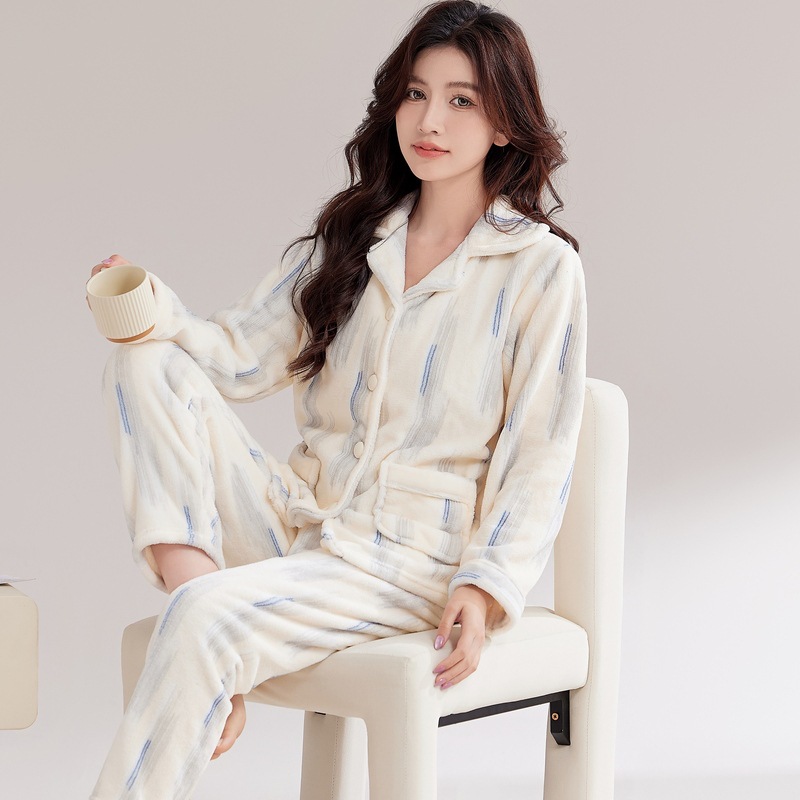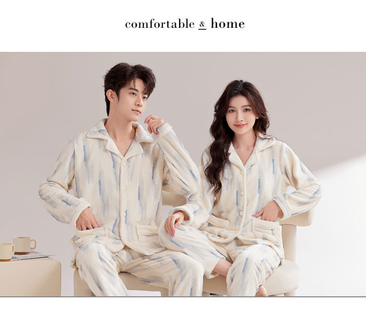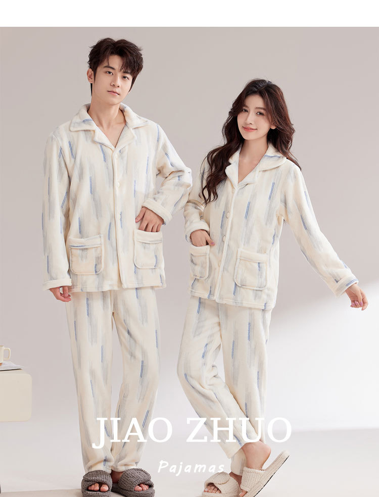 커플 잠옷 여성의 가을과 겨울 산호 양털 기모 두꺼운 겨울 남자 플란넬 홈 옷 세트 외복스토어 가기