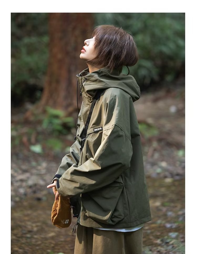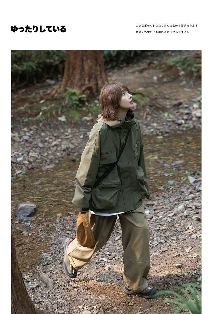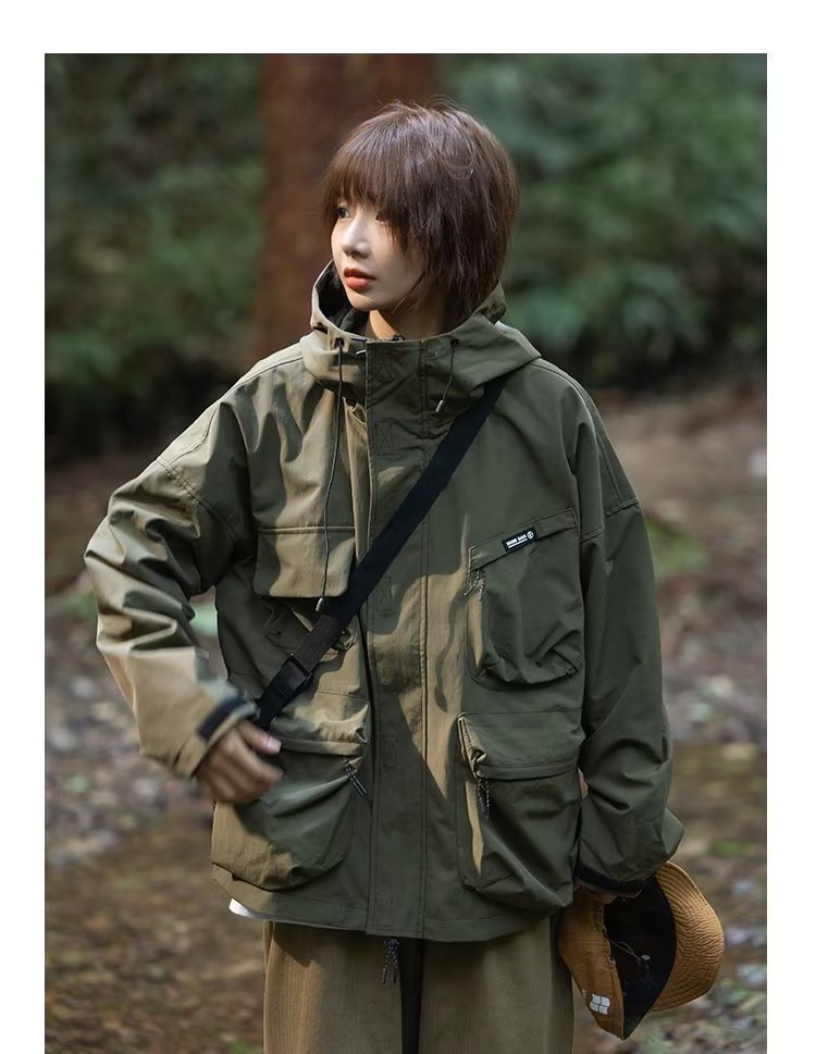 가을 산 야외 기능성 방수 러시 옷 남자의 느슨한 큰 포켓 후드 자켓 유행 캐주얼 솔리드 컬러 트렌디 브랜드