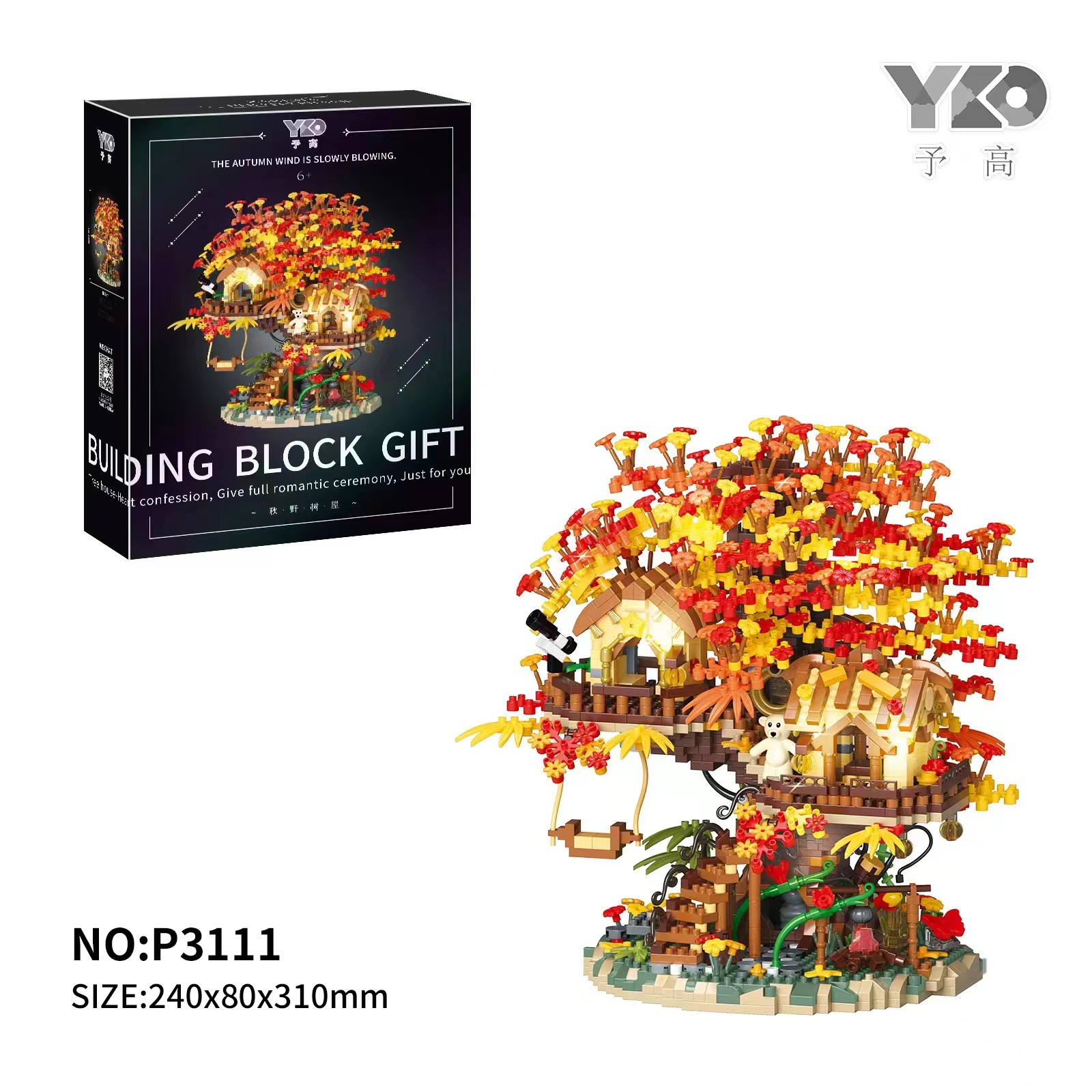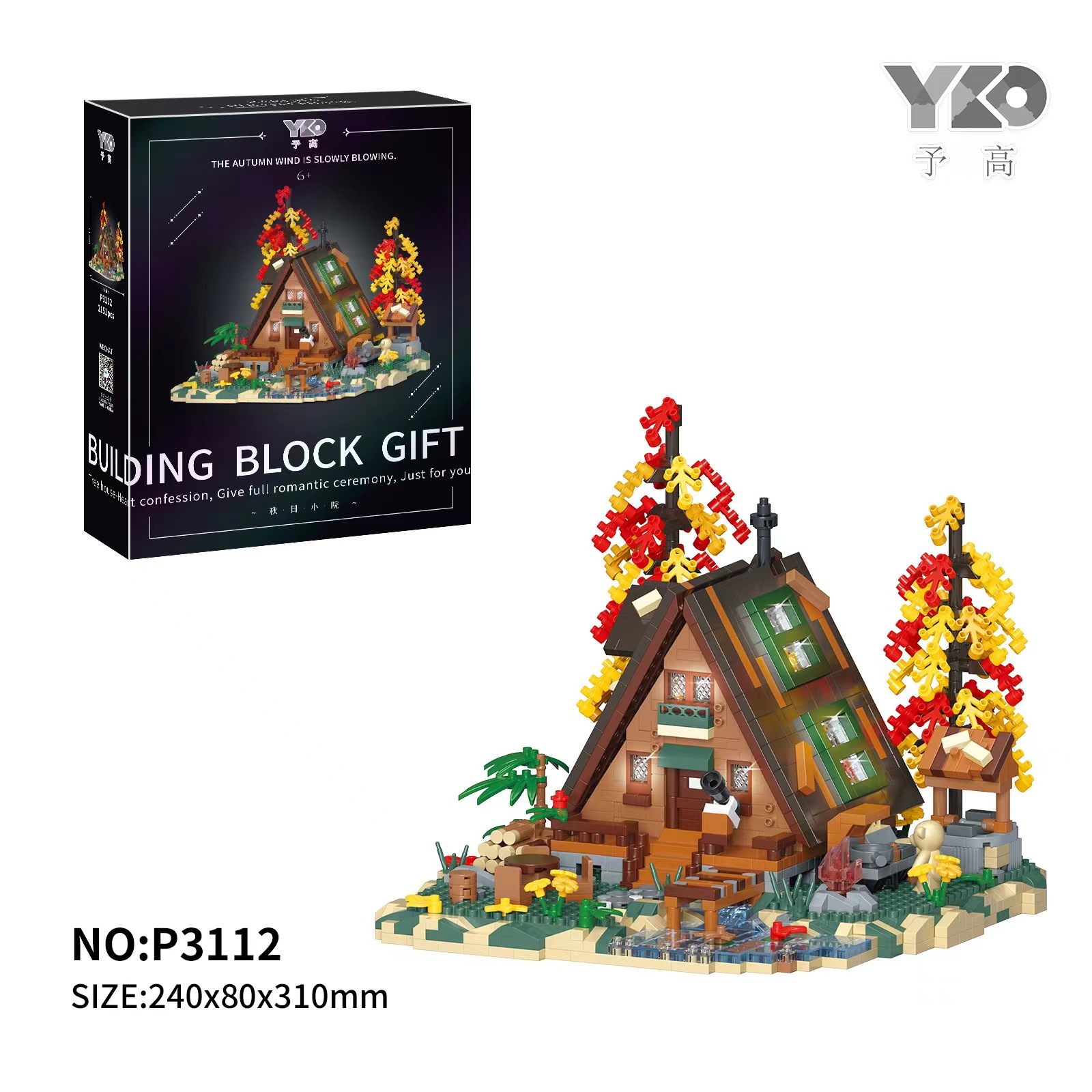 높은 건물 블록 P3111-P3113 가을 숲 나무 집 건물 마이크로 입자 조립 장난감 장식품 선물