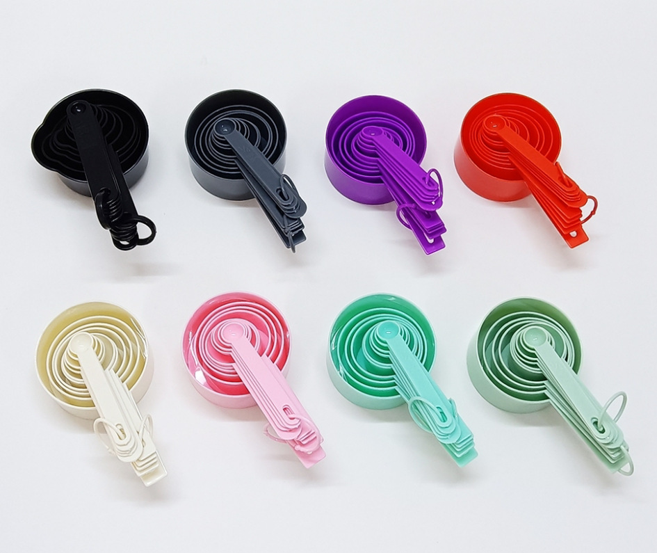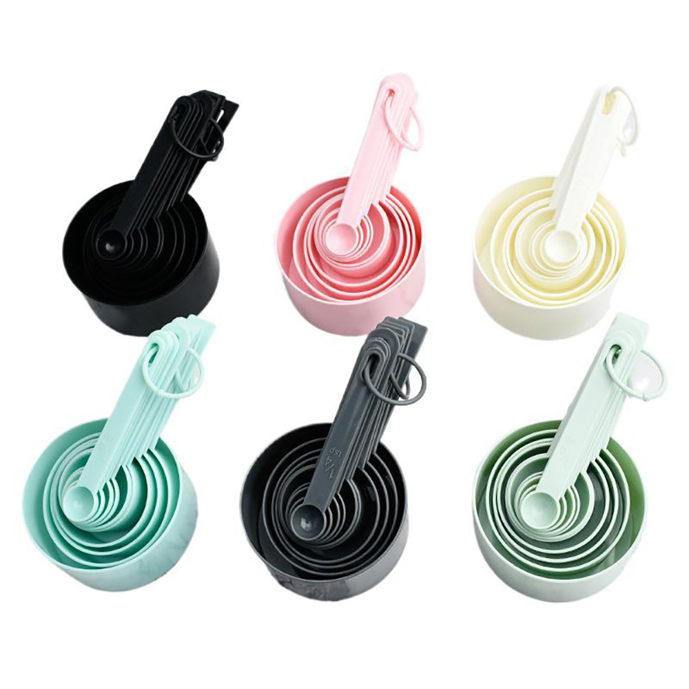 공장 재고 10PC 검은 세트 플라스틱 측정 숟가락 베이킹 측정 숟가락 우유 분말 졸업 측정 컵 베이킹 도구
