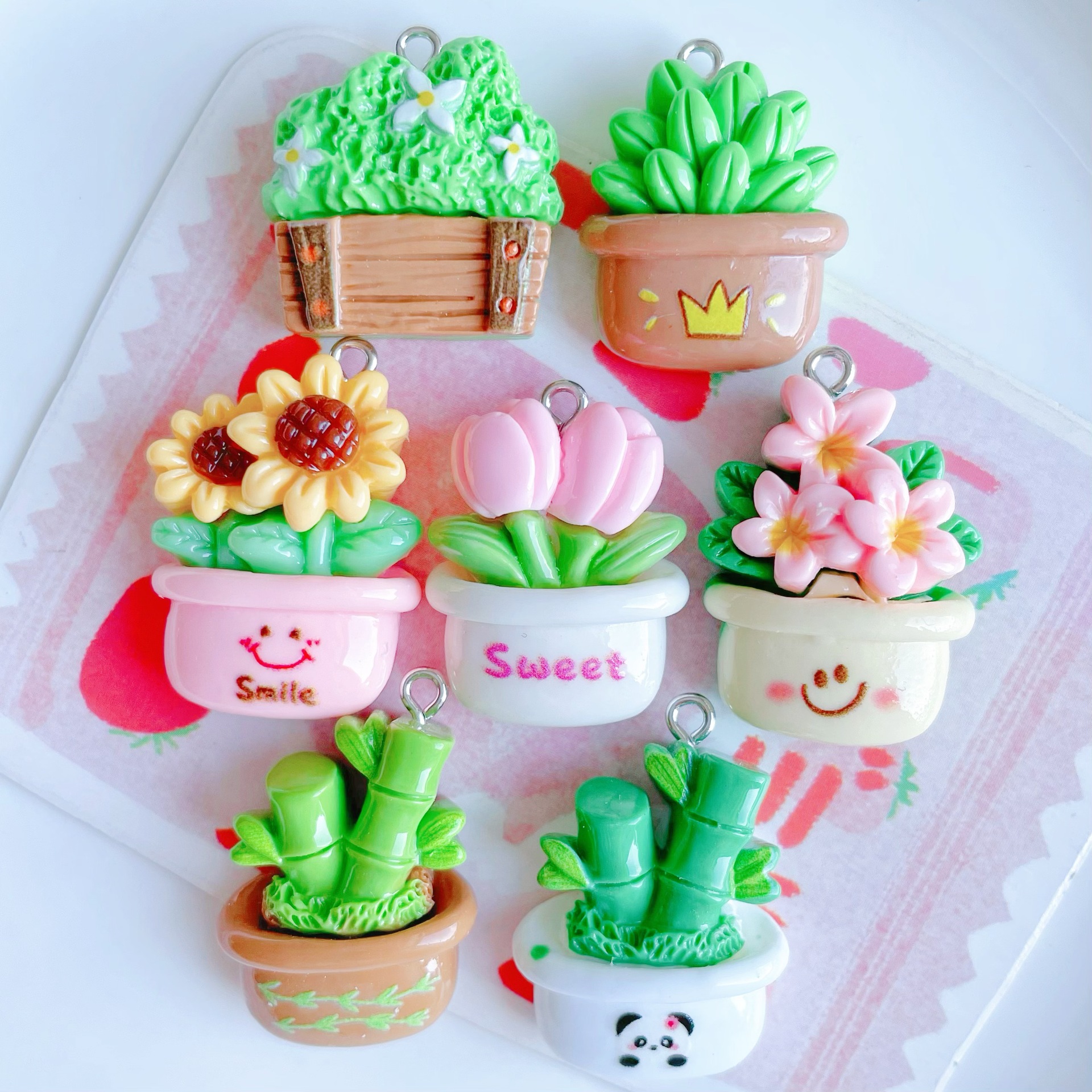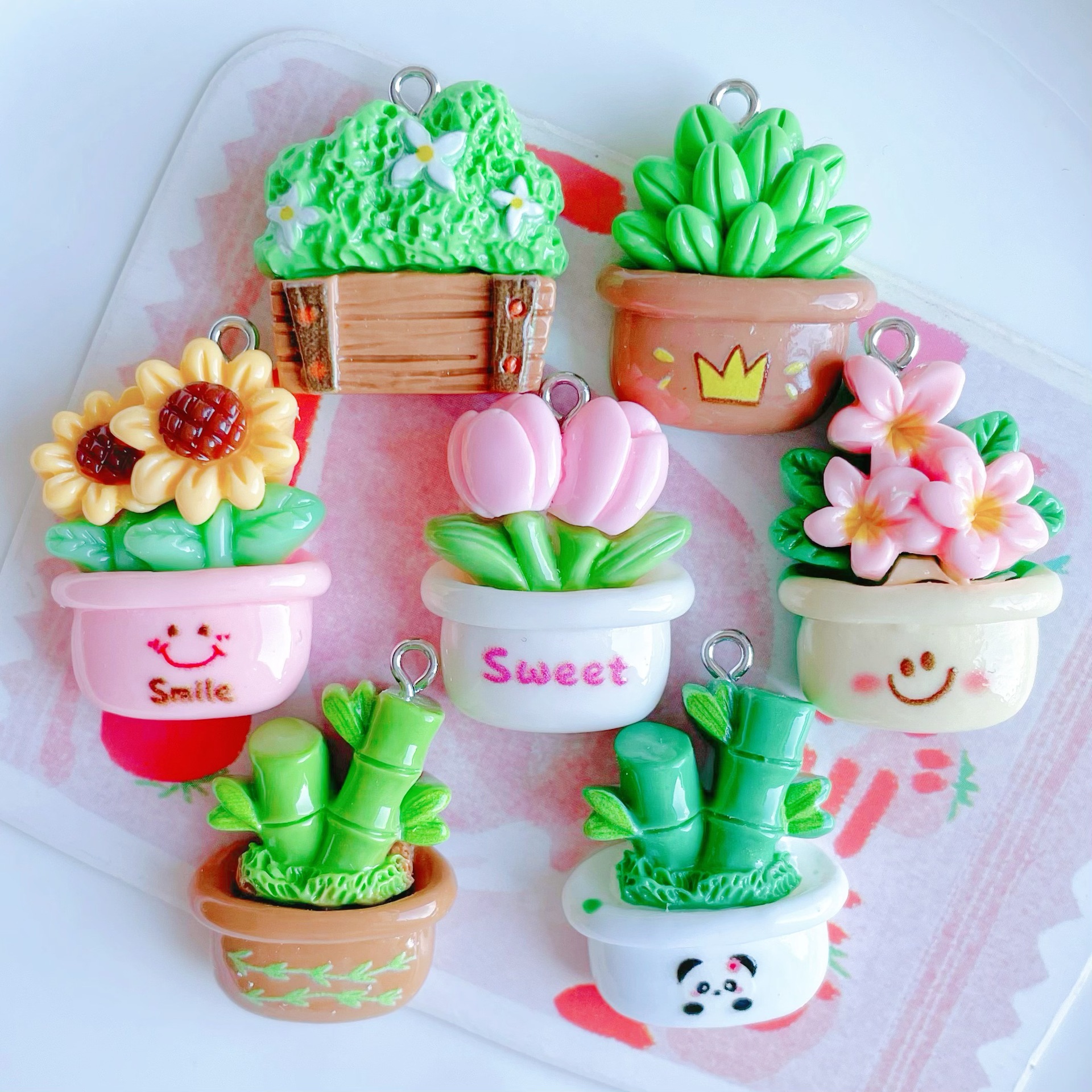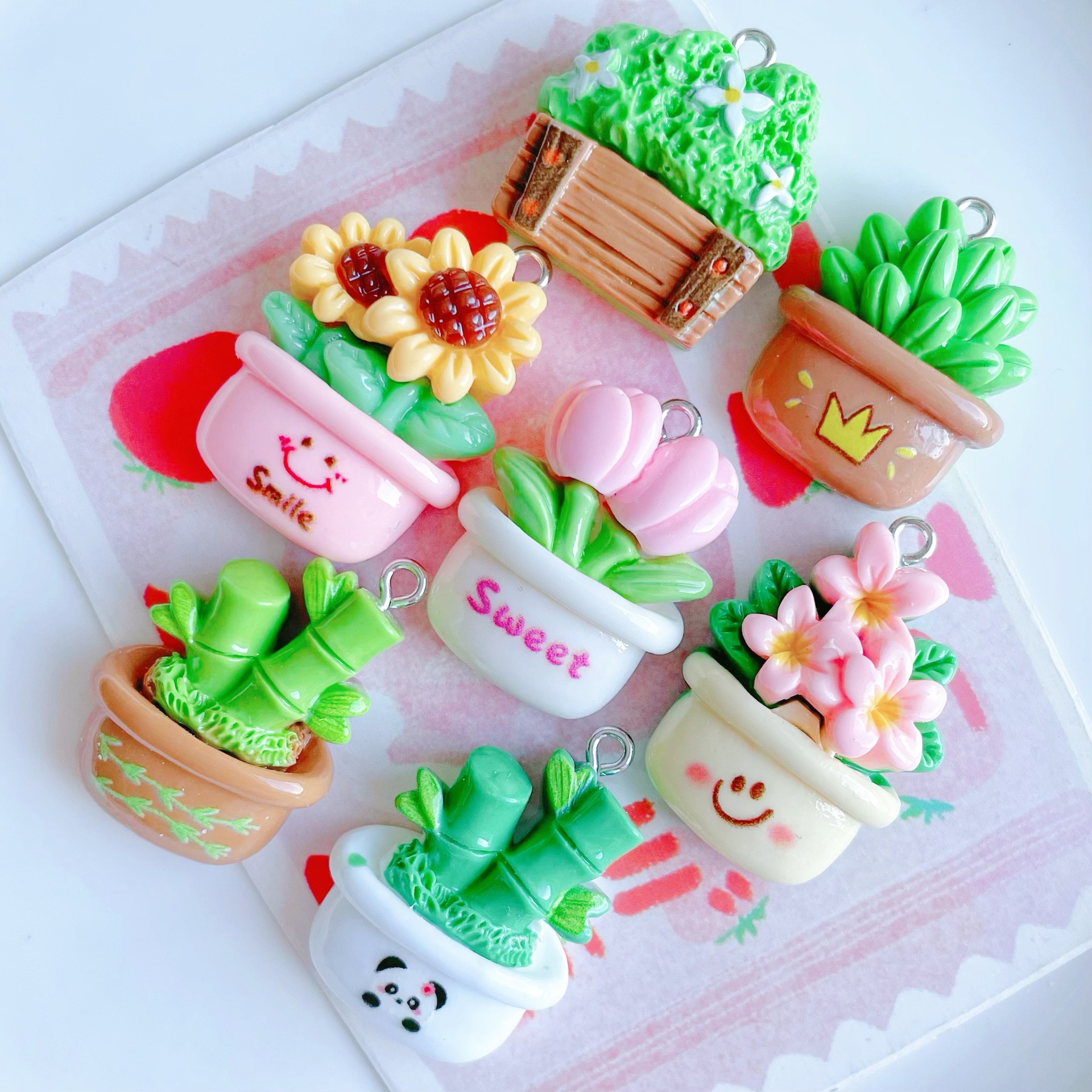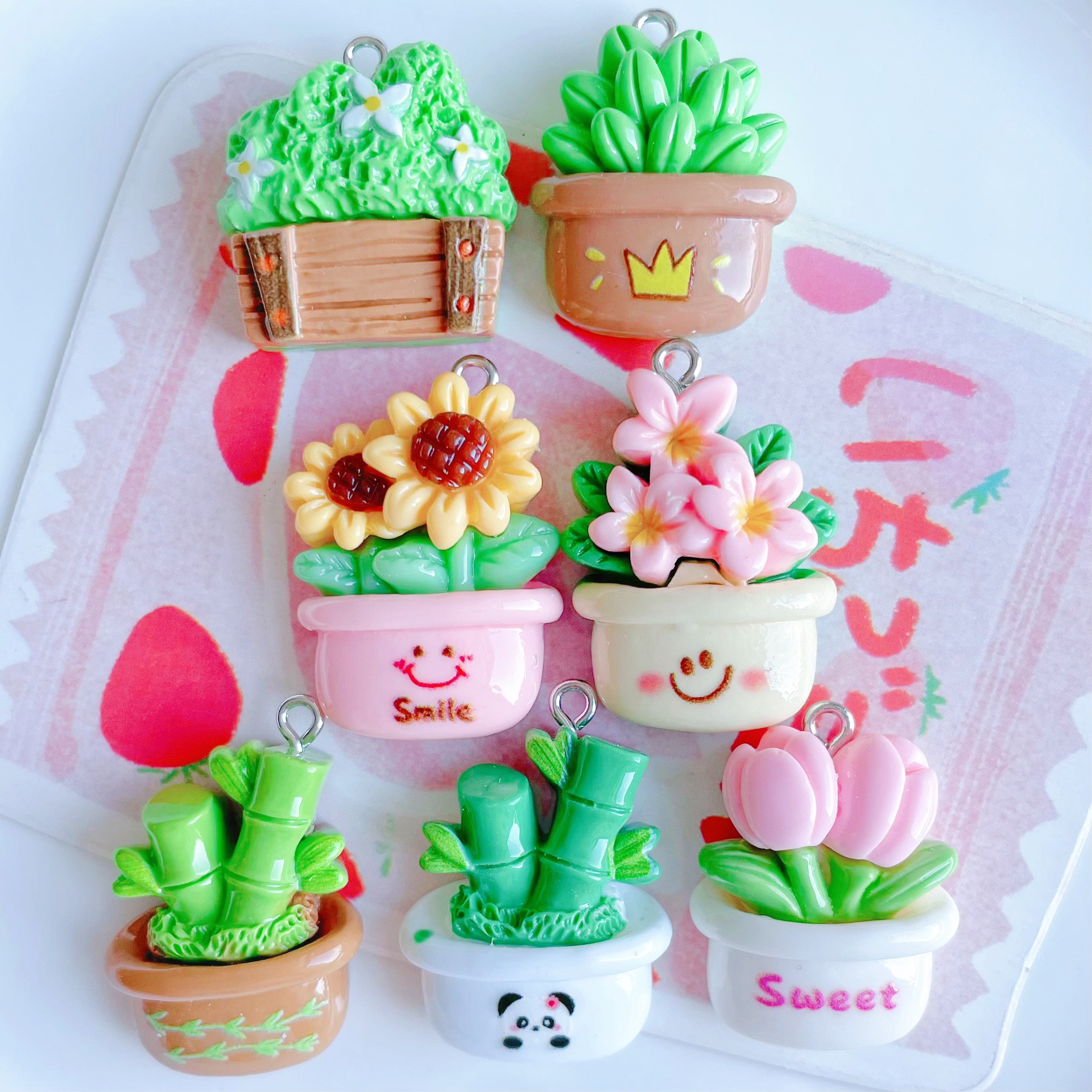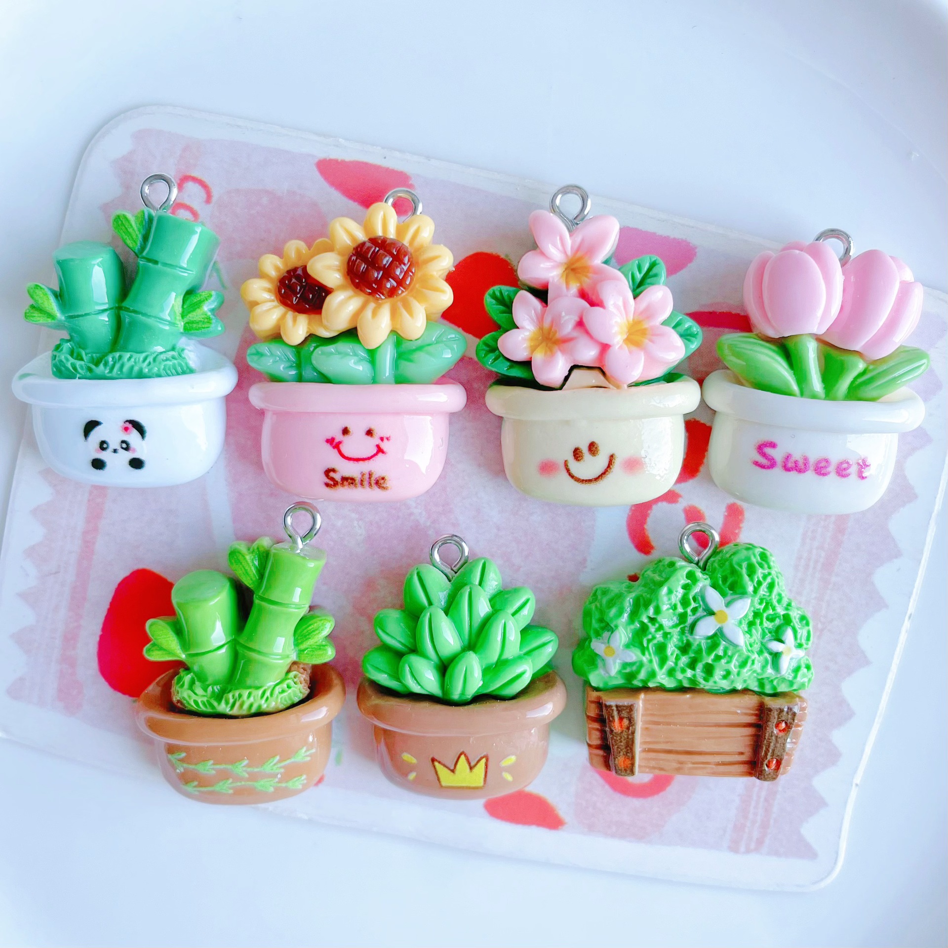 만화 귀여운 화분 수지 액세서리 시뮬레이션 다육 꽃 대나무 식물 보석 펜던트 펜던트 액세서리스토어 가기
