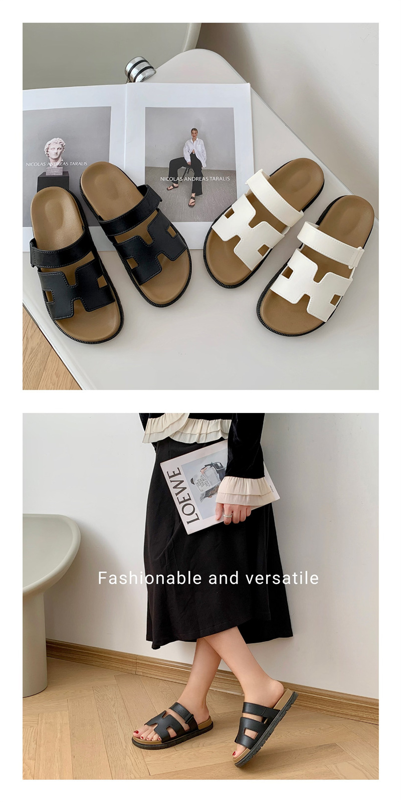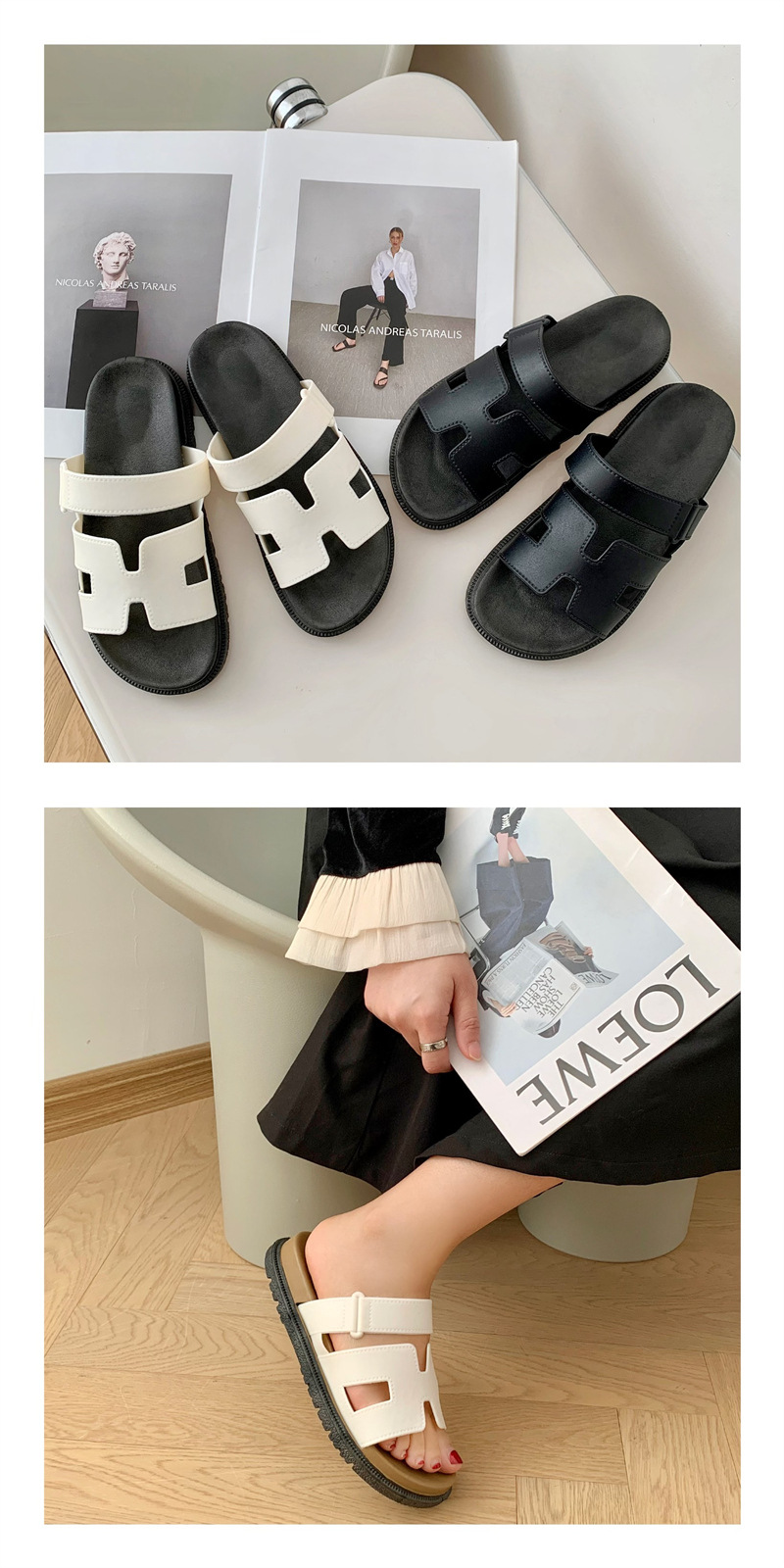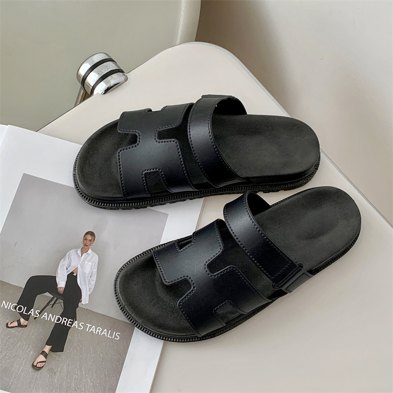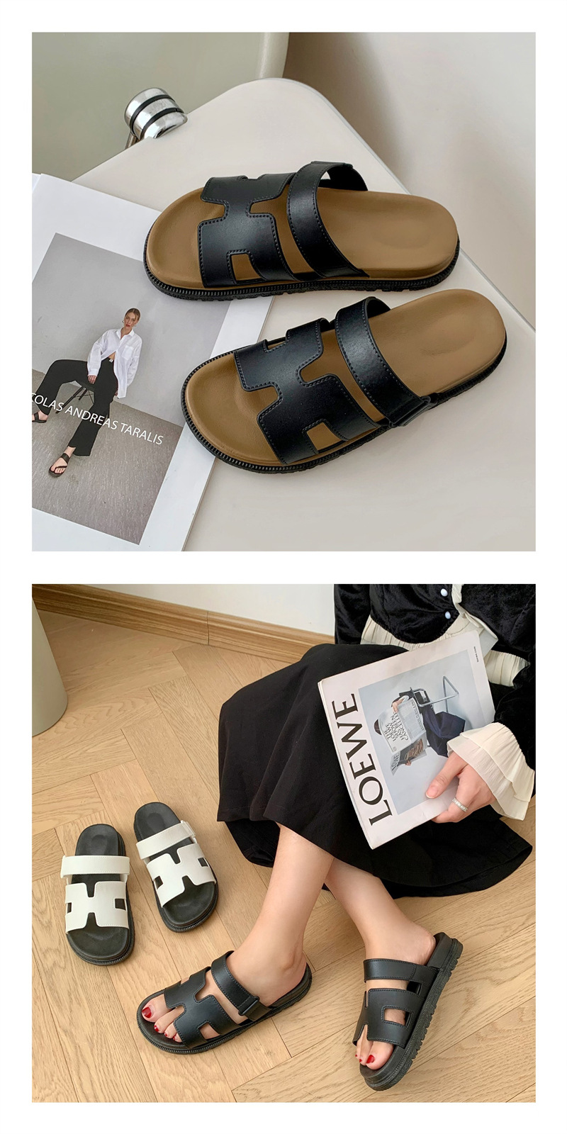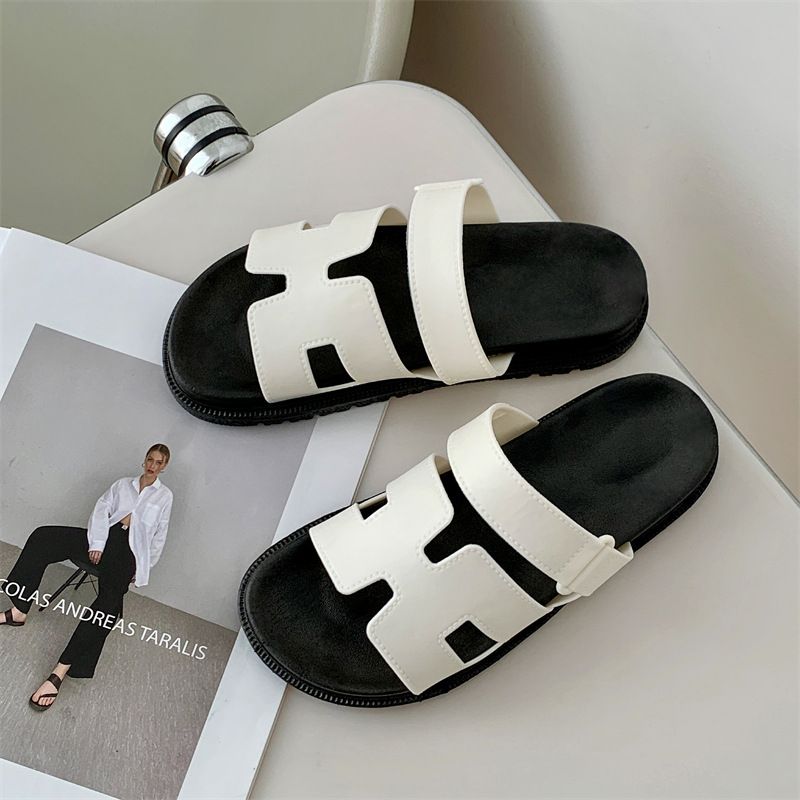 국경 2024 여름 새로운 패션 샌들 H 자형 퓨어 뷰티 스티커 캐주얼 두꺼운 단독 샌들 여성용 아우터웨어