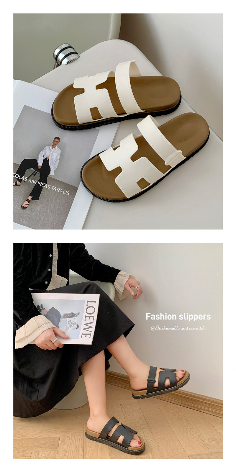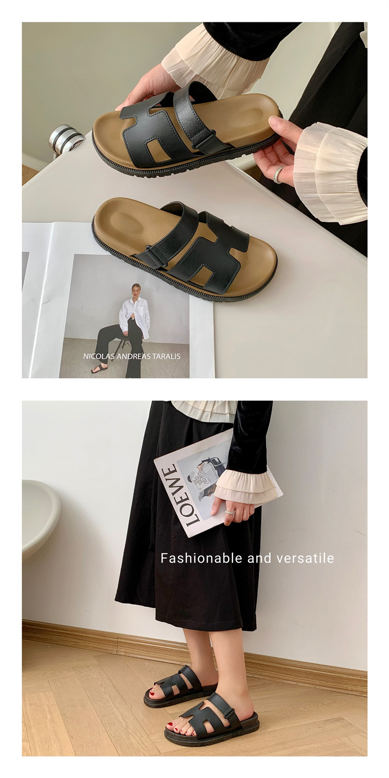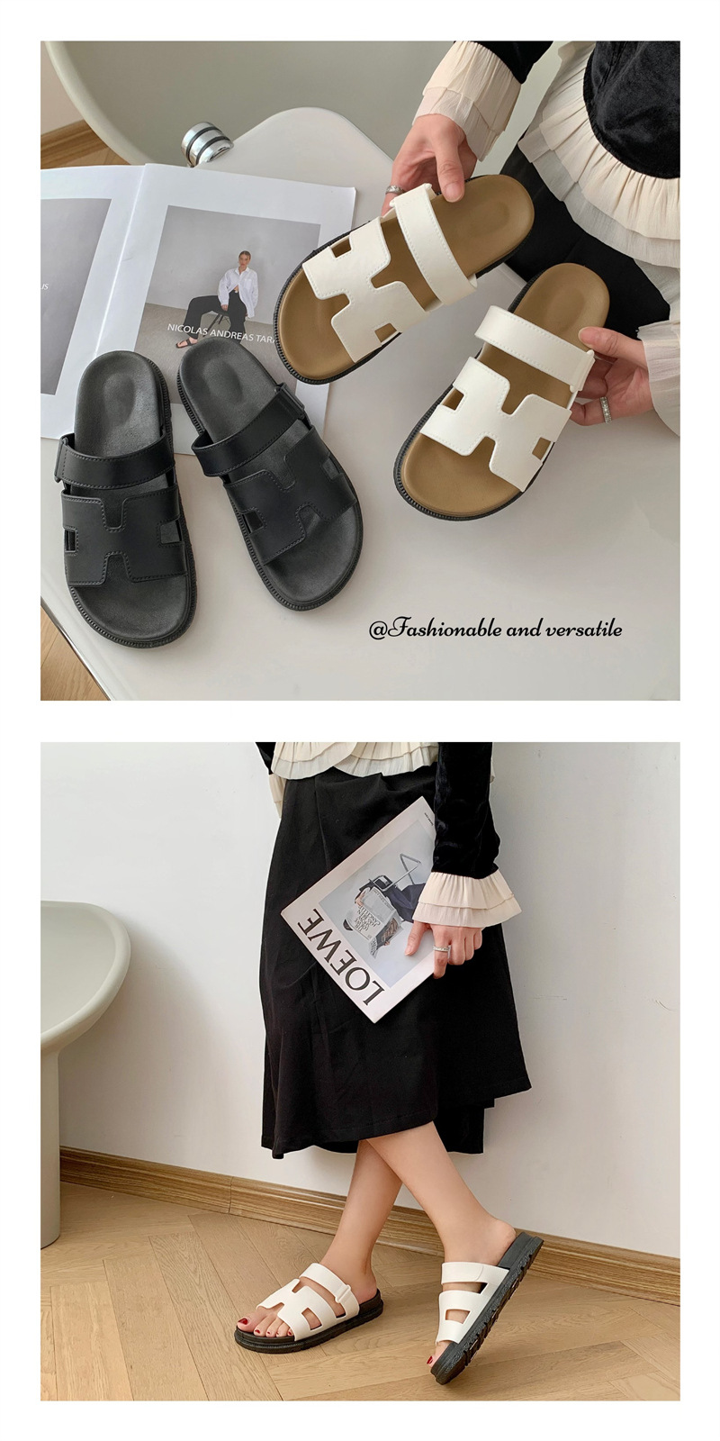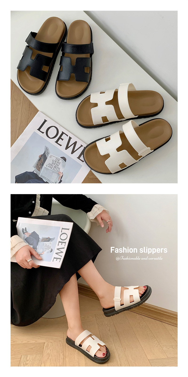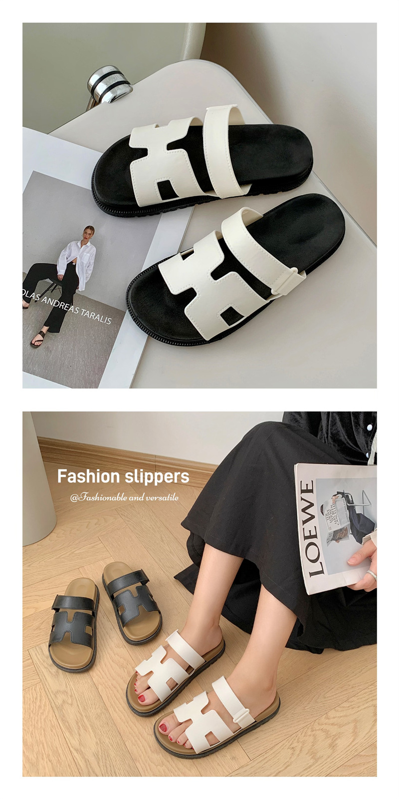 국경 2024 여름 새로운 패션 샌들 H 자형 퓨어 뷰티 스티커 캐주얼 두꺼운 단독 샌들 여성용 아우터웨어