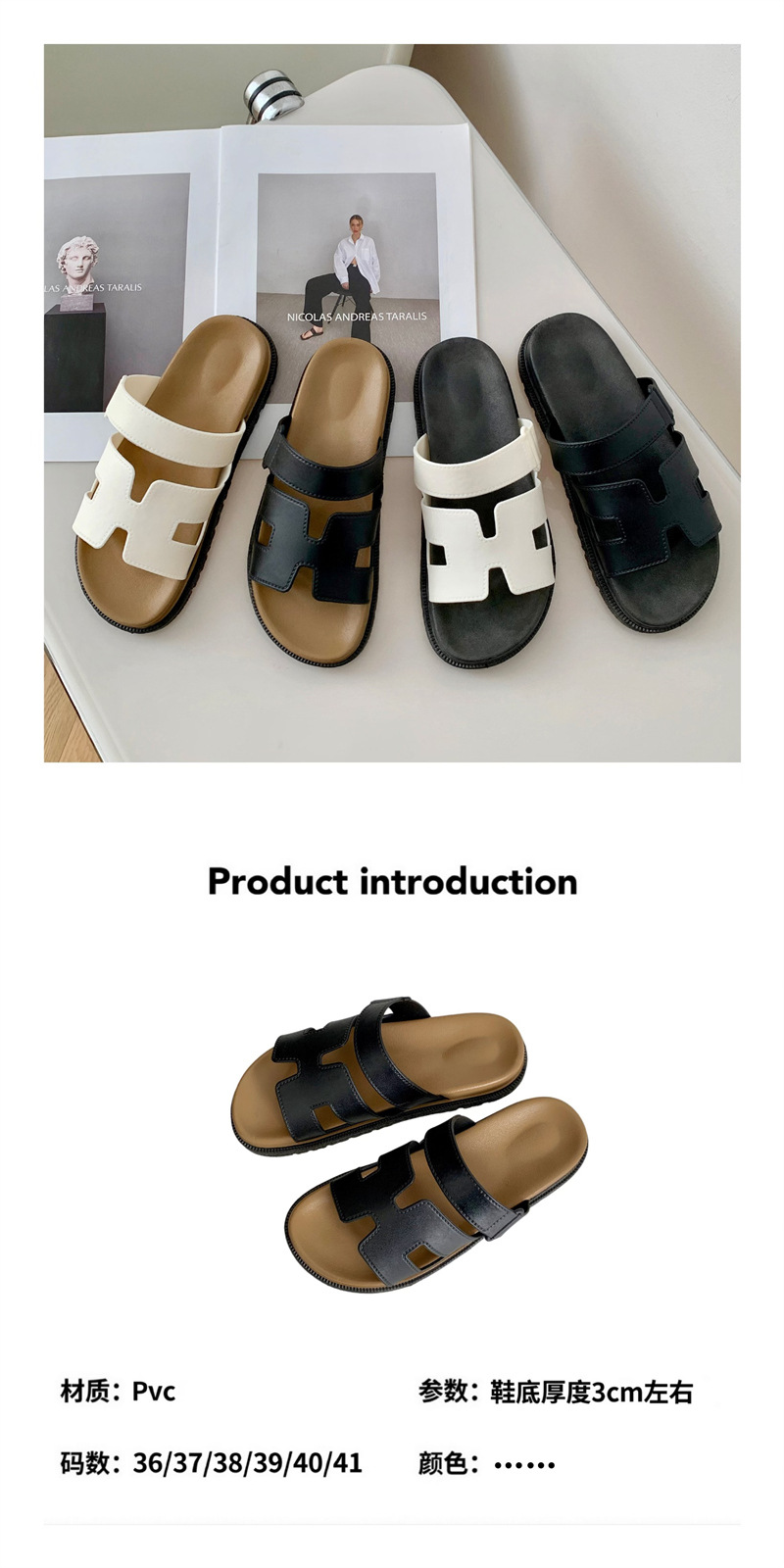 국경 2024 여름 새로운 패션 샌들 H 자형 퓨어 뷰티 스티커 캐주얼 두꺼운 단독 샌들 여성용 아우터웨어스토어 가기