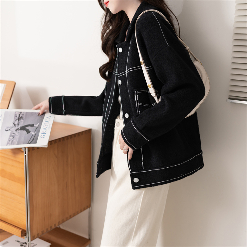 여성을위한 짧은 모조 모직 코트 2025 새로운 가을 느슨한 옷깃 스타일 작은 여성 카디건 코트스토어 가기