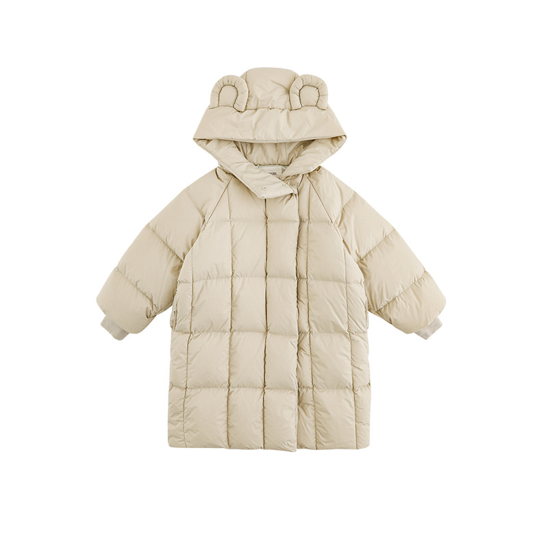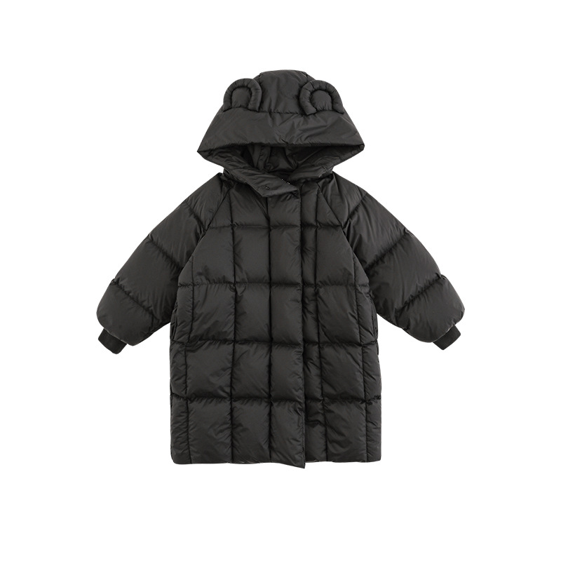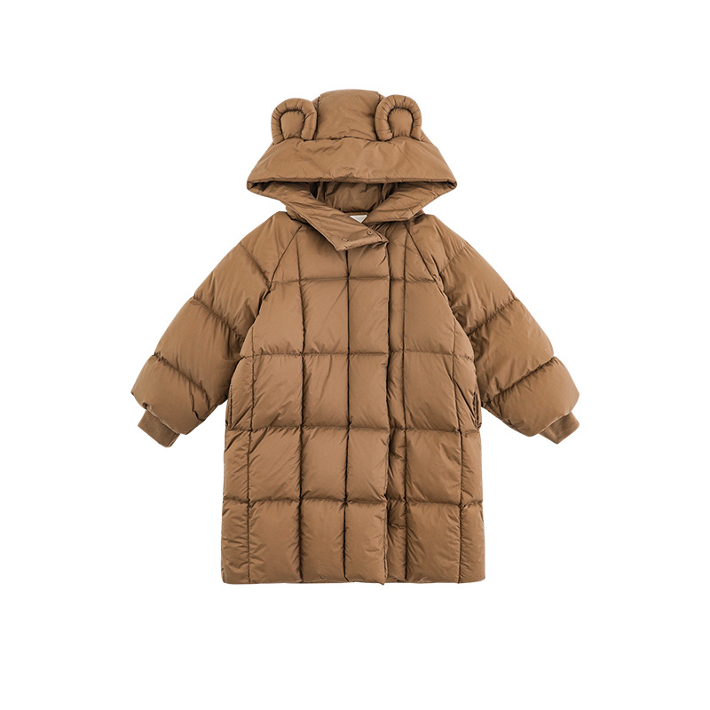 Wulibu 한 쌍 11 소년 2025 새로운 곰 귀 후드 롱 다운 재킷 겨울 어린이 재킷 유행스토어 가기