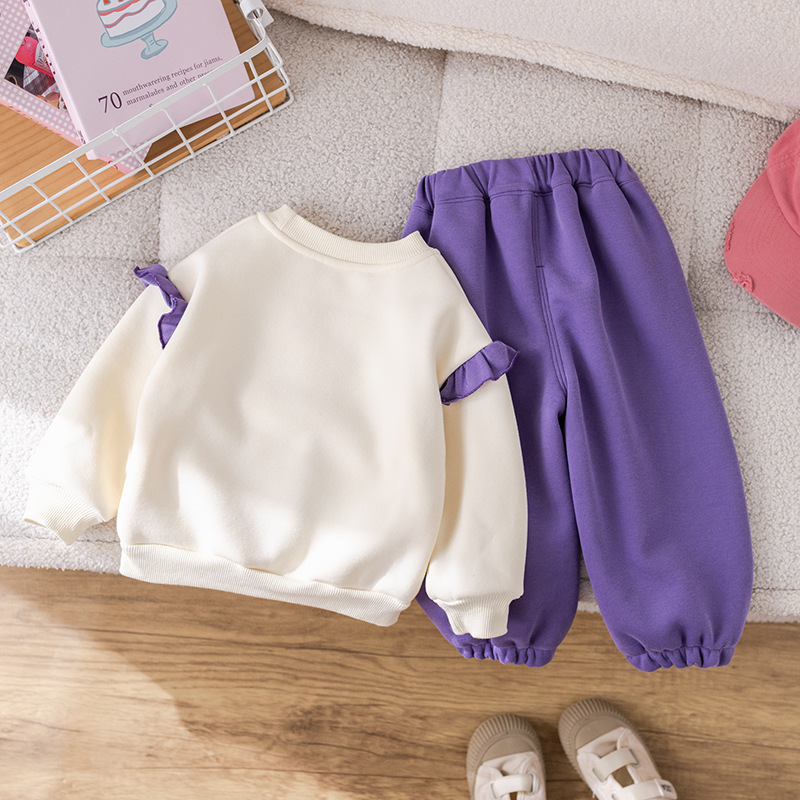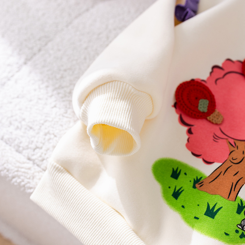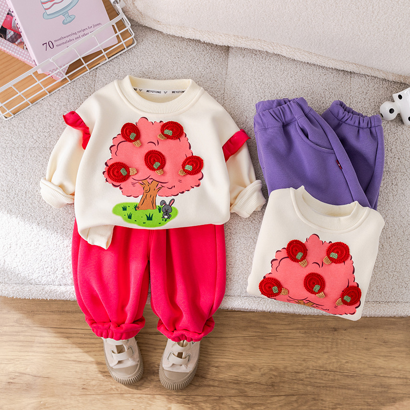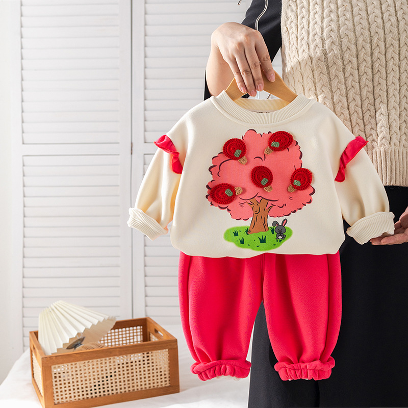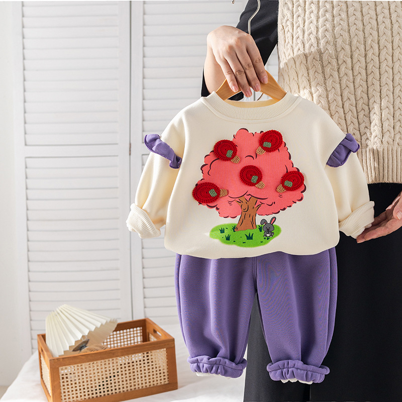 어린이 3 차원 사과 나무 소녀 기모 스포츠 따뜻한 세트 가을과 겨울 새로운 어린이 투피스 세트 유행스토어 가기
