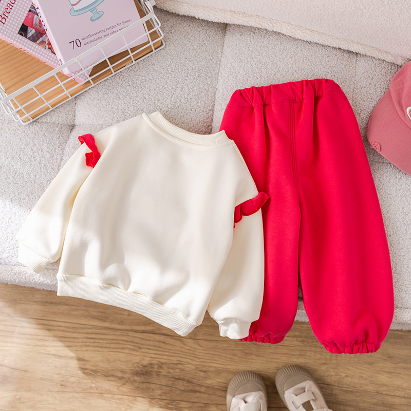 어린이 3 차원 사과 나무 소녀 기모 스포츠 따뜻한 세트 가을과 겨울 새로운 어린이 투피스 세트 유행