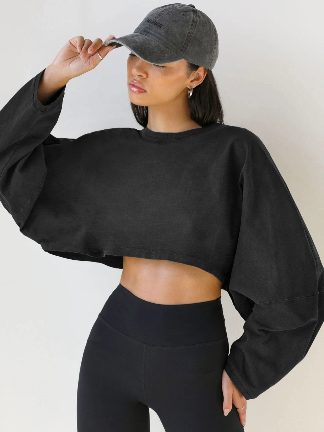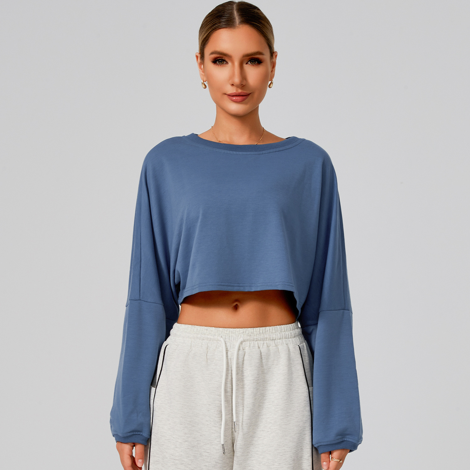 2024 국경 간 크루 넥 스웨터 유럽과 미국 여성의 짧은 스포츠베이스 셔츠 셔츠 니트 셔츠 긴 소매 느슨한 탑