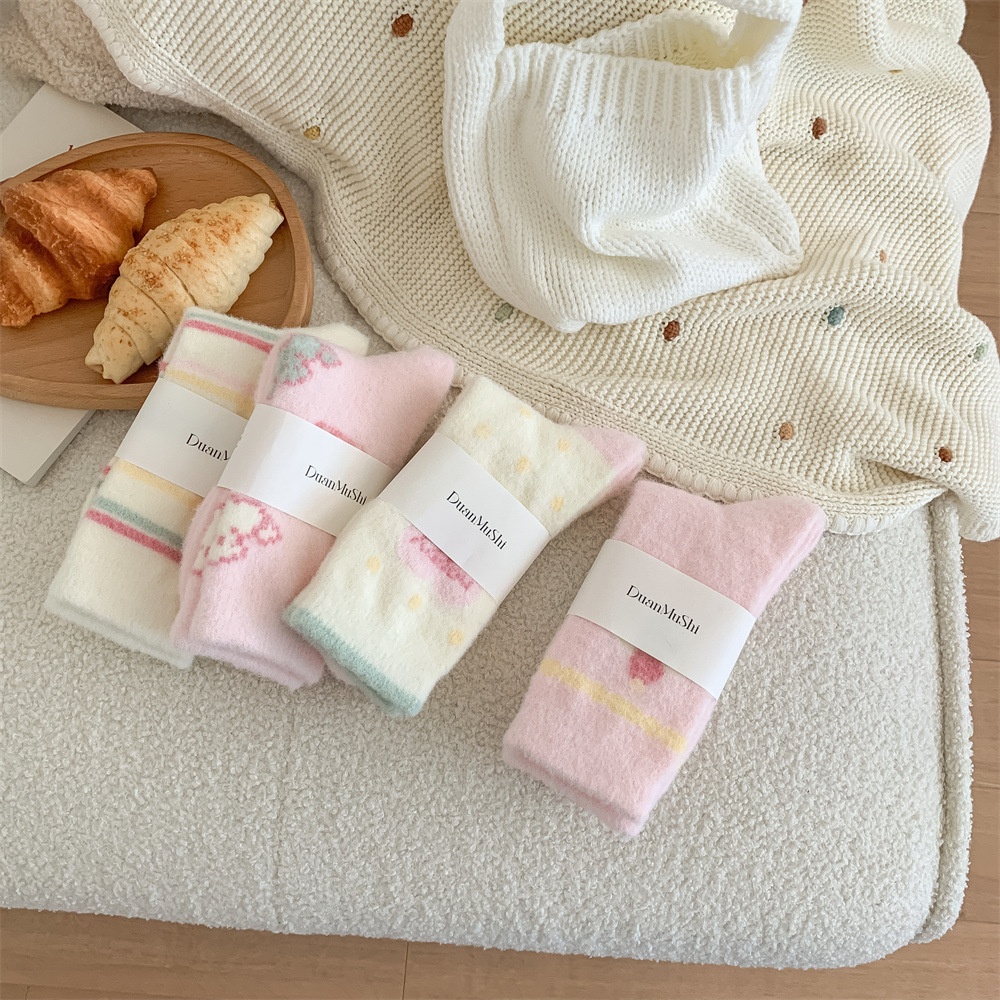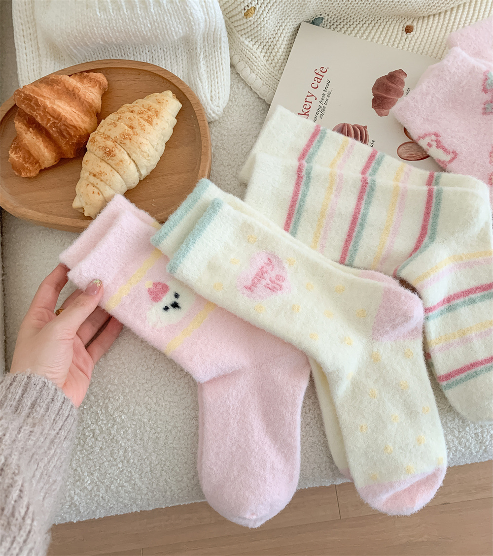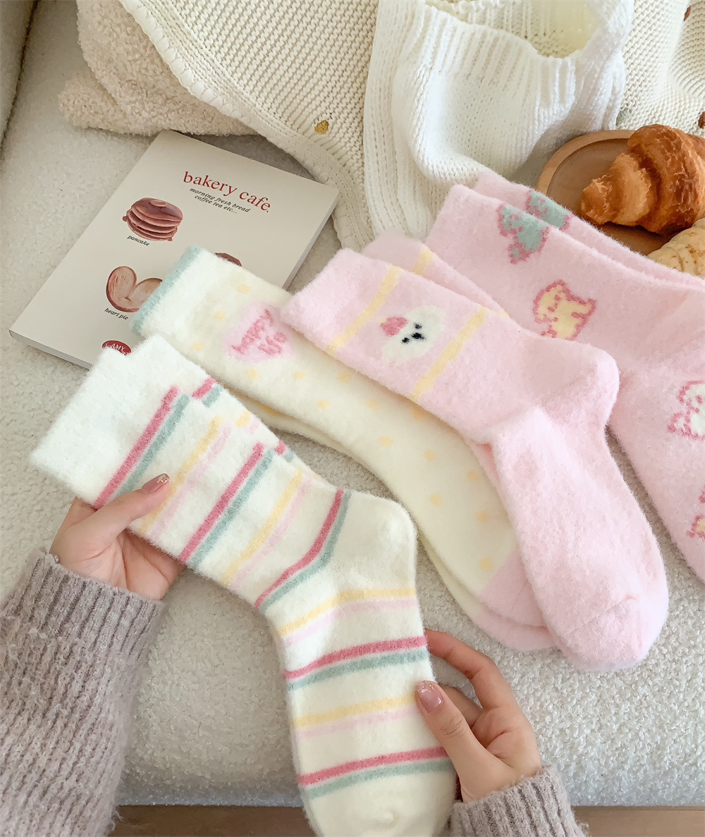 가을과 겨울 슈퍼 부드러운 호주 벨벳 양말 어린이 귀여운 핑크 강아지 편안한 따뜻한 두꺼운 튜브 양말 집 수면 양말스토어 가기