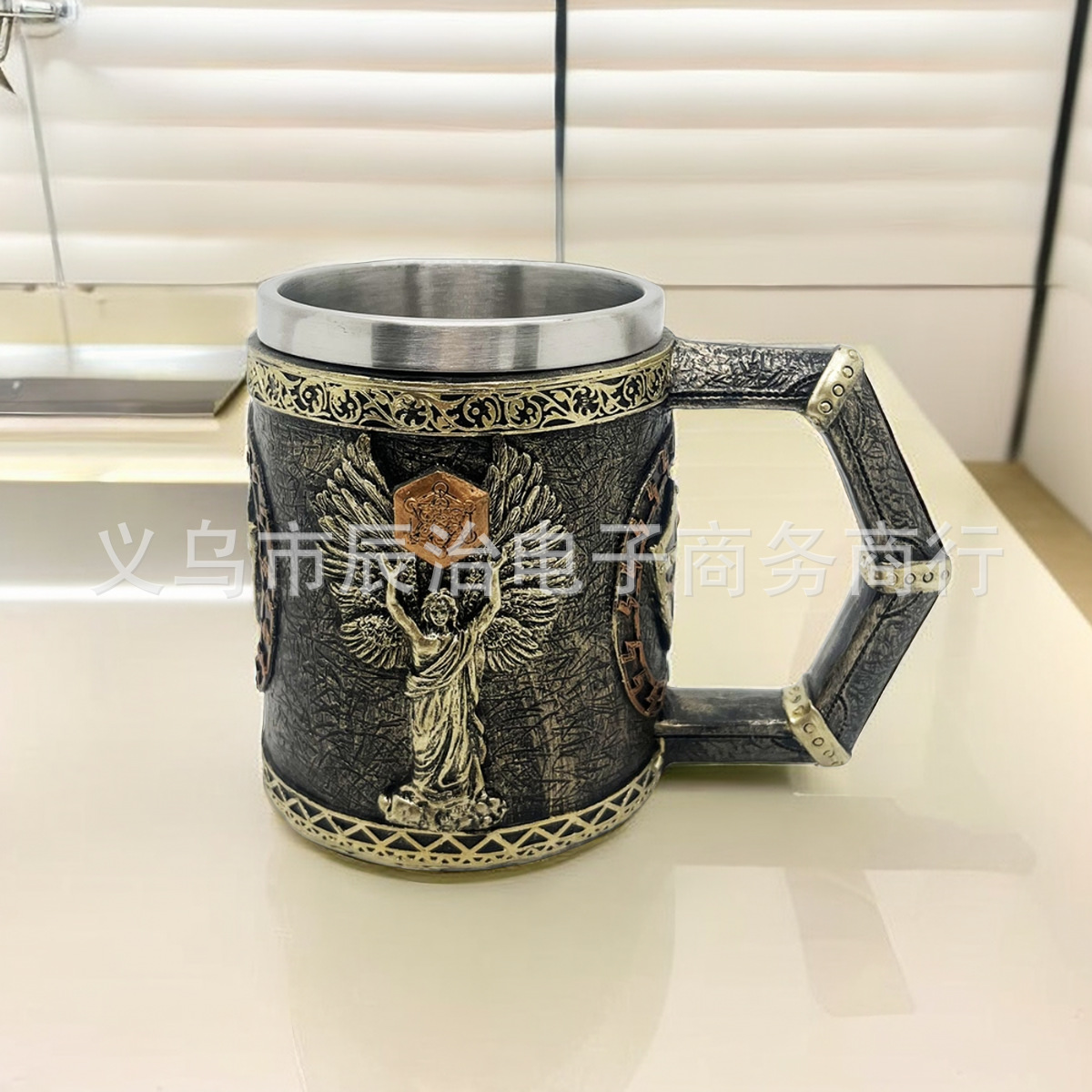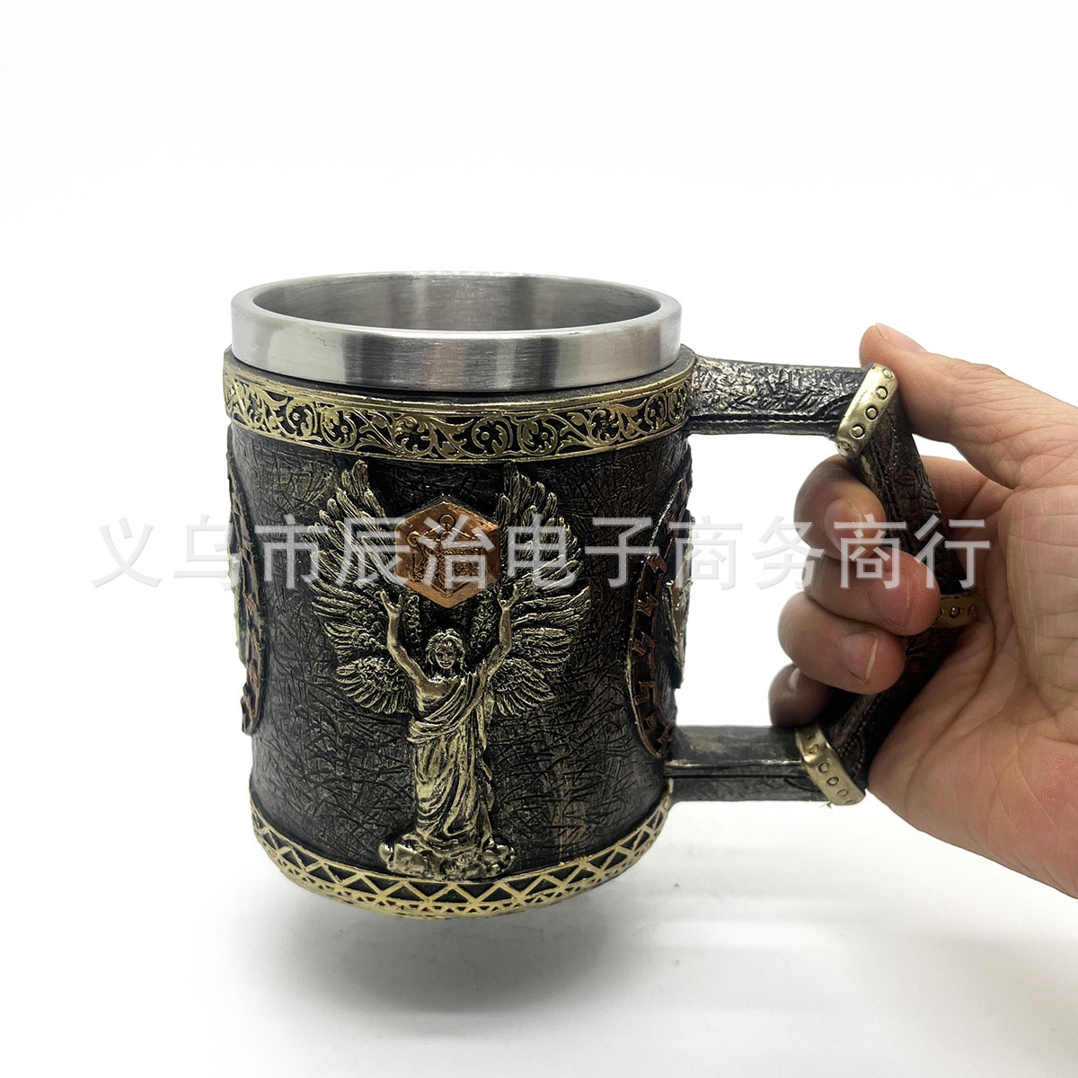 Wu Shen 전설 신화 바이킹 북유럽 신 스타일링 스테인레스 스틸 머그잔 빈티지 스타일링 커피 머그잔 맥주 머그잔스토어 가기