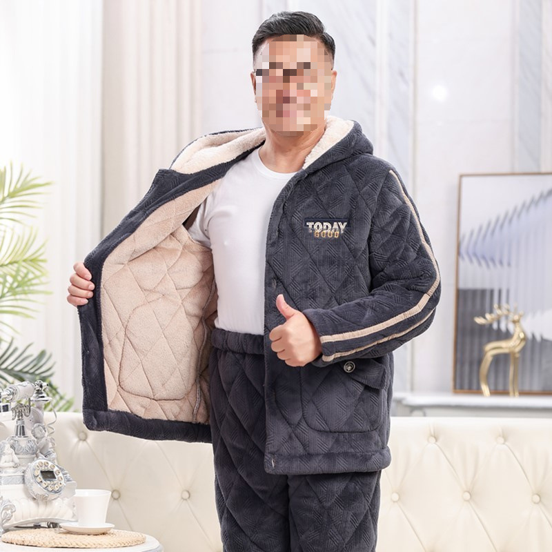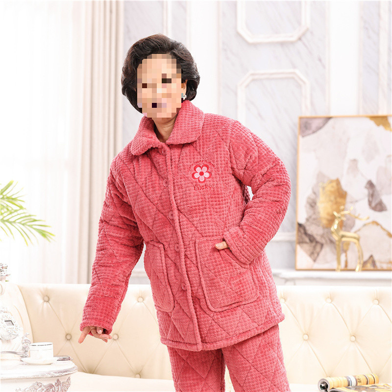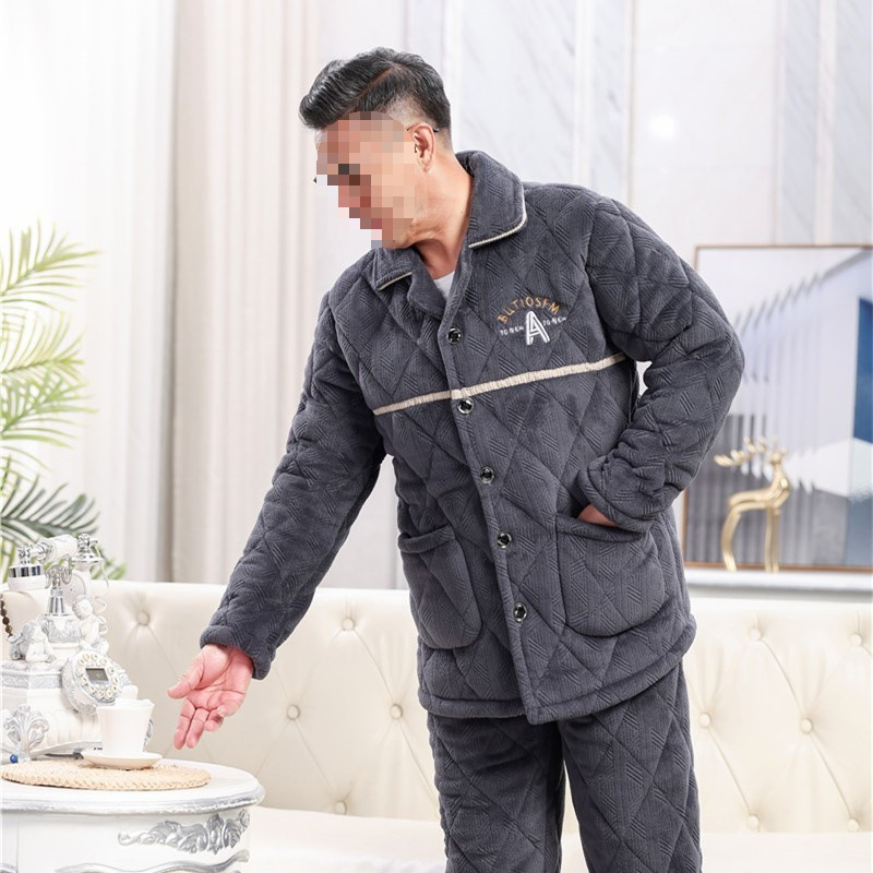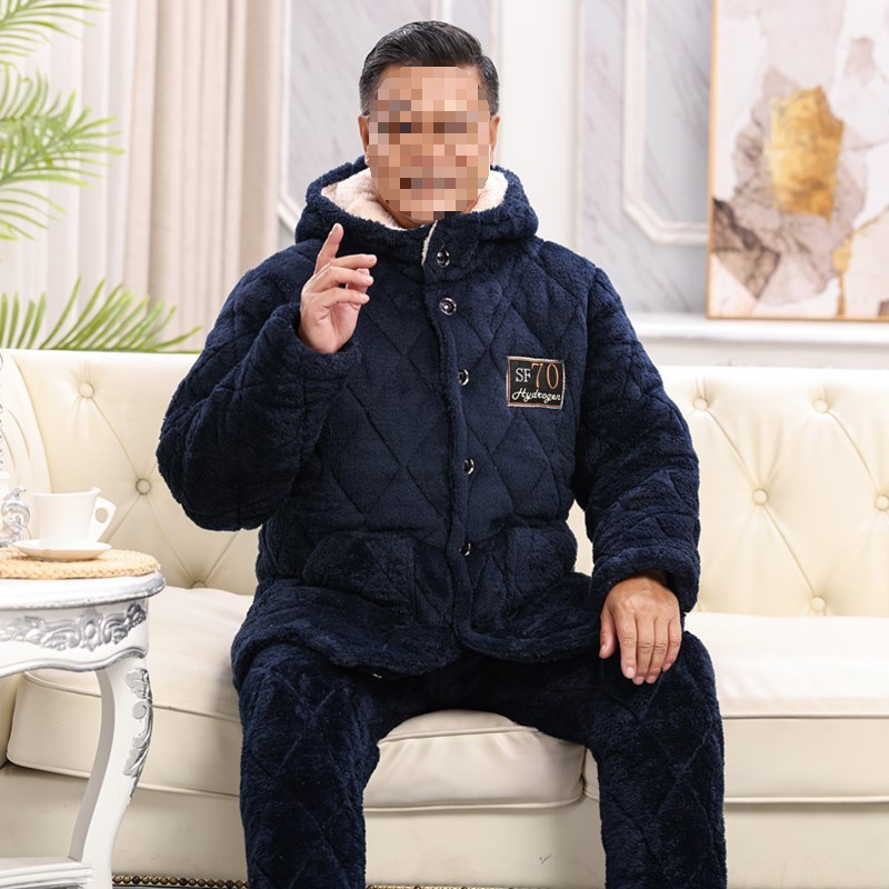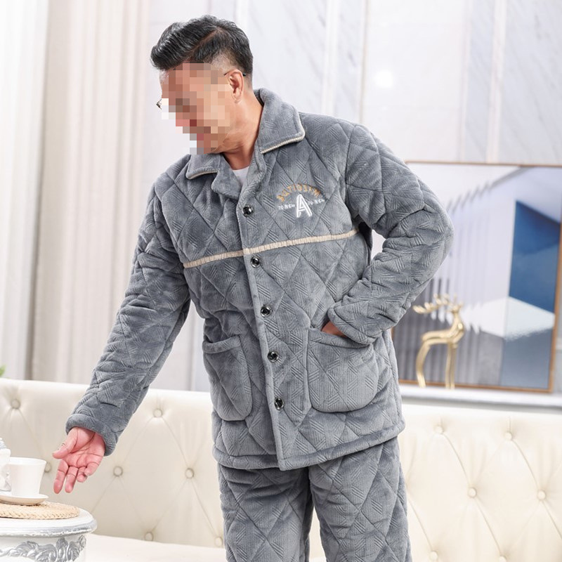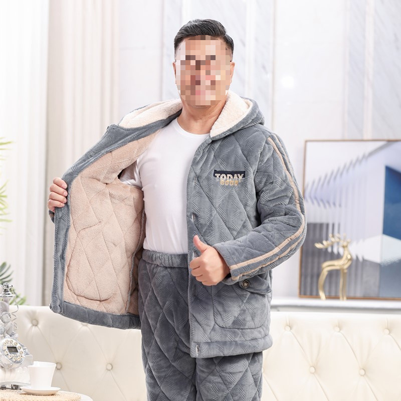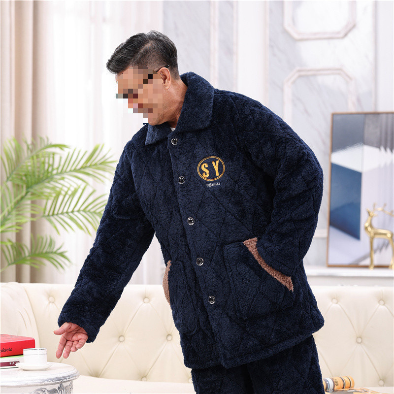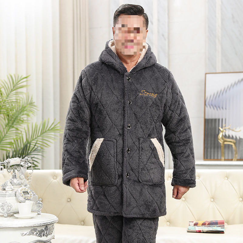 엄마와 아빠 잠옷 중년 및 노인 남성 세트 겨울 슈퍼 두꺼운 따뜻한 3 층 면 패딩 재킷 산호 양털 플러스 사이즈