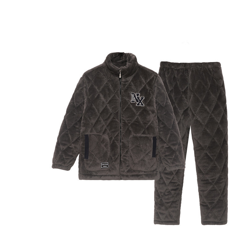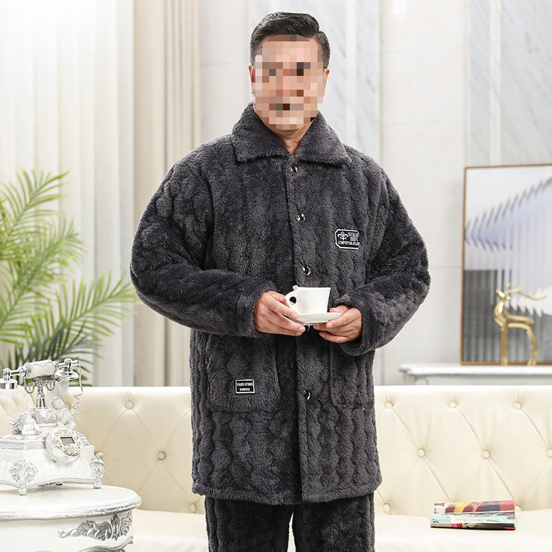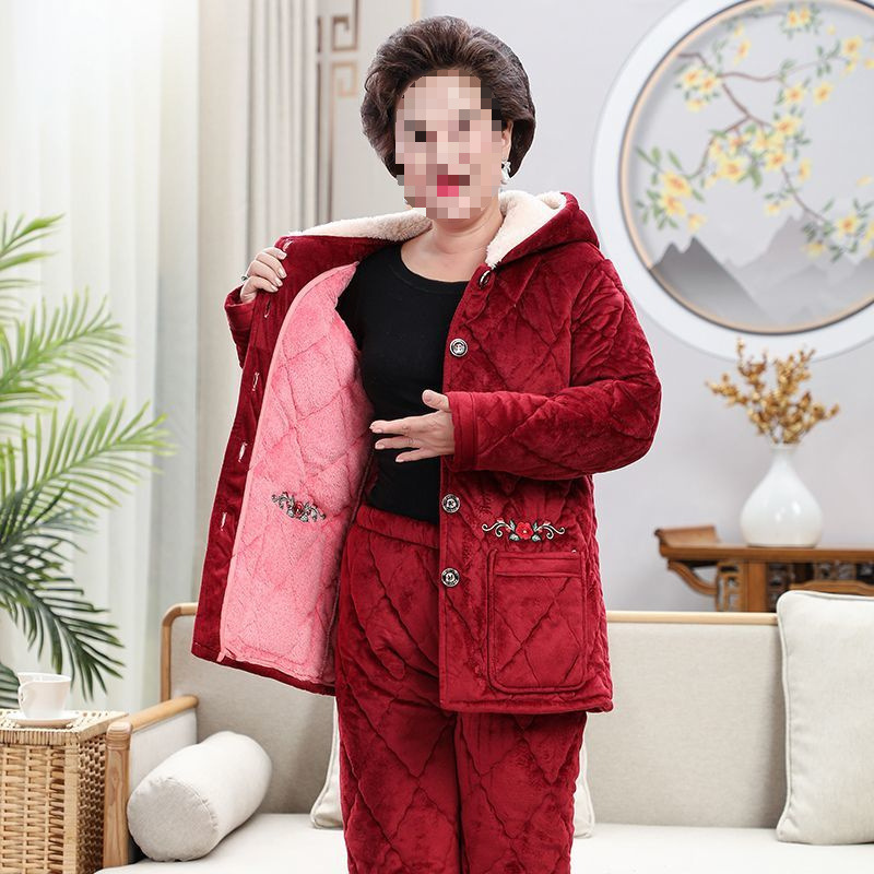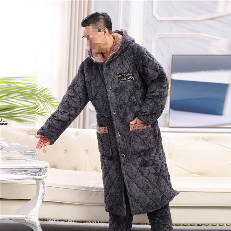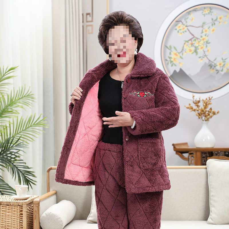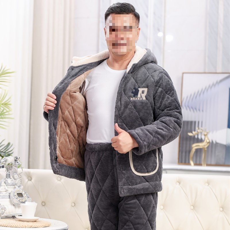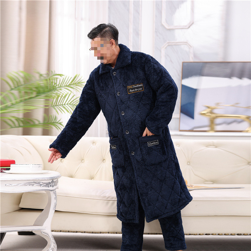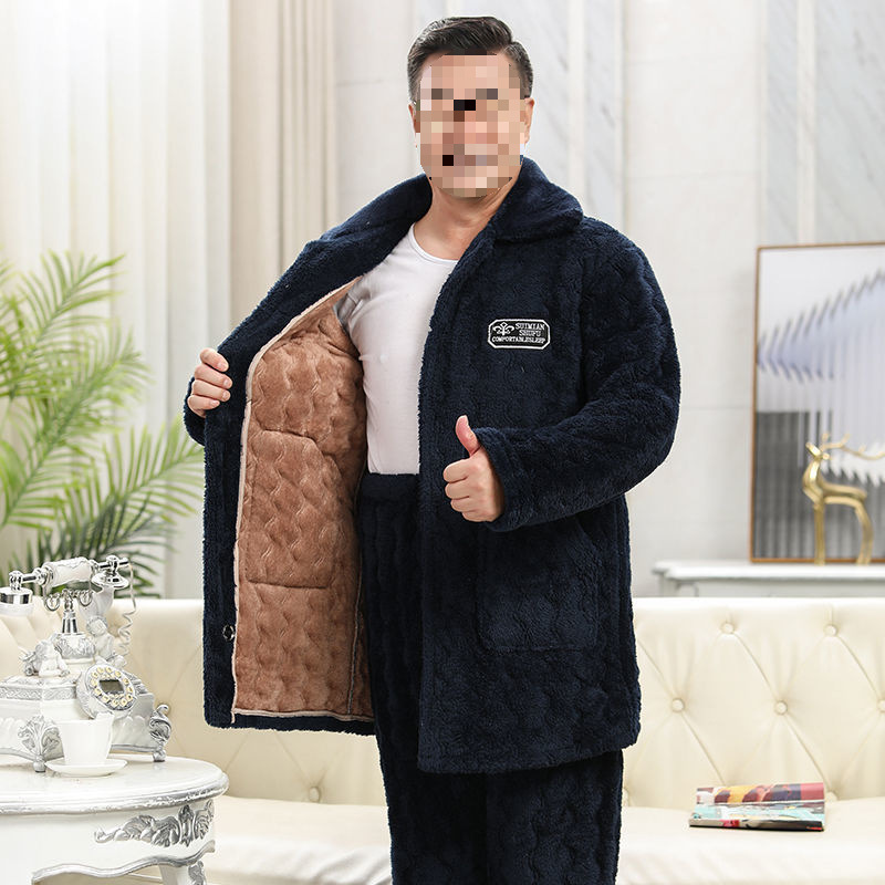 엄마와 아빠 잠옷 중년 및 노인 남성 세트 겨울 슈퍼 두꺼운 따뜻한 3 층 면 패딩 재킷 산호 양털 플러스 사이즈