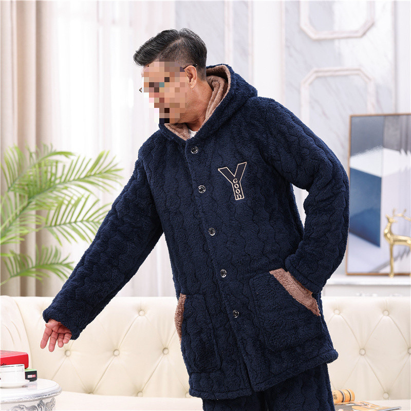 엄마와 아빠 잠옷 중년 및 노인 남성 세트 겨울 슈퍼 두꺼운 따뜻한 3 층 면 패딩 재킷 산호 양털 플러스 사이즈스토어 가기