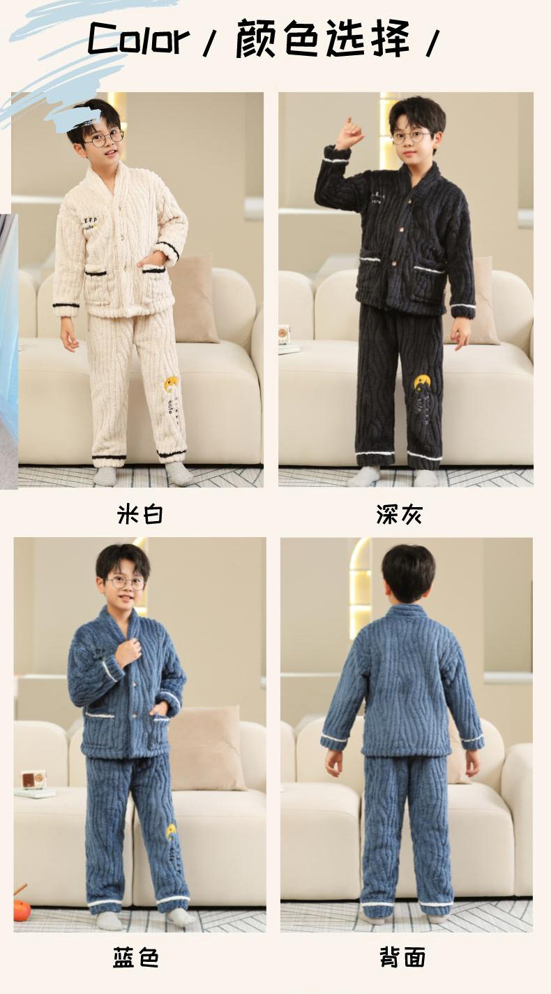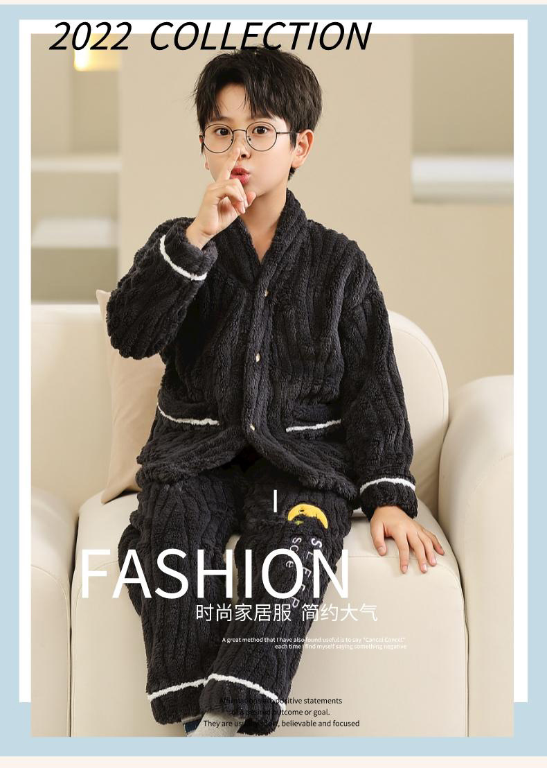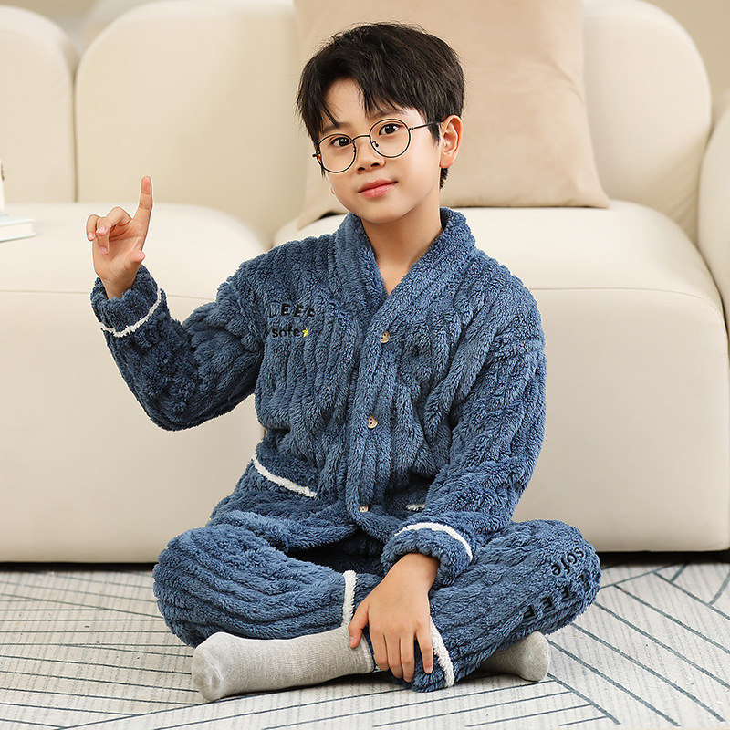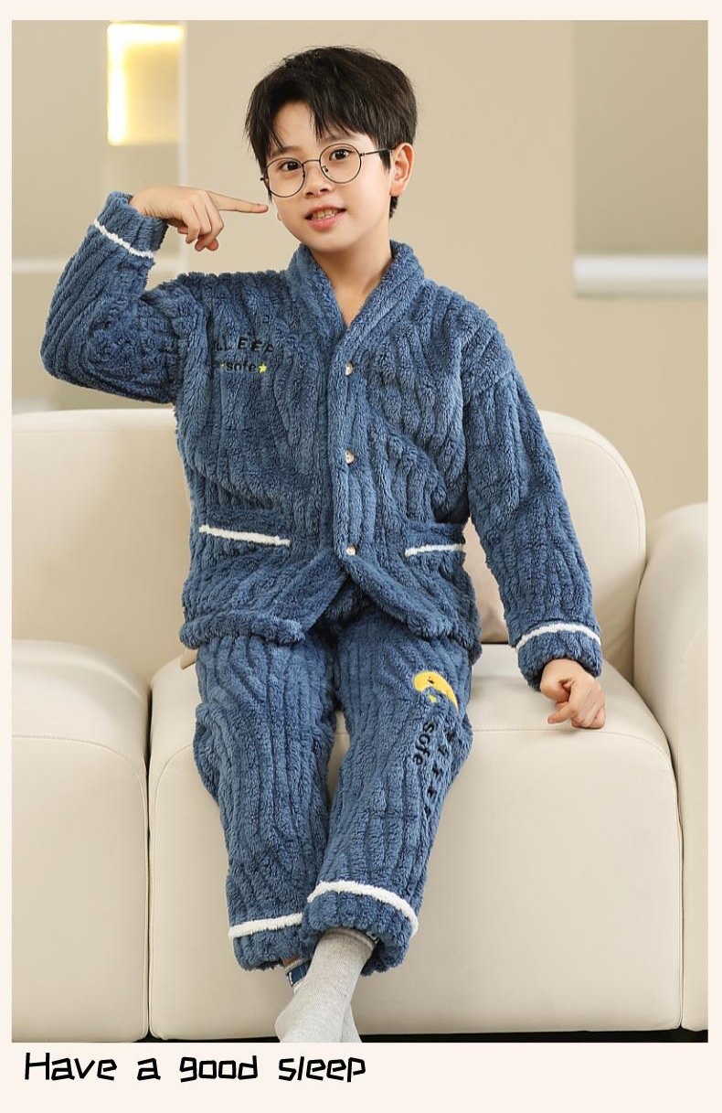 소년을위한 어린이 산호 벨벳 잠옷 가을과 겨울 기모 크고 중간 크기의 소년 세트 두꺼운 플란넬 홈 옷스토어 가기
