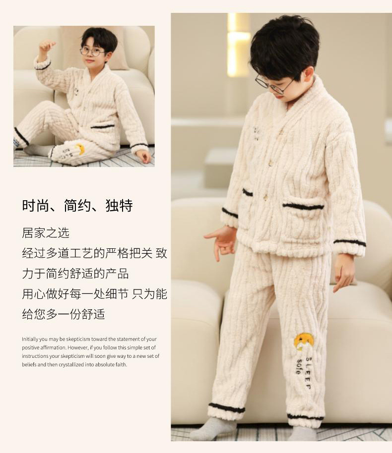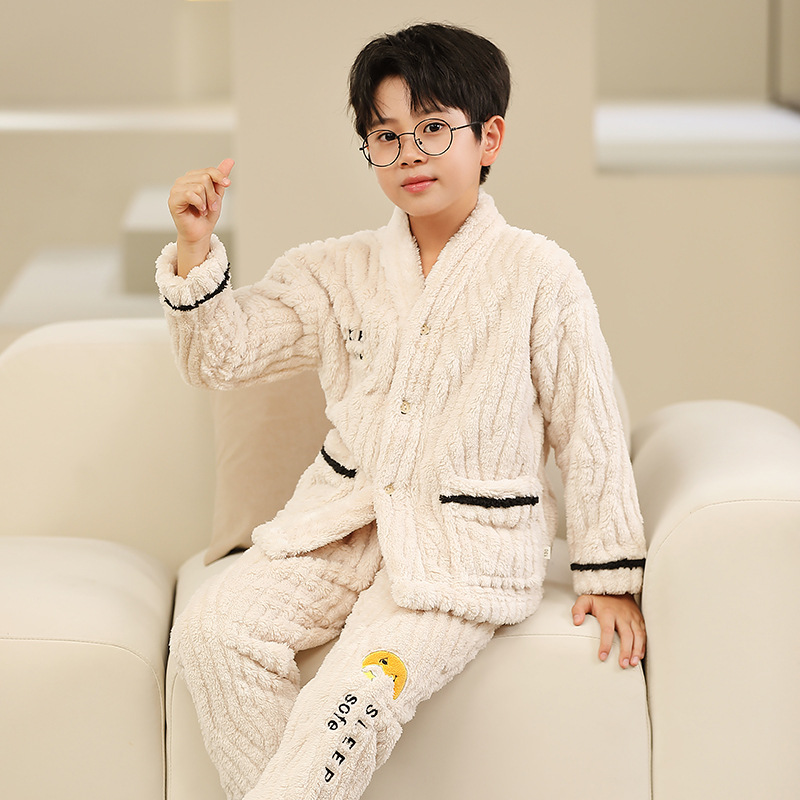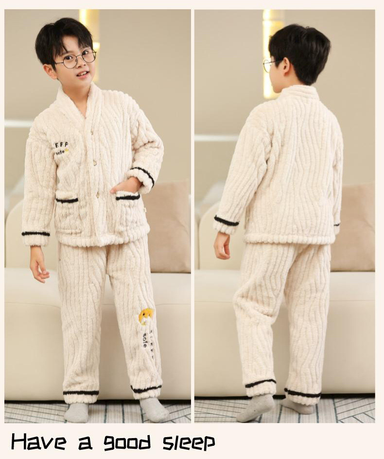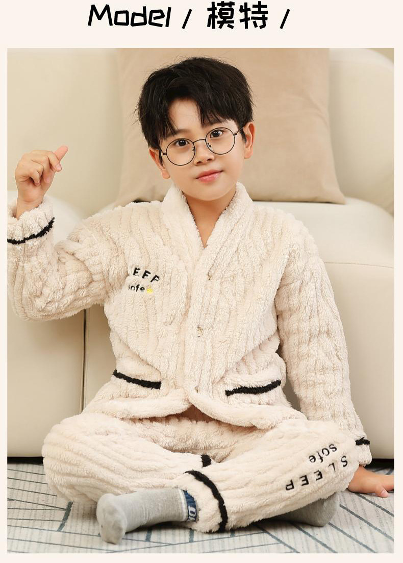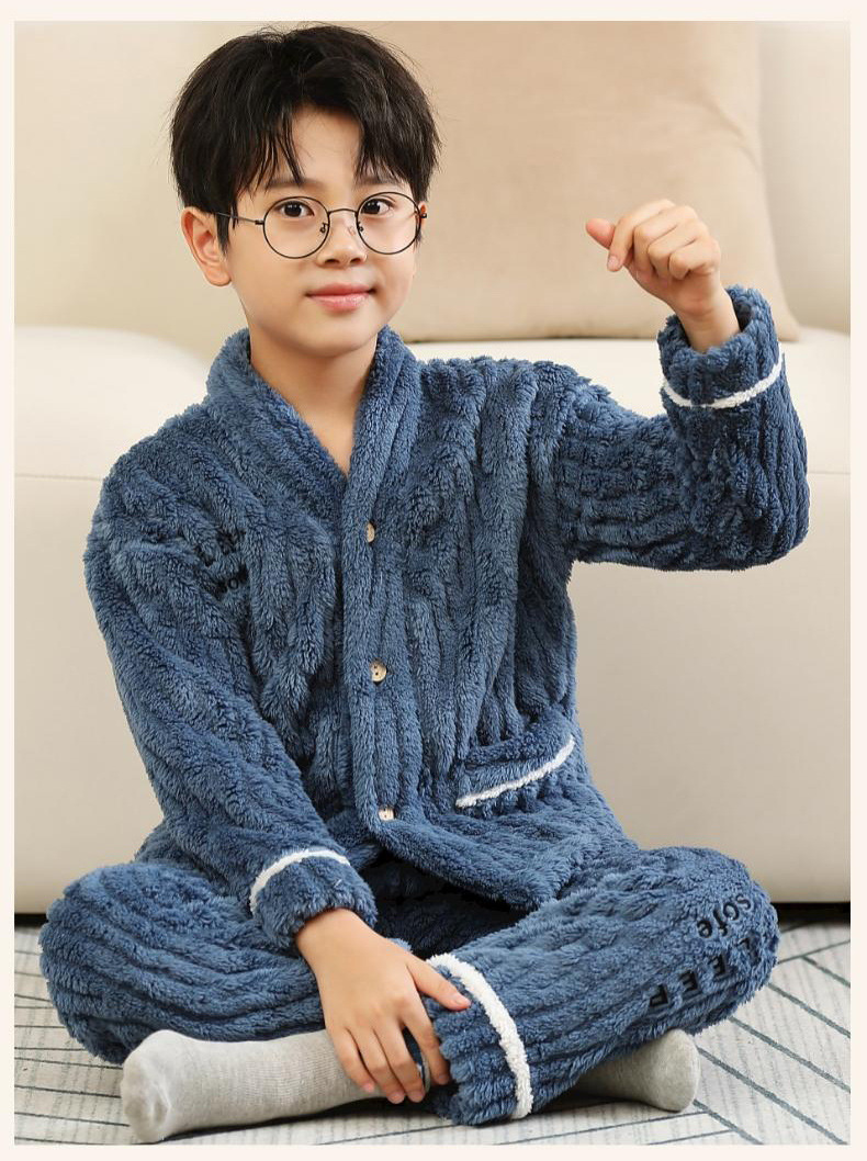 소년을위한 어린이 산호 벨벳 잠옷 가을과 겨울 기모 크고 중간 크기의 소년 세트 두꺼운 플란넬 홈 옷스토어 가기