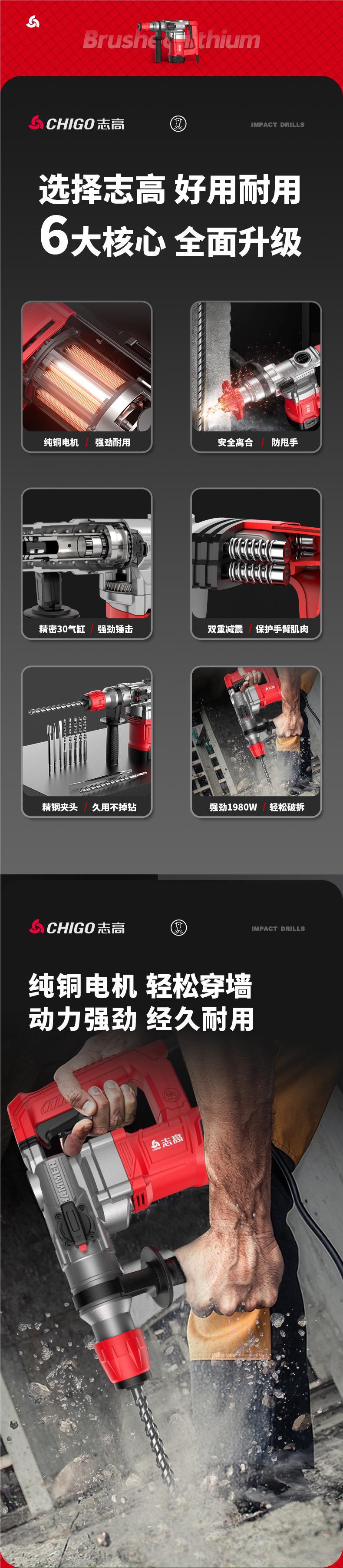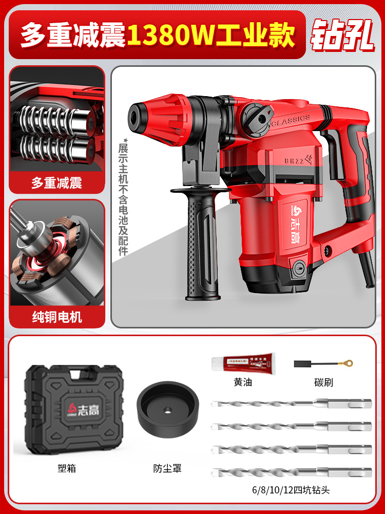 • 다중 충격 흡수 [1380W 산업용 모델] + 드릴링 패키지