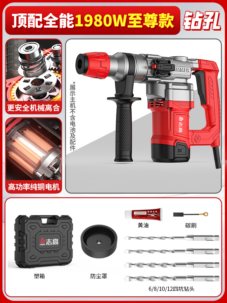치고 전기 해머 전기 픽 고출력 충격 드릴 산업 콘크리트 가정용 다기능 충격 드릴 스퀘어 생크 드릴 비트 추스토어 가기