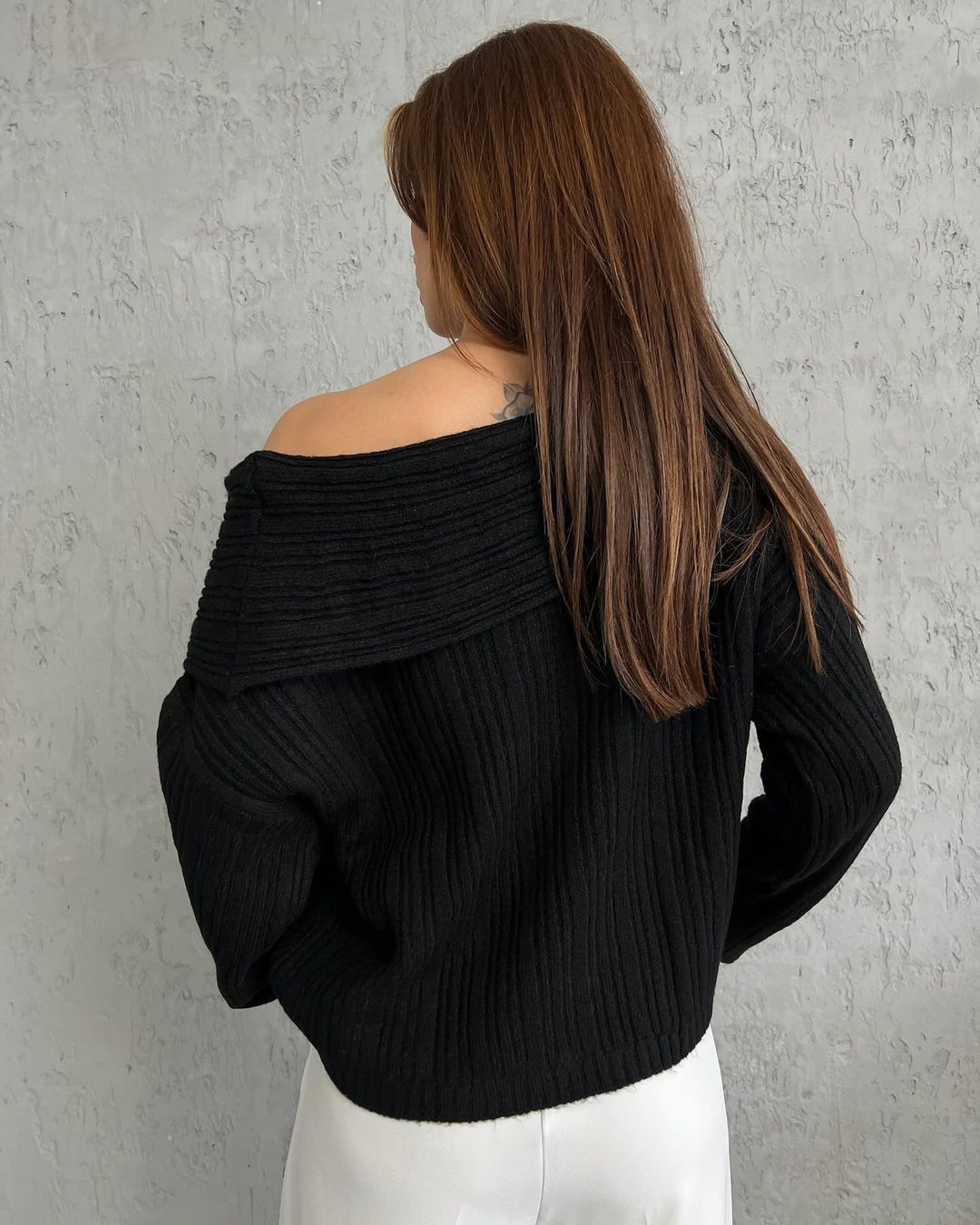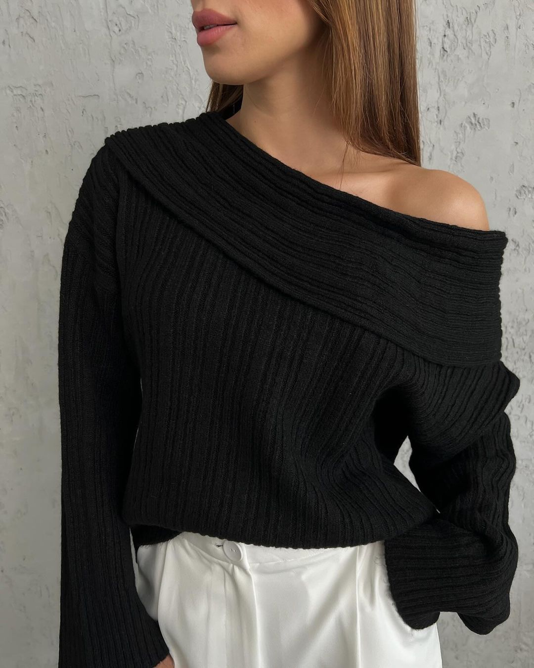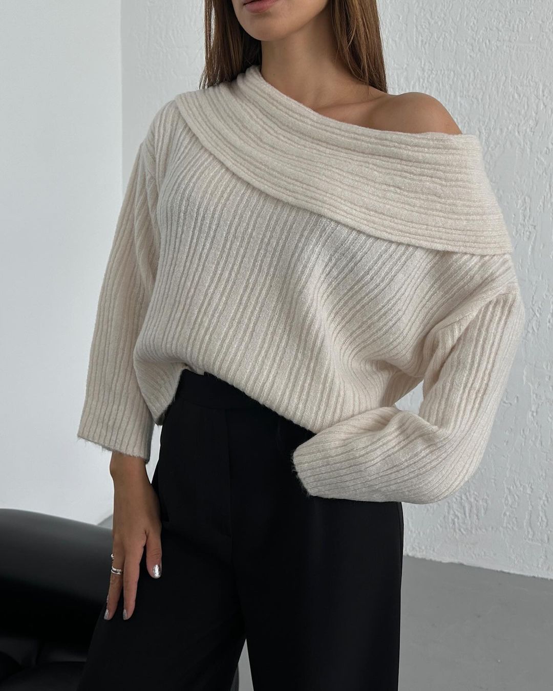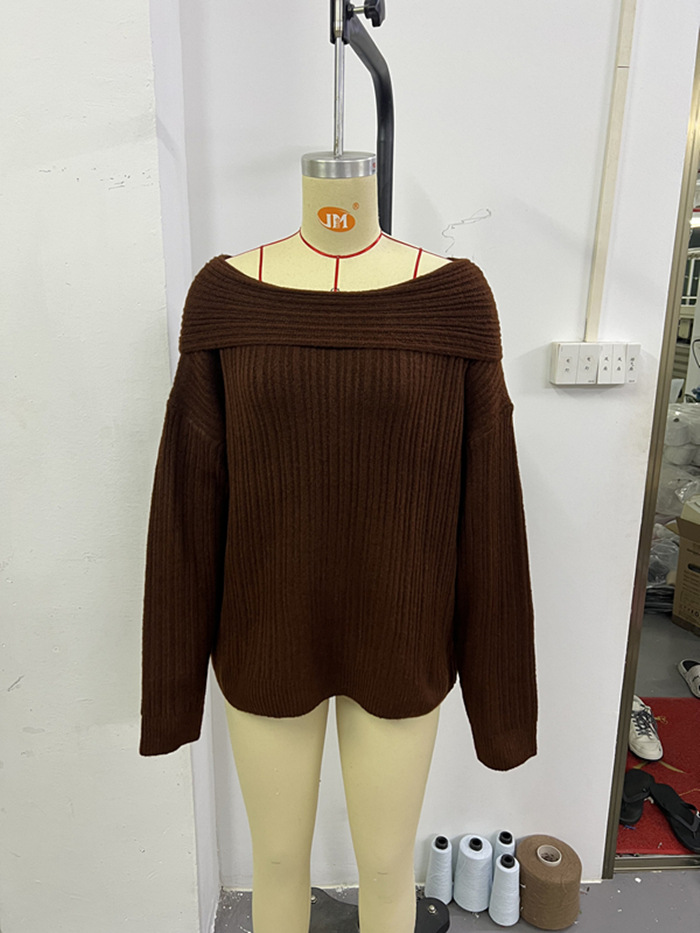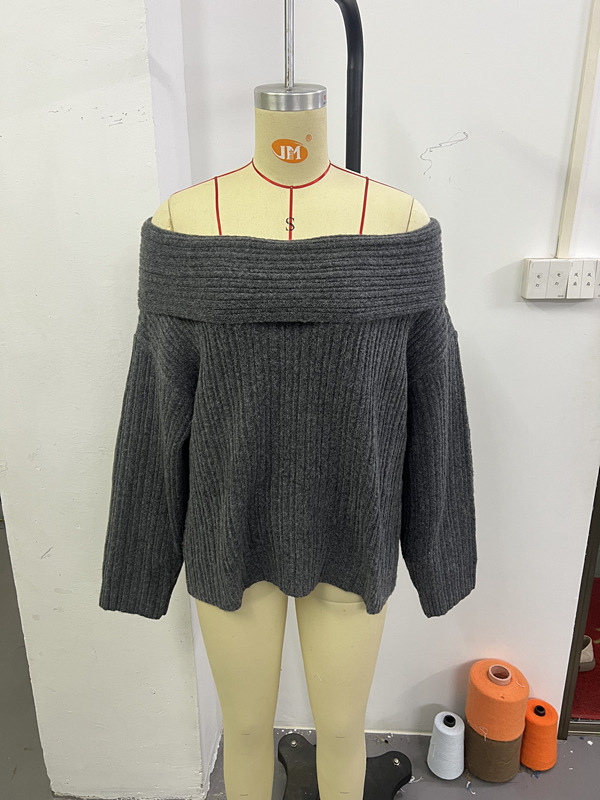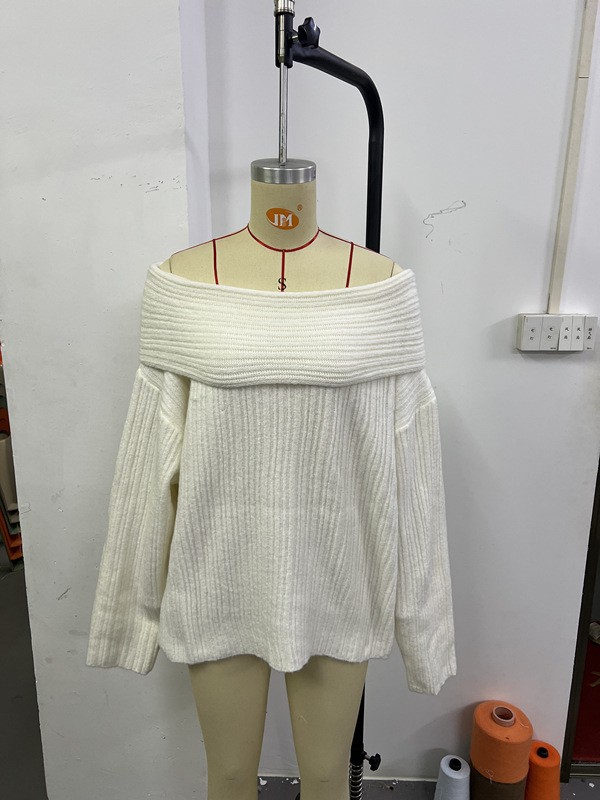 2024 유럽과 미국의 새로운 국경 게으른 오프 숄더 스웨터 여성의 가을과 겨울 간단한 긴팔 니트 탑