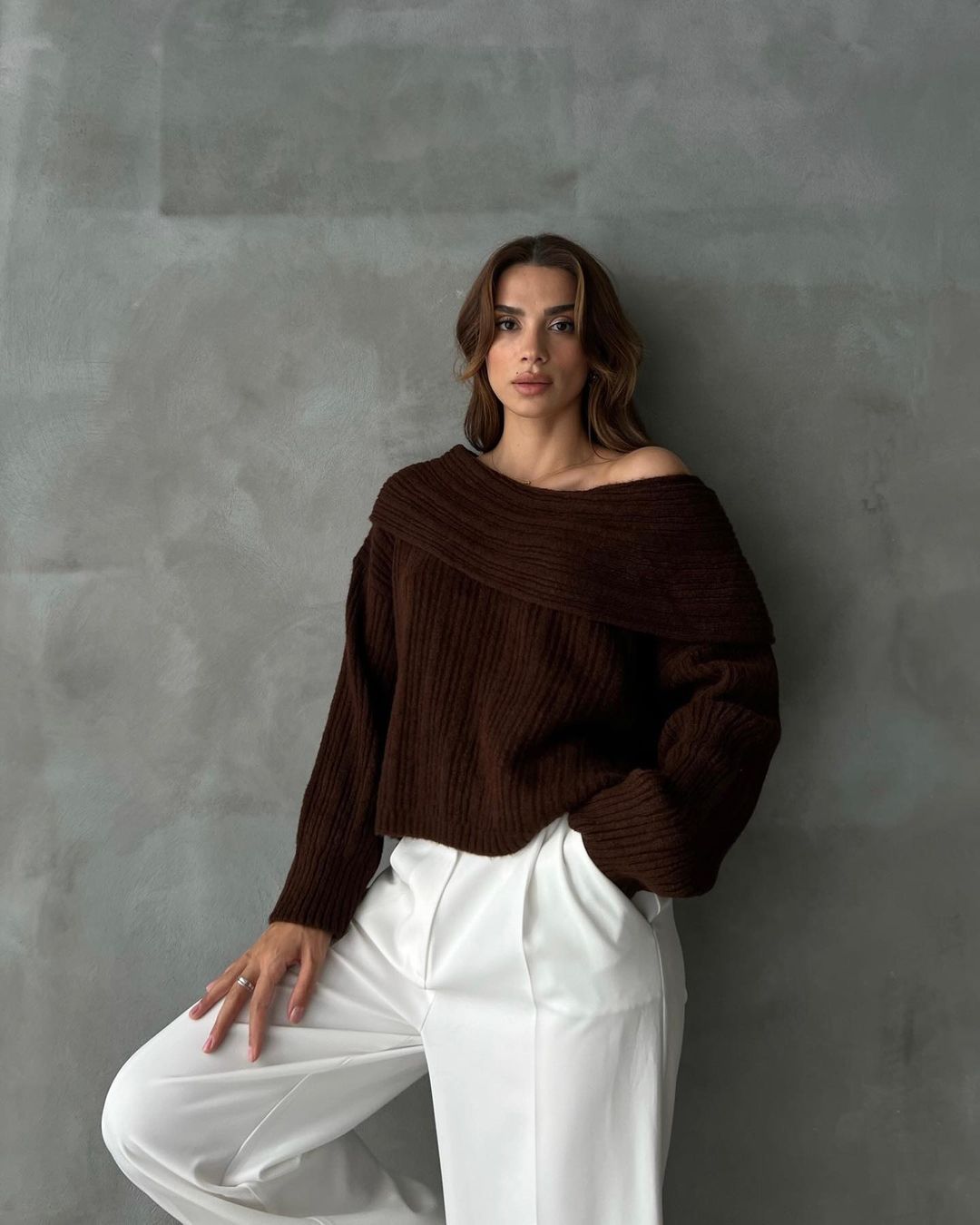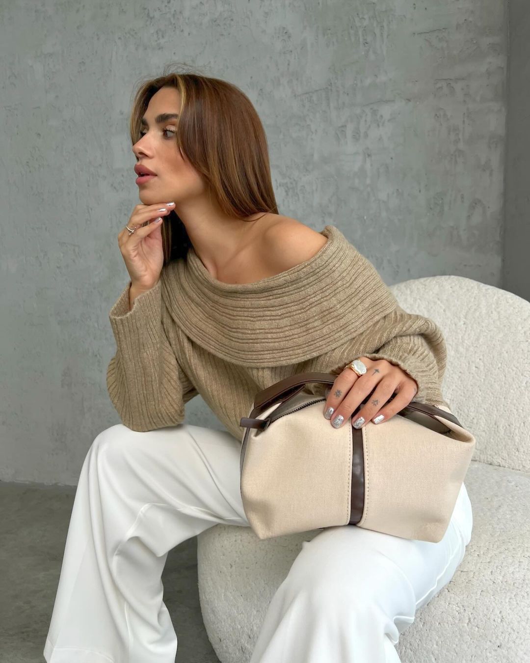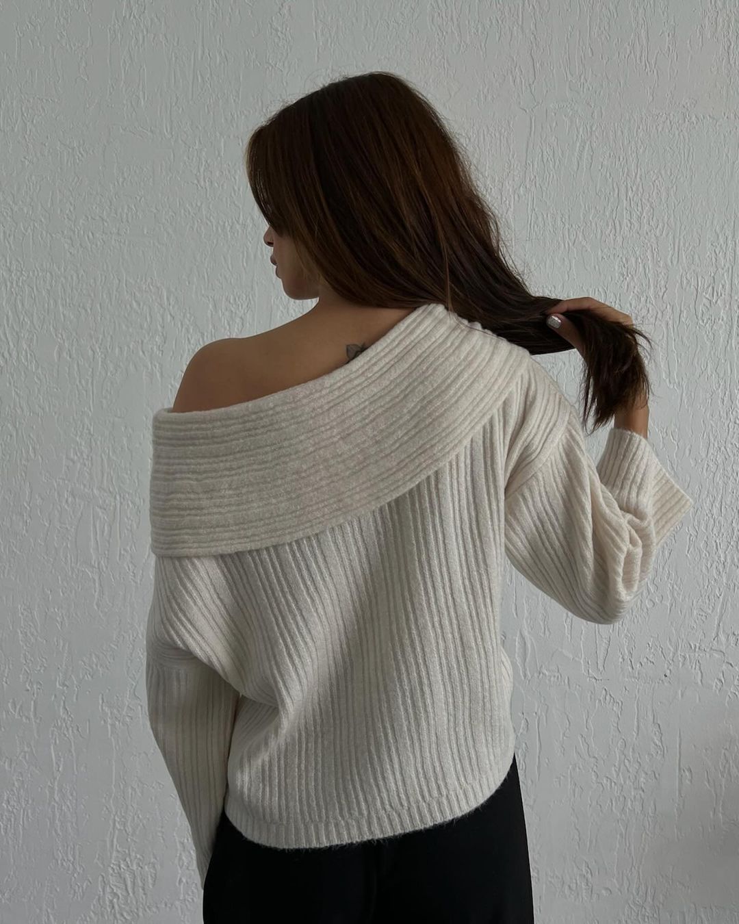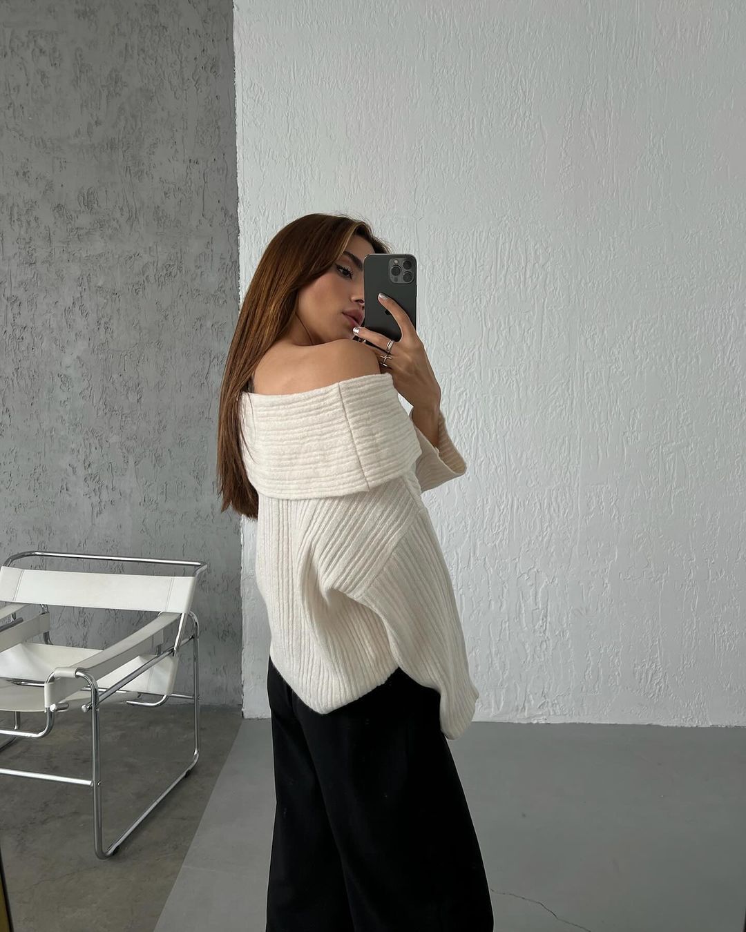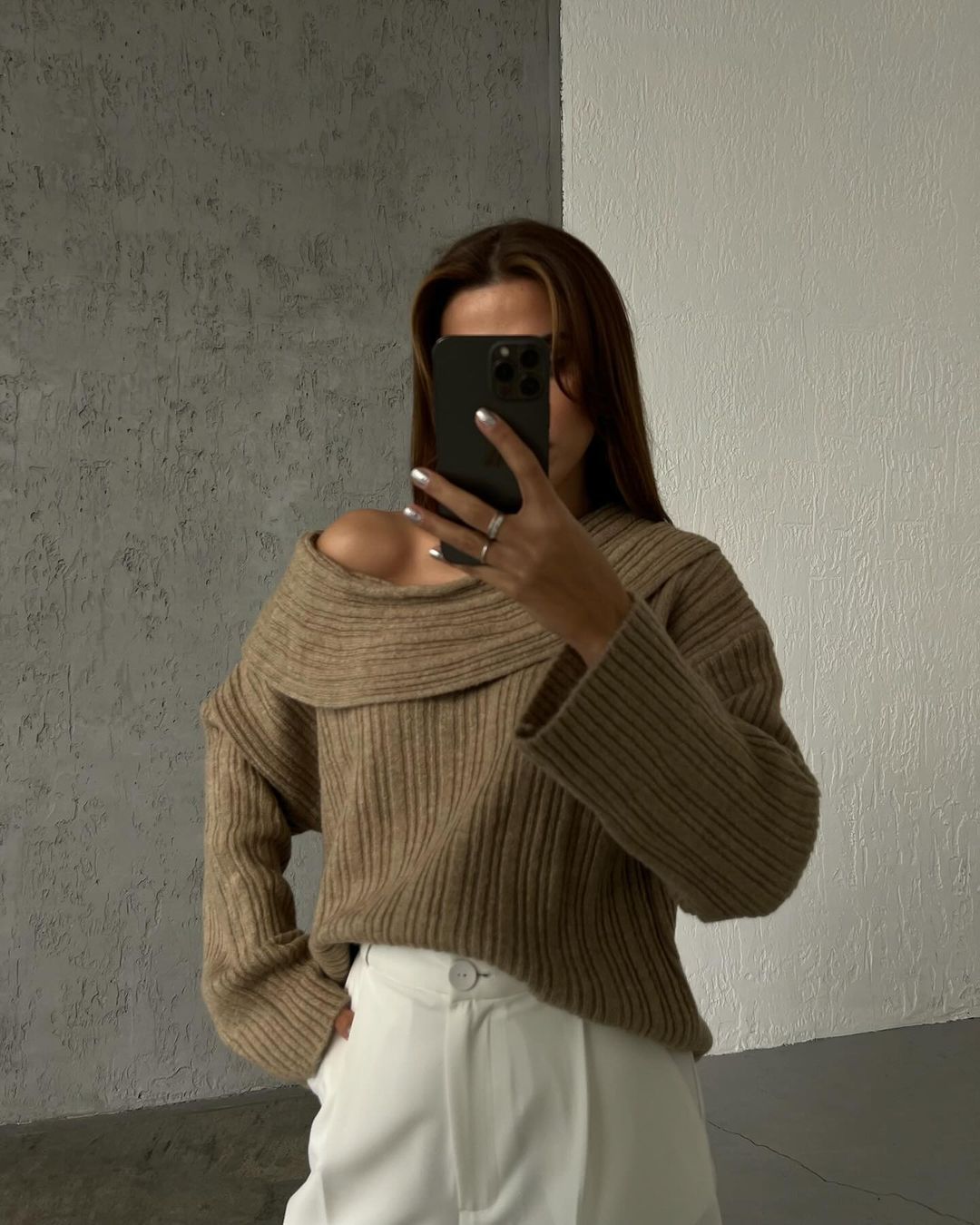 2024 유럽과 미국의 새로운 국경 게으른 오프 숄더 스웨터 여성의 가을과 겨울 간단한 긴팔 니트 탑