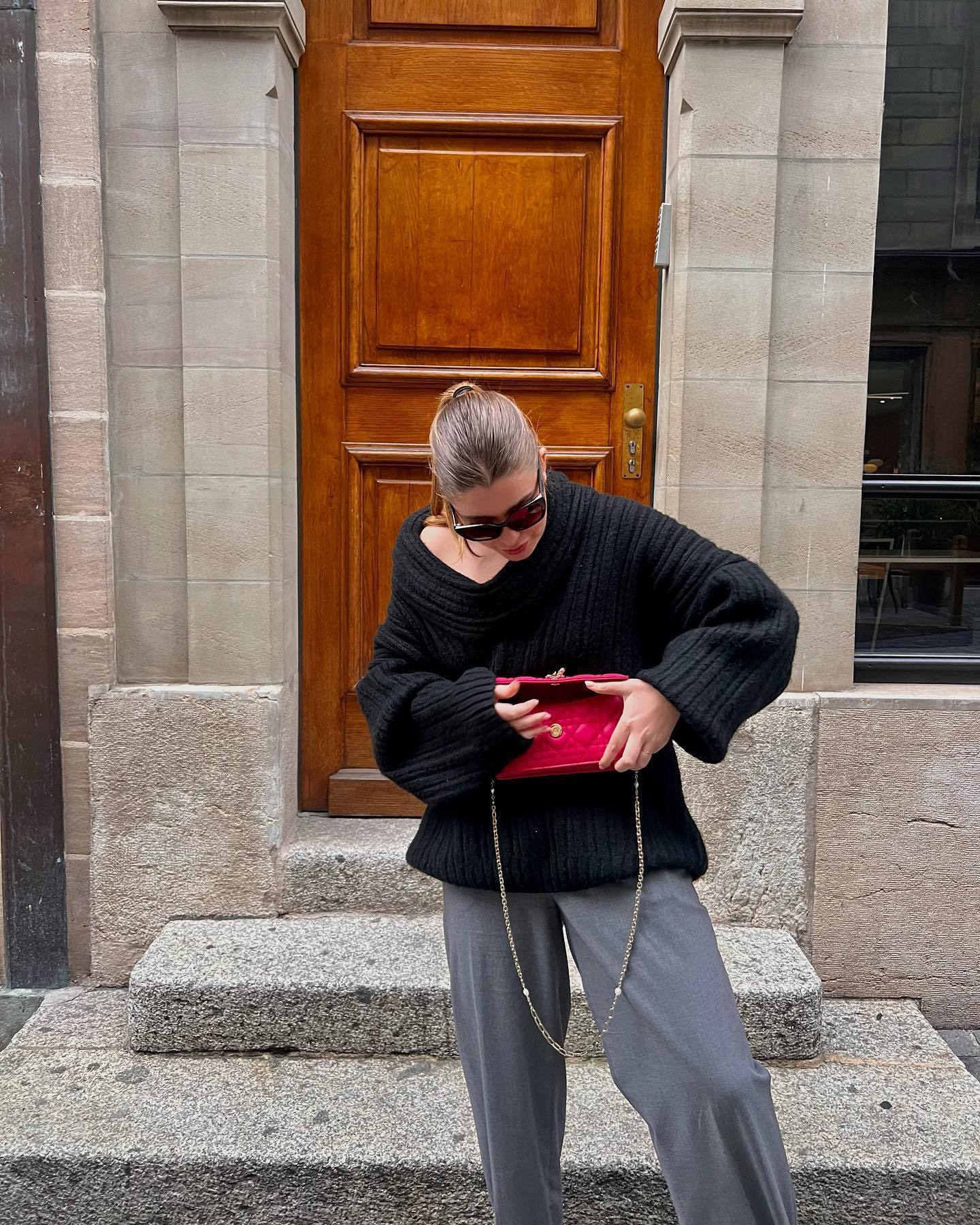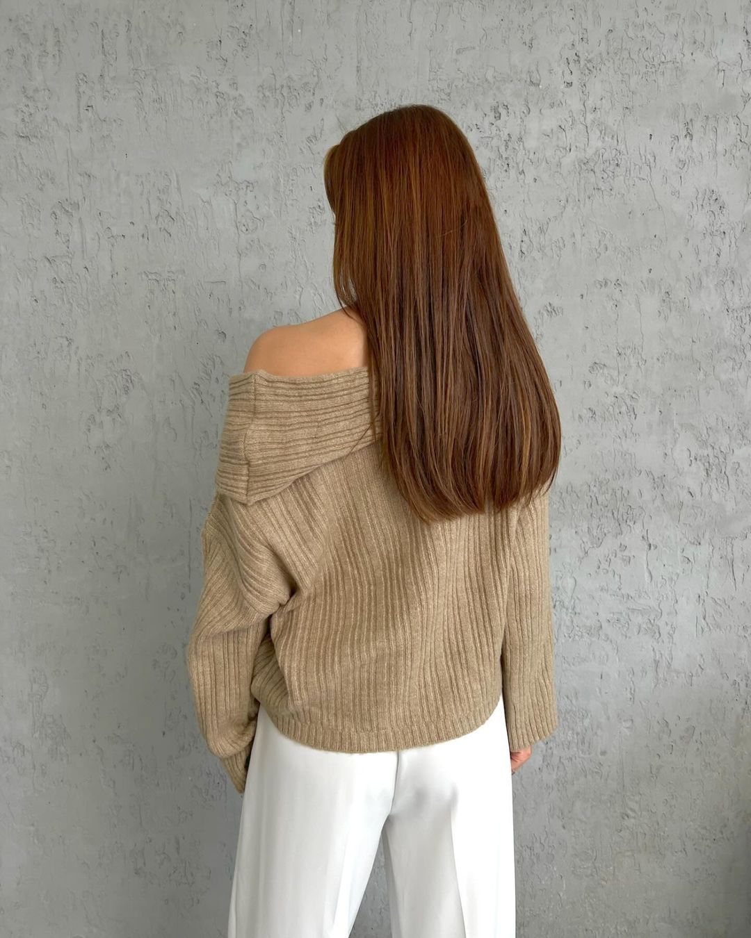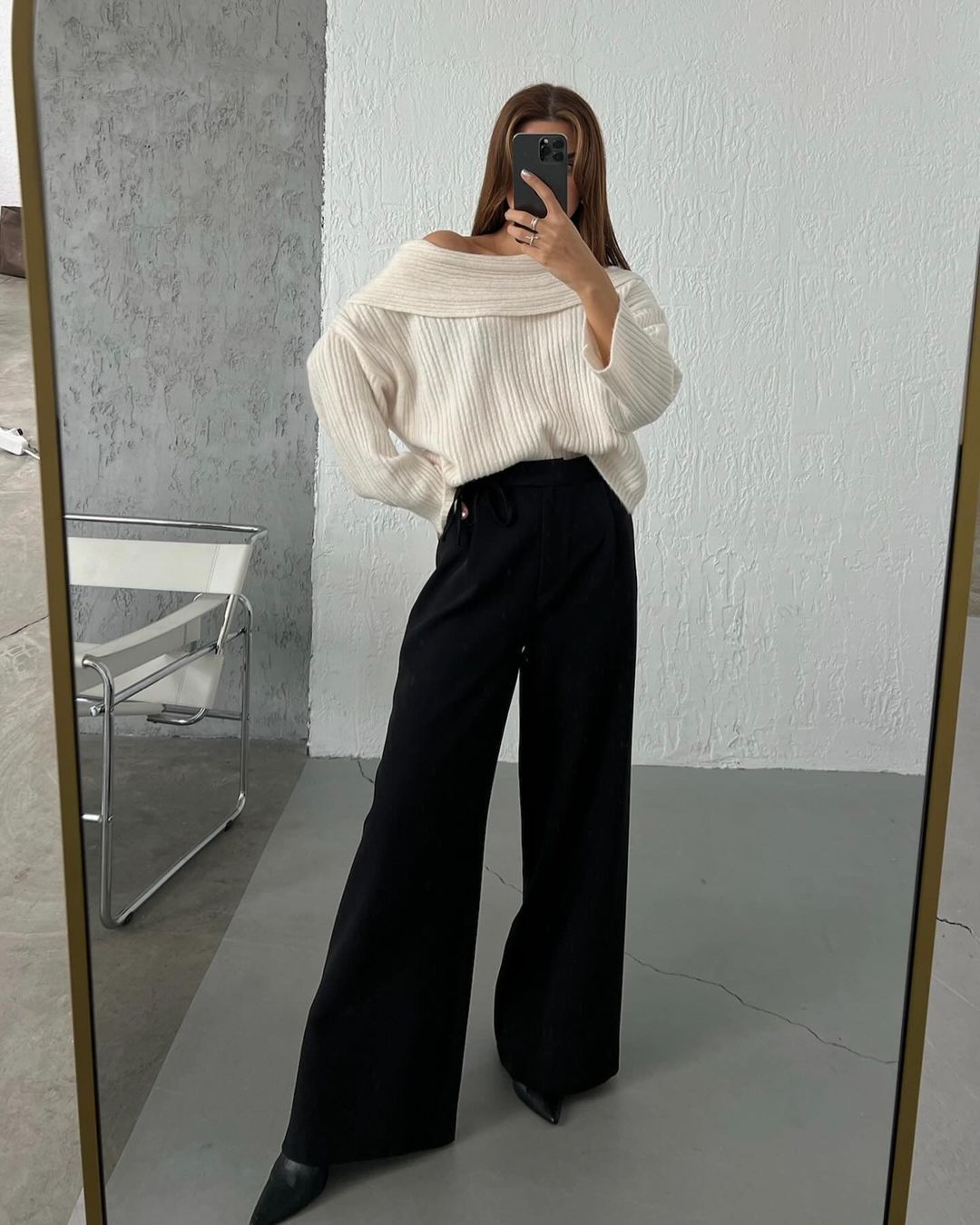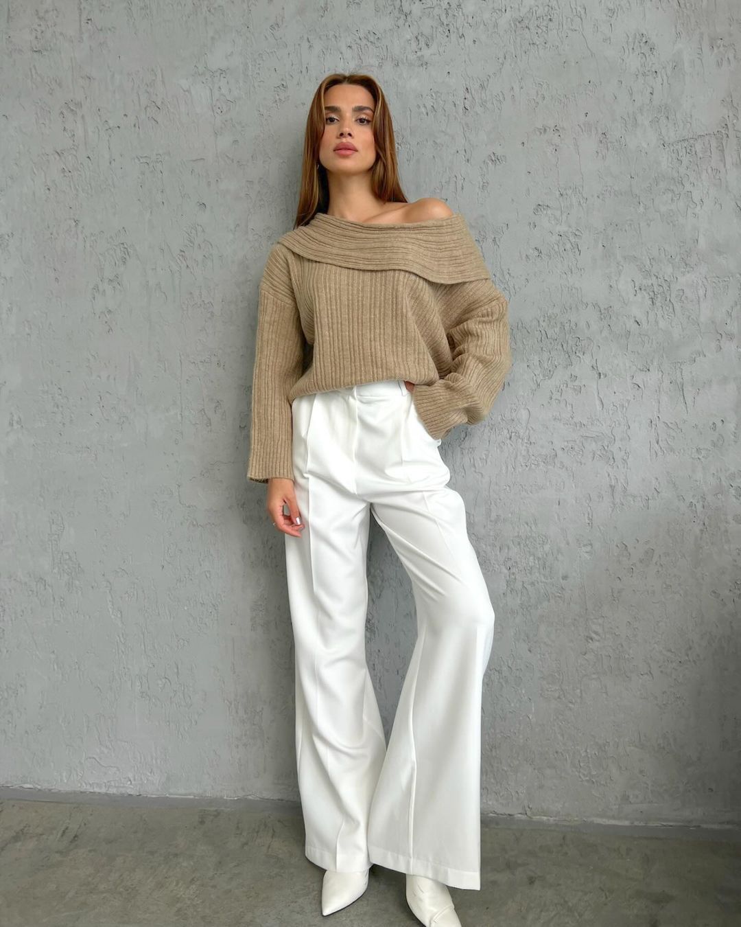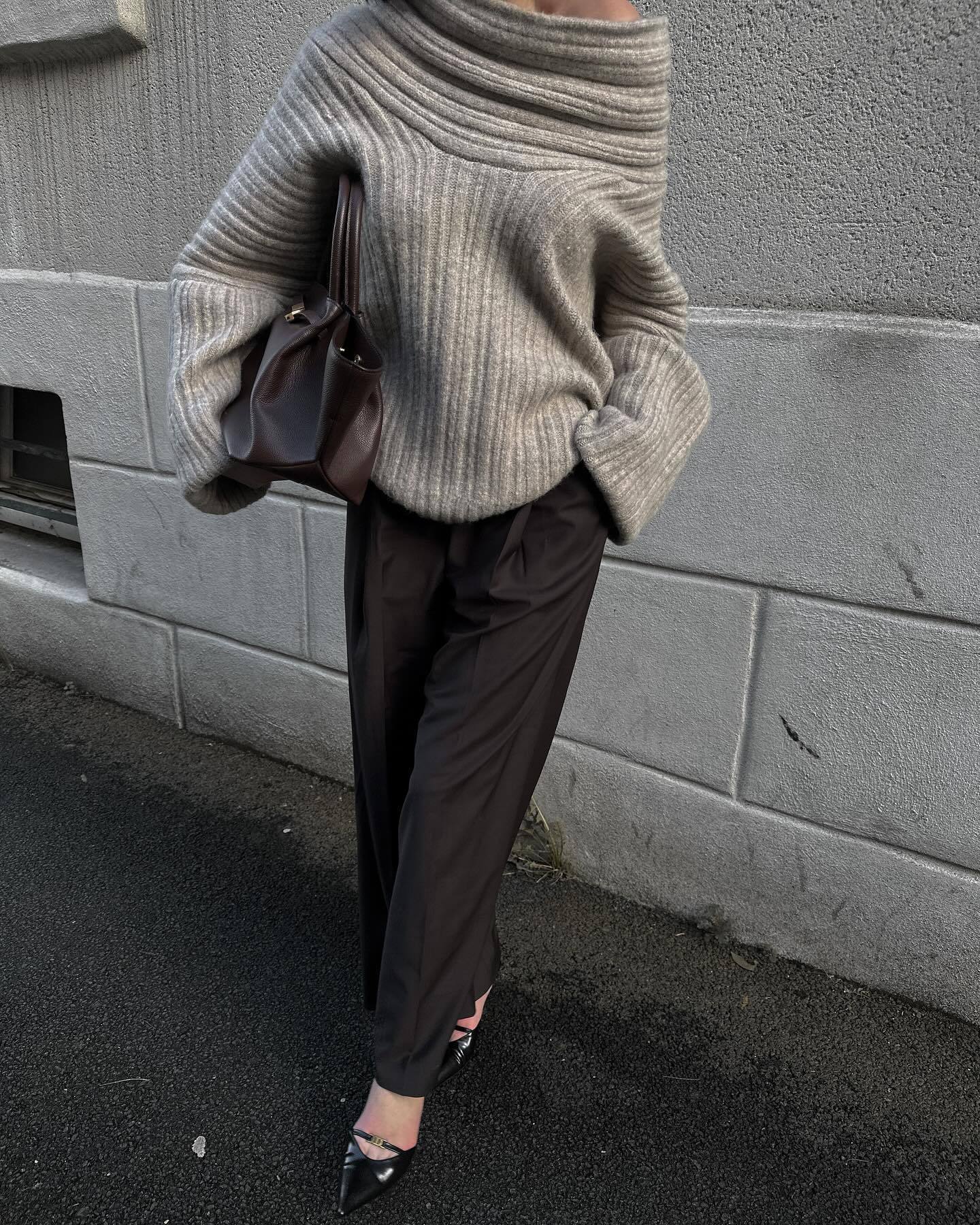 2024 유럽과 미국의 새로운 국경 게으른 오프 숄더 스웨터 여성의 가을과 겨울 간단한 긴팔 니트 탑