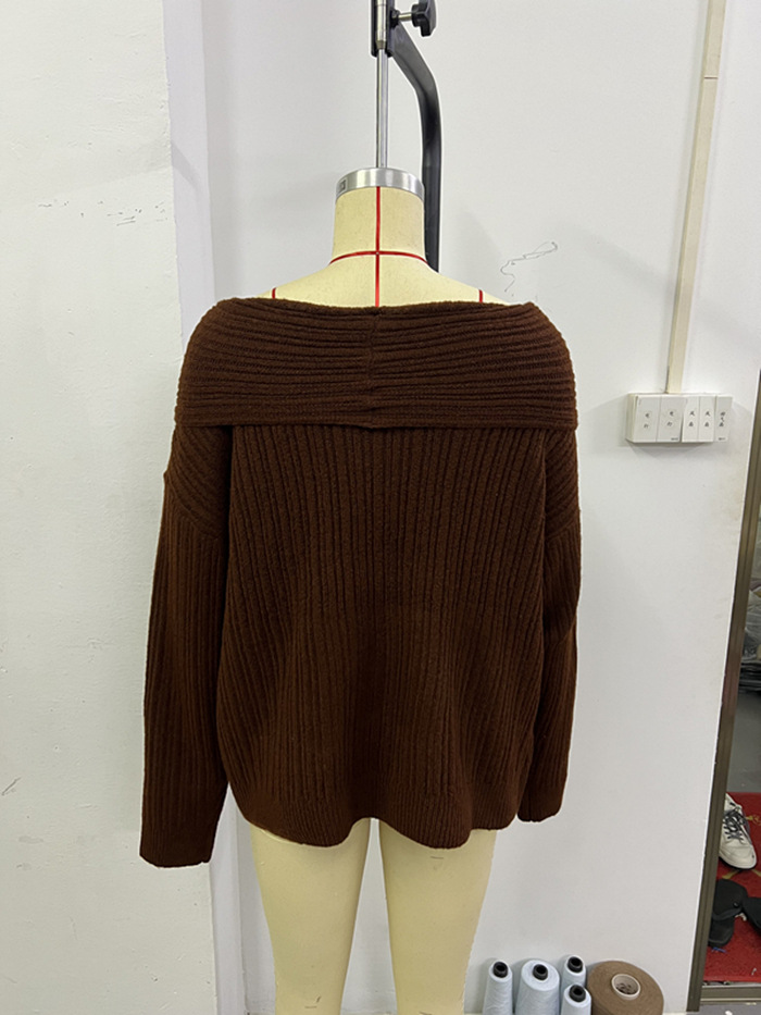 2024 유럽과 미국의 새로운 국경 게으른 오프 숄더 스웨터 여성의 가을과 겨울 간단한 긴팔 니트 탑스토어 가기