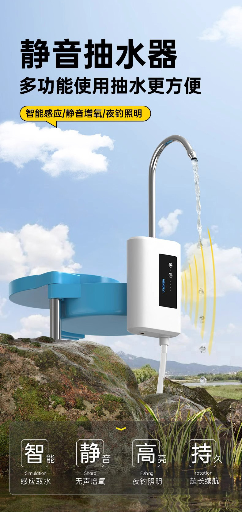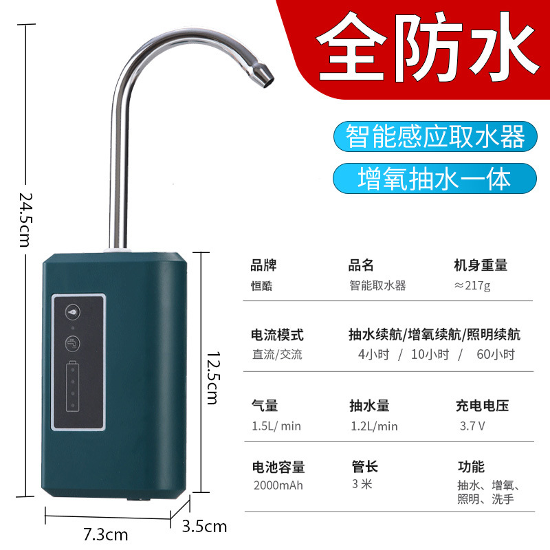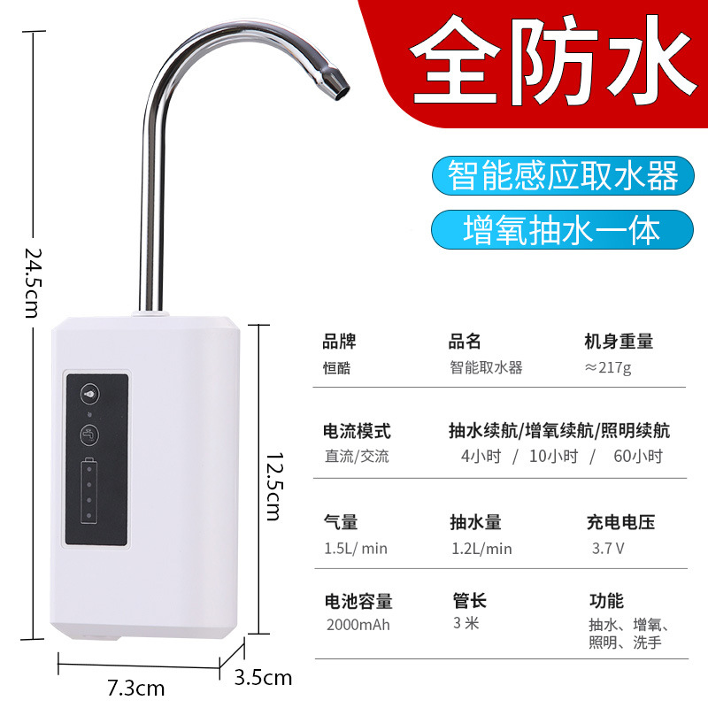 Hengku 지능형 유도 낚시 워터 디스펜서 산소 펌프 핸드 워시 펌프 완전 방수 낚시 전기 펌핑 야외 낚시